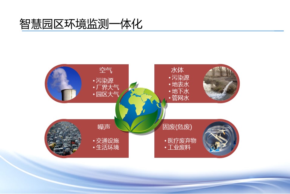 4、智慧环保:水、气、声、固废全面覆盖,污染源、厂界、园区立体监控