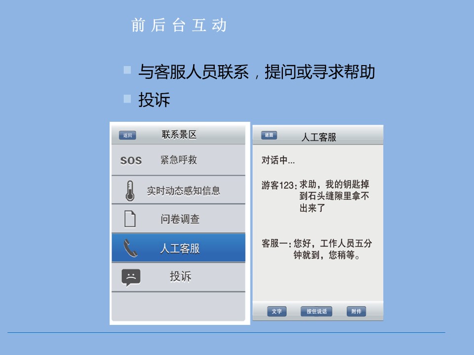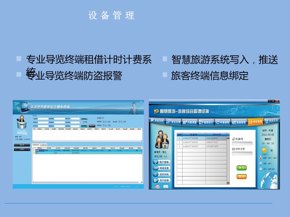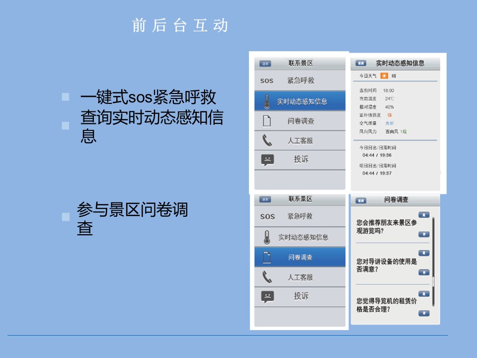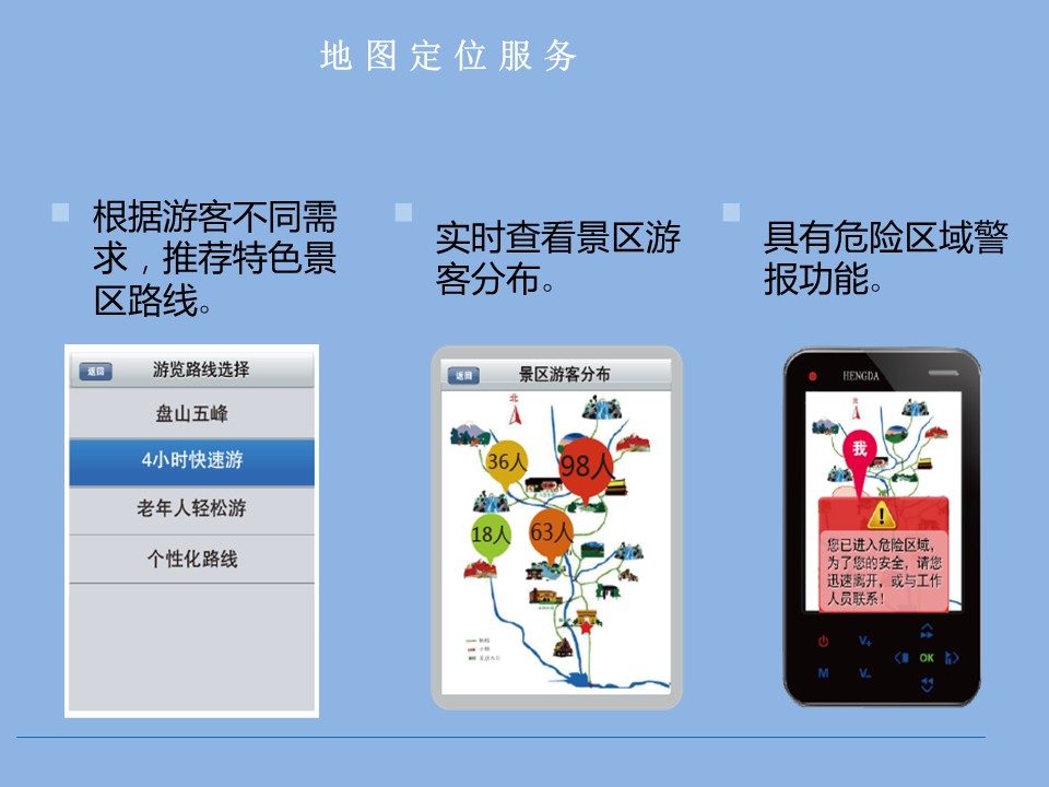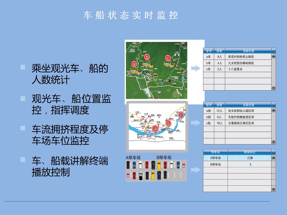 1.游客定位;2.车船状态实时监控;3.互动交流;4.设备管理
