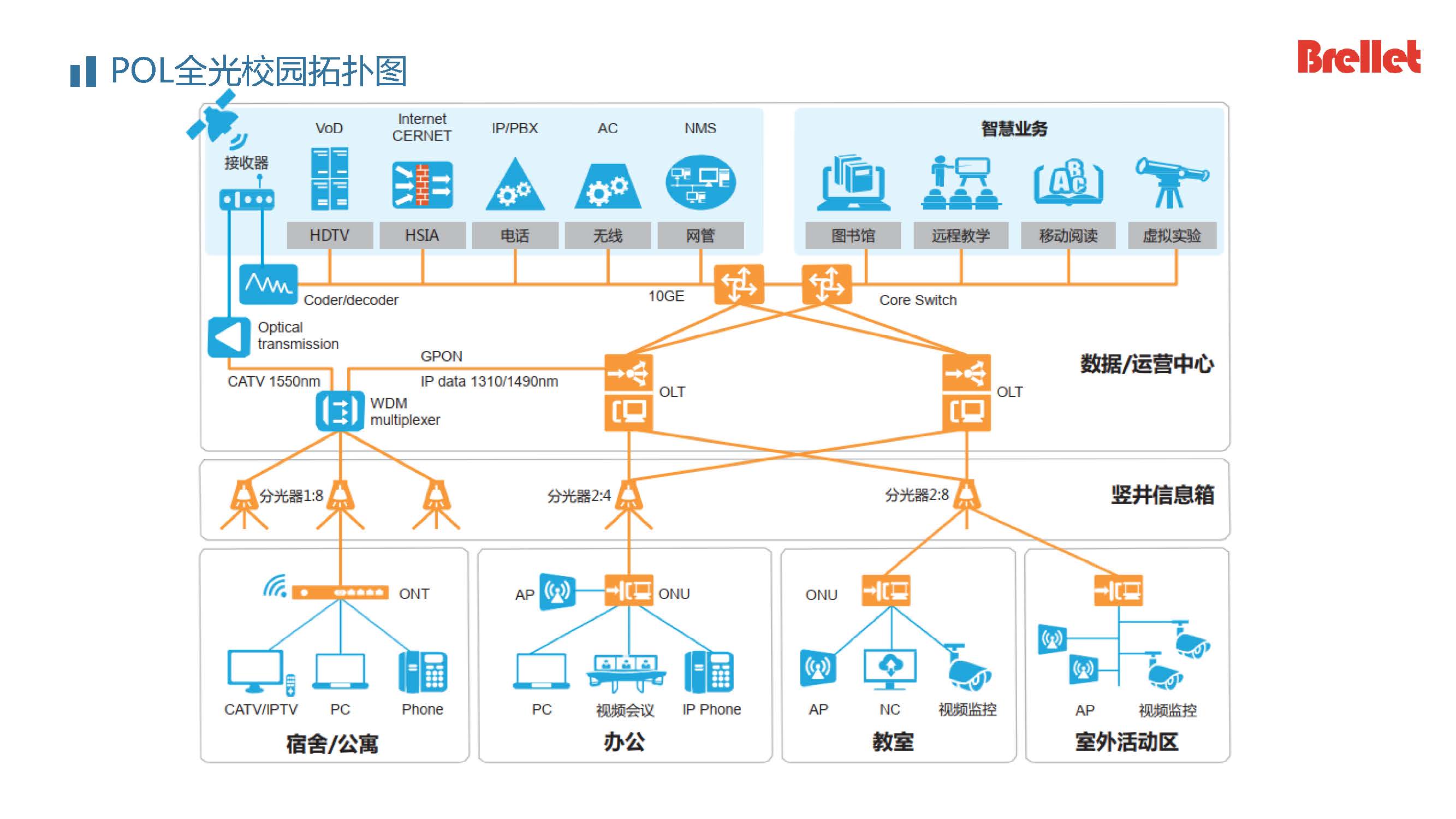 POL网络统一承载宽带、语音、视频、WiFi、CATV、办公等业务。