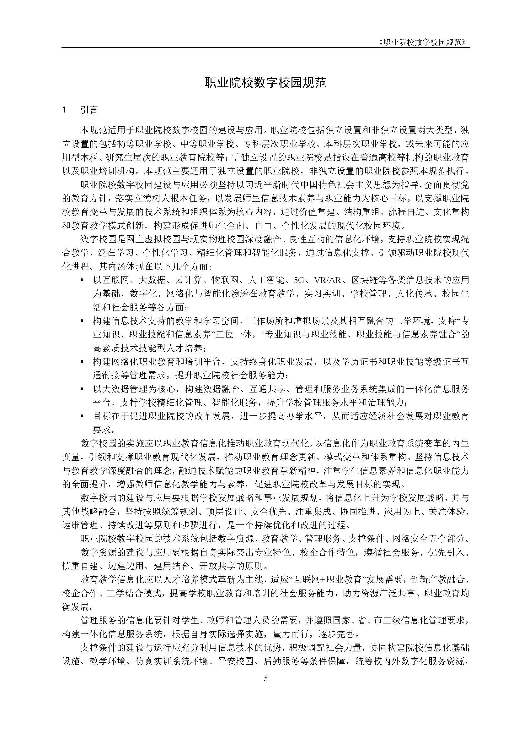 ——第 1 部分:引言。该部分说明了《规范》的适用范围、数字校园的内涵以及实施的指导思想。