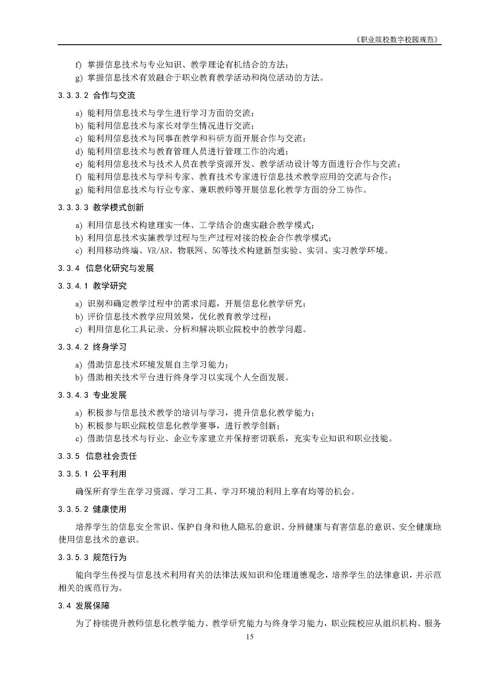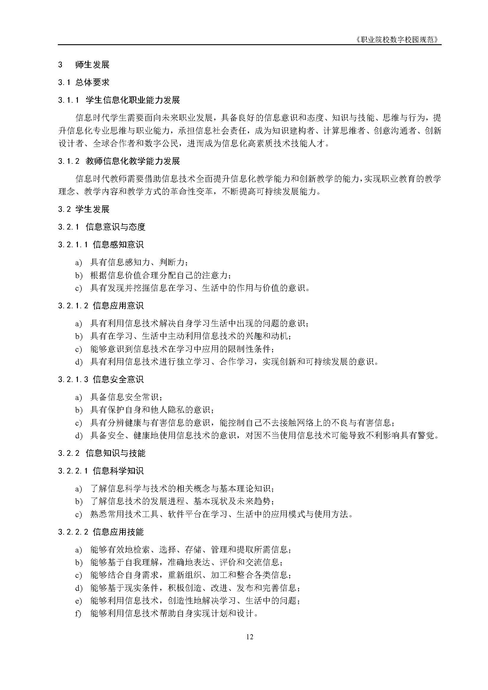 ——第 3 部分:师生发展。该部分规定了数字校园促进学生发展和教师发展的内容、要求与目标, 以及数字校园实施过程中对教师专业发展保障措施的要求。