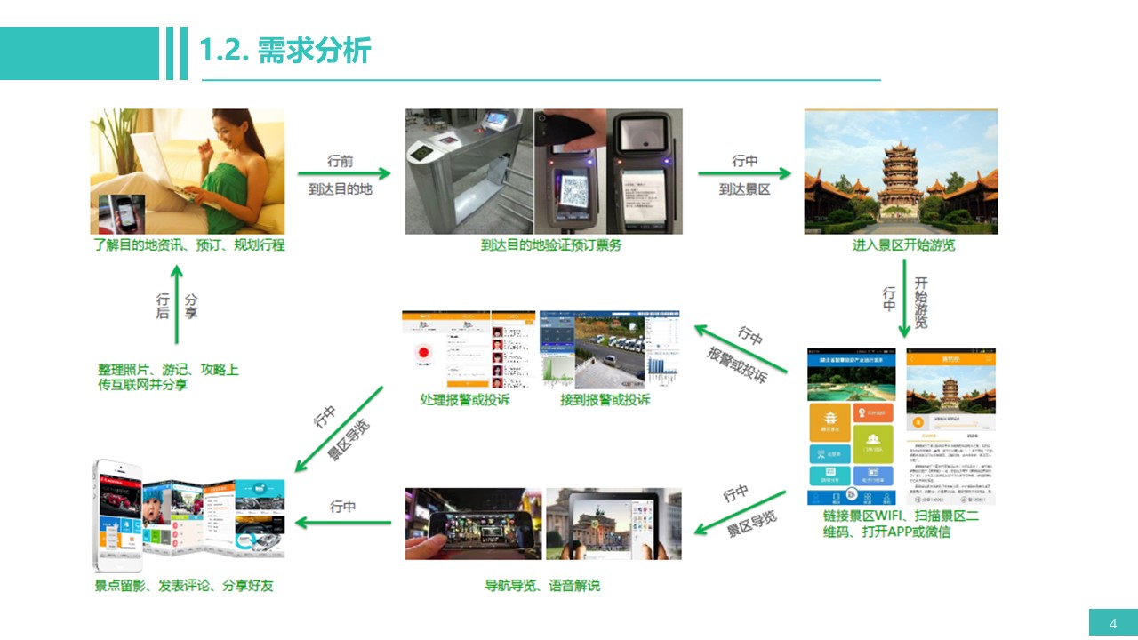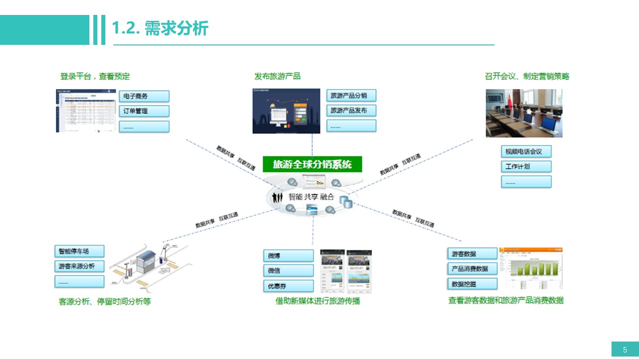设计通过信息通信、安全防范、设施管理、运营管理一键控、客流引导、旅游管理、智慧旅游服务、手机游园、大数据分析等系统之间的交互和融合,进行旅游商业模式创新。