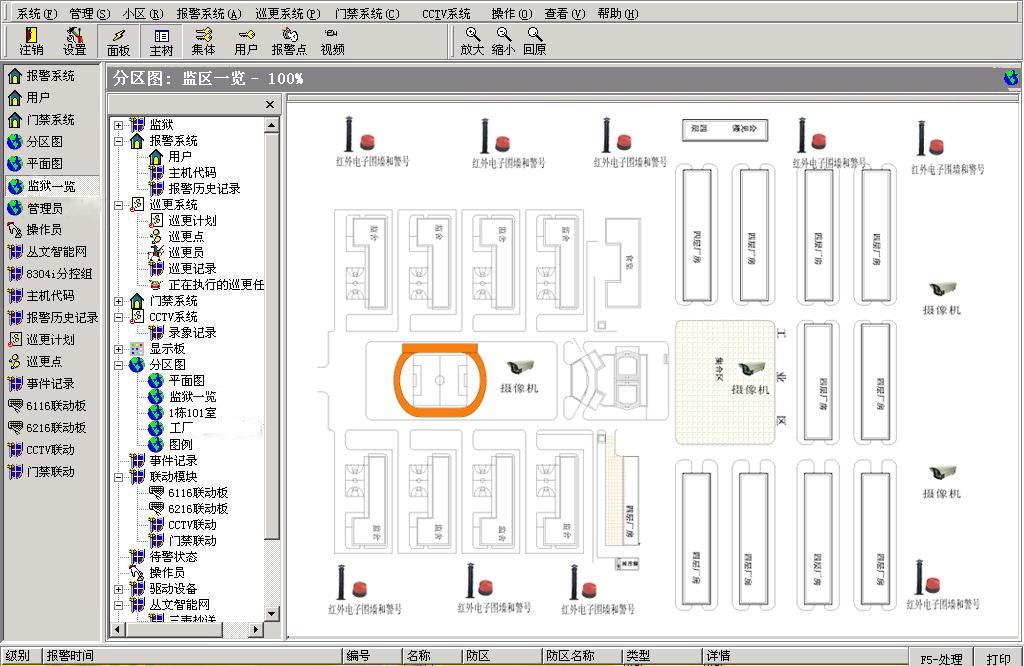 指挥中心监舍对讲、周界、广播、监控、门禁、巡更等各项子系统集成在统一的软件平台,通过同一的软件界面可以迅速获得监舍对讲、周界、广播、监控、门禁、巡更状态,应用声音、电子地图等多媒体功能,直观地控制各子系统状态。