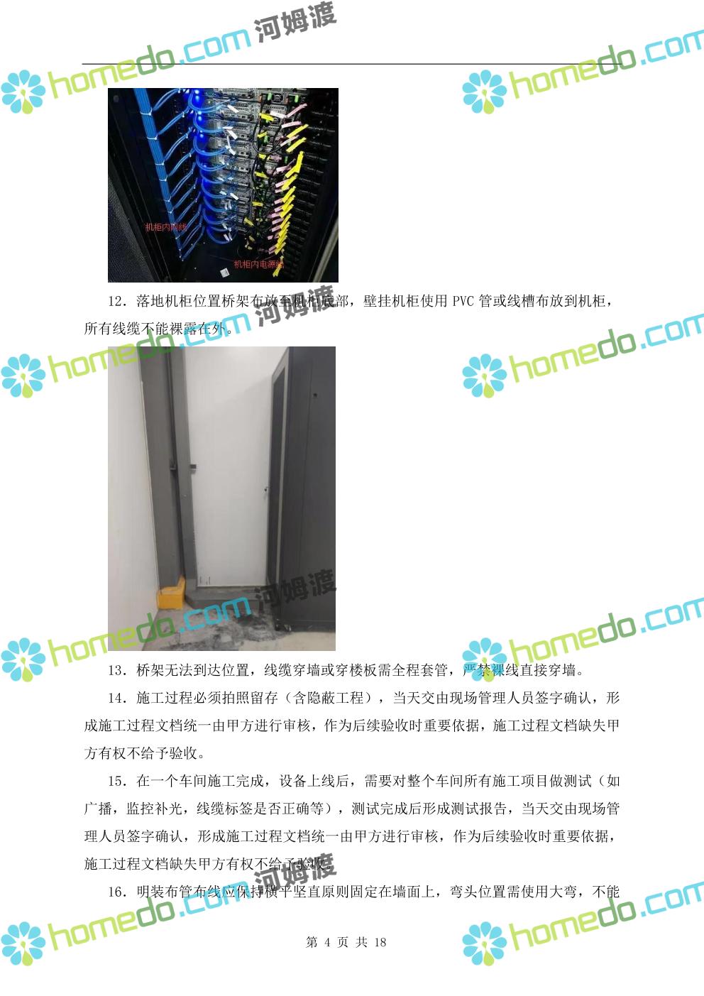 方案简介 本文件适用与XXX公司各产业基地IT弱电工程建设,承包方需按照发包方提供的图纸、需求功能要求、国家现行相关行业标准及规范和招标文件等具体要求制定投标方案。 二、工程范围 综合布线、视频监控、人员通道道闸、考勤系统、网络设备等系统。