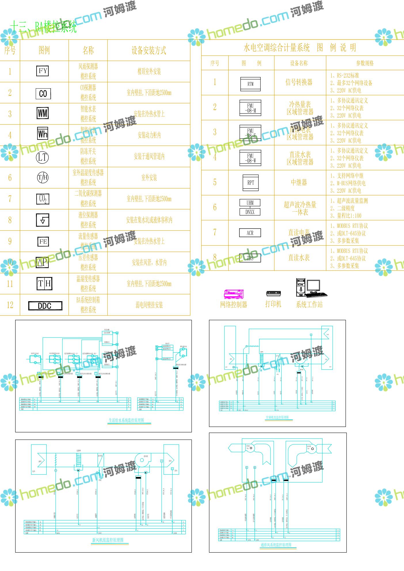 方案简介 包含综合布线系统、计算机网络系统、视频监控系统、安全防范系统、有限电视系统、楼宇对讲系统、一卡通系统、广播系统、多媒体会议系统、信息发布系统、机房建设工程、防雷接地系统BA楼控系统、智能家居、医院专用系统各系统设备图例