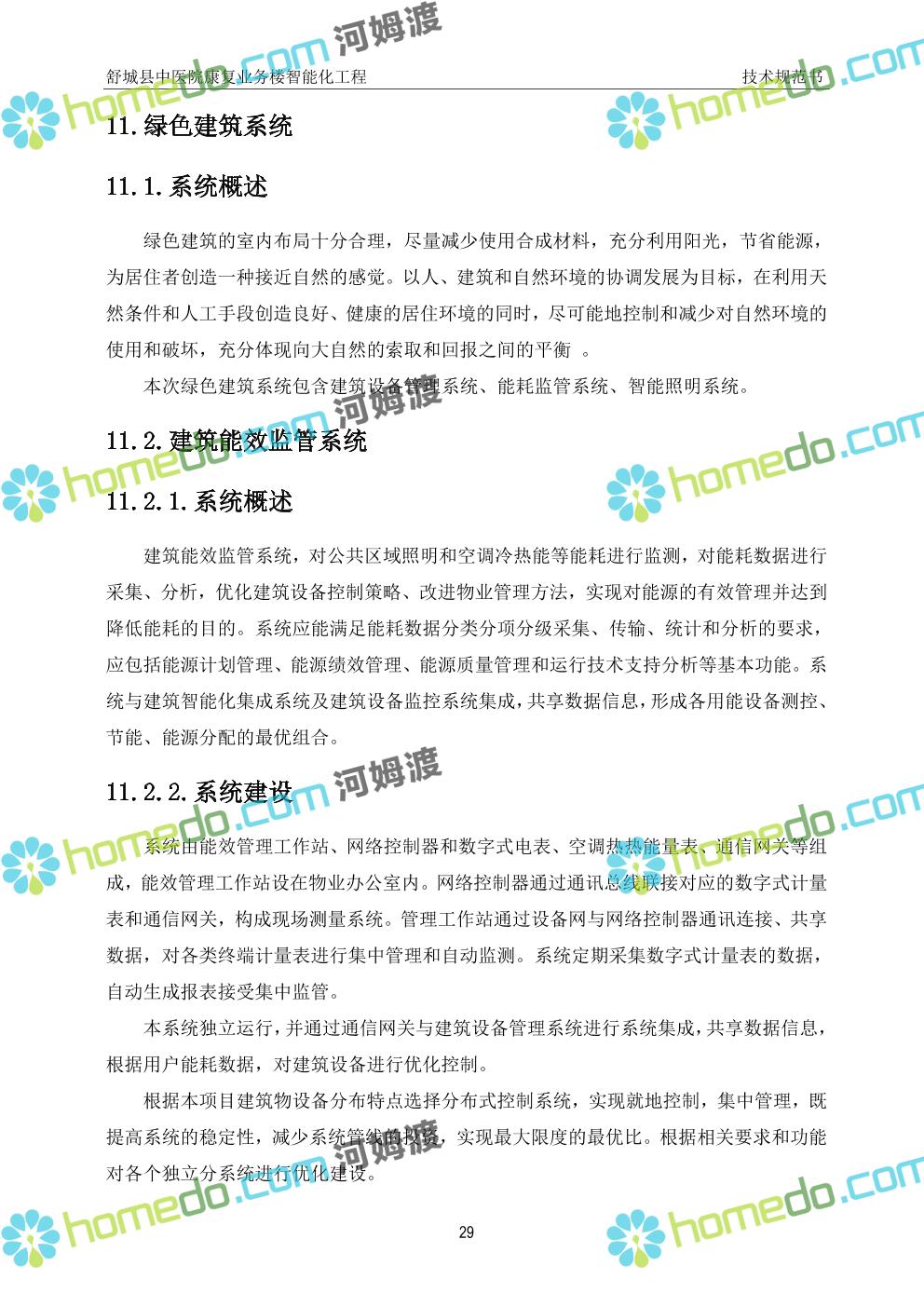 方案简介 本技术规范书为XXX新建医院智能化系统的全部内容,包含一下子系统 1)、综合布线系统 2)、计算机网络系统(含无线网络覆盖) 3)、语音通信系统(仅前端线缆点位预留、IP电话机) 4)、视频监控系统 5)、防盗报警系统 6)、门禁一卡通系统 7)、停车场管理系统 8)、排队叫号与信息引导及发布系统 9)、多媒体会议系统 10)、电梯五方通话系统 11)、绿色建筑系统(能耗监管系统) 12)、机房工程(数据机房、消防控制室) 13)、综合管网