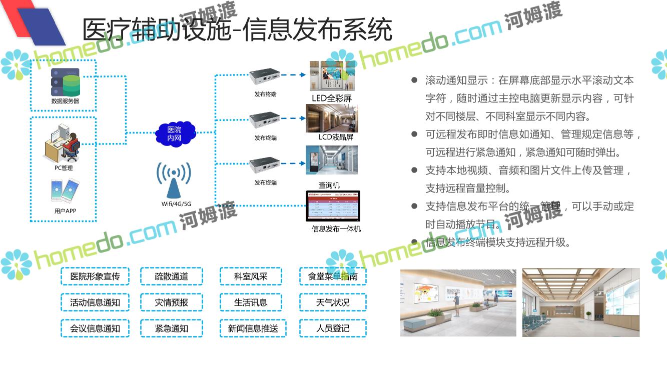方案简介 智慧医院建设目标:按照智慧医疗、智慧服务、智慧管理“三位一体”标准,从医护、患者、医院“三维共治”到“三方共赢”;1、智慧医疗---引领临床提质增效;2、智慧服务---打造全病程服务体系;3、智慧管理---构建系统性高阶管理架构;