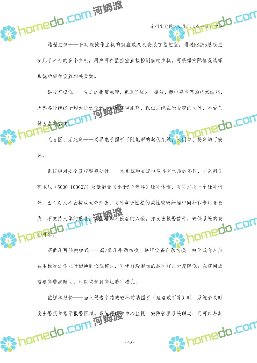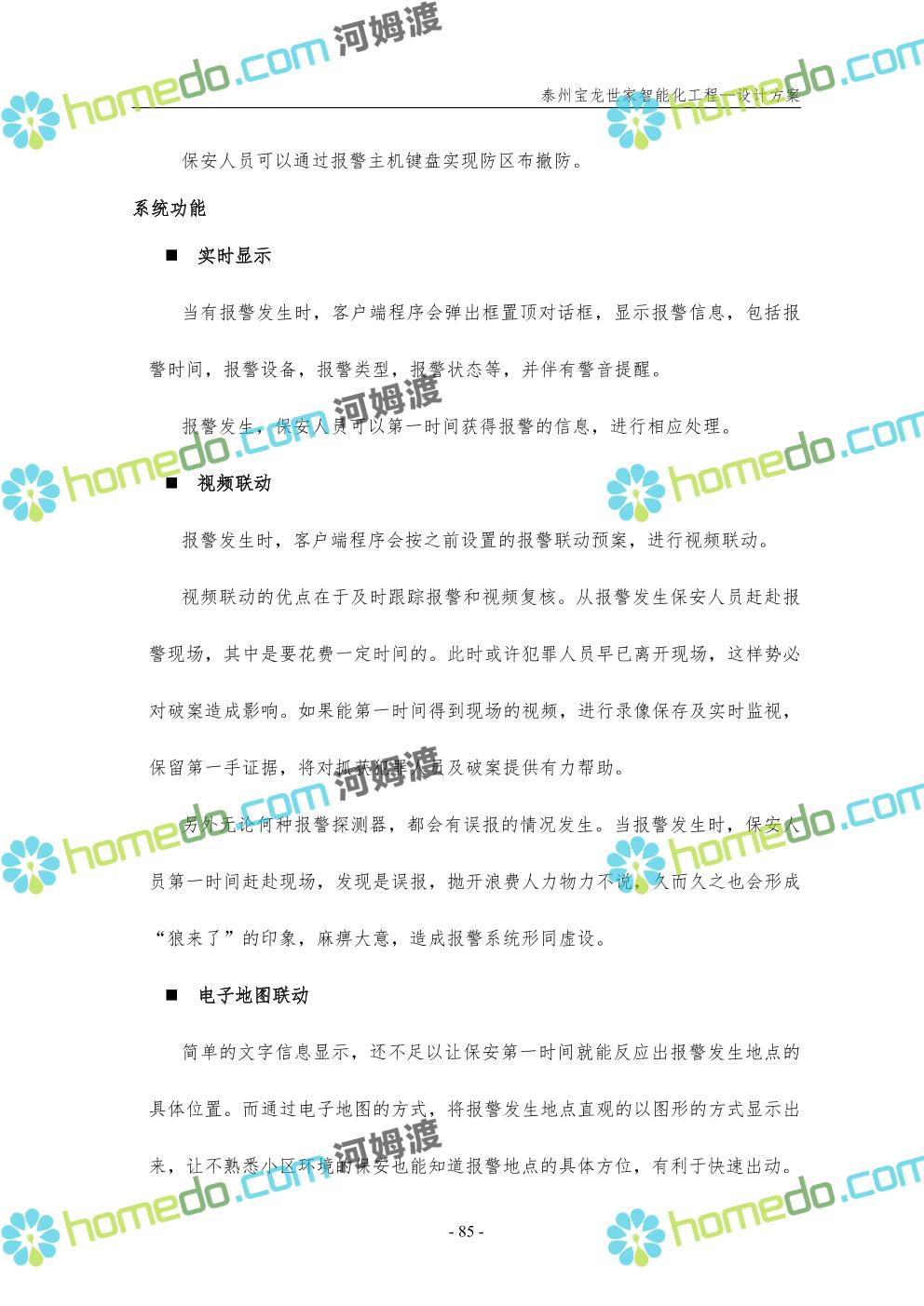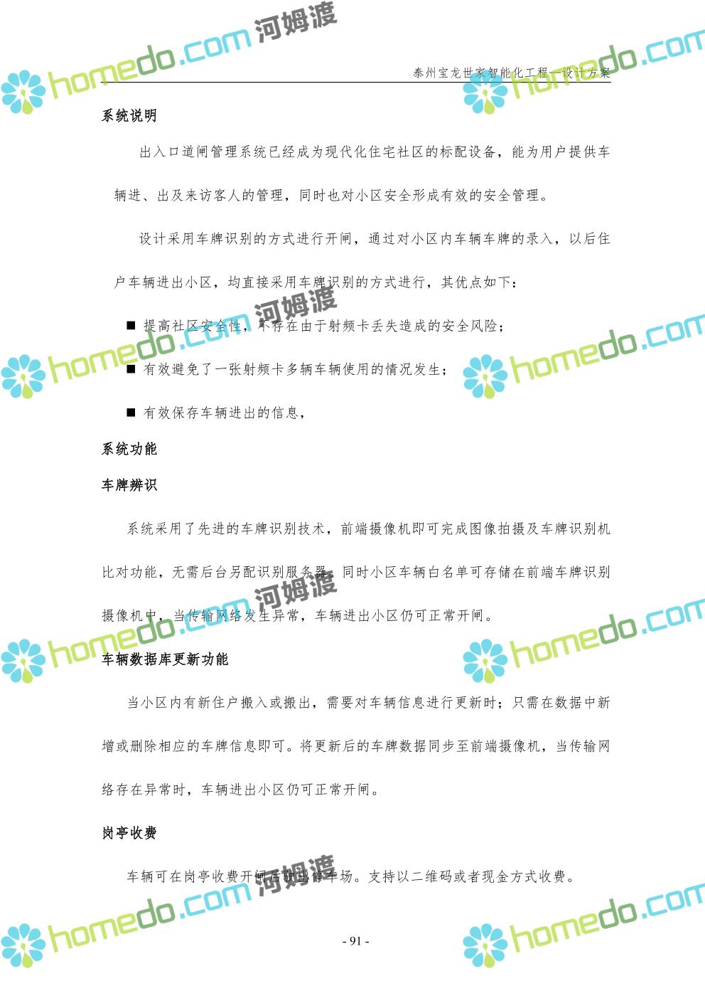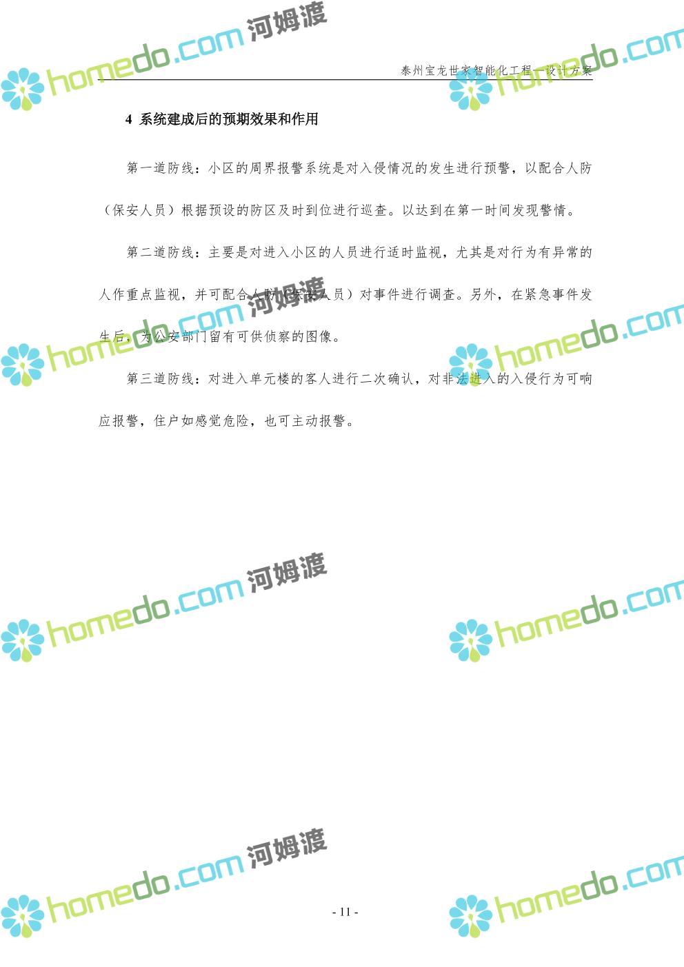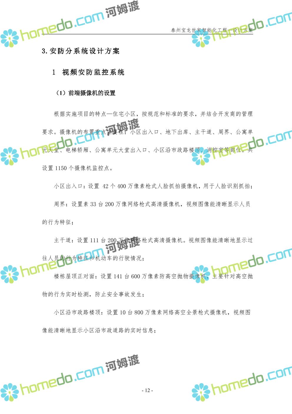 方案简介 针对宝龙世家住宅项目的智能化工程做出视频监控系统、出入口控制系统、停车场管理系统、周界报警系统等系统方案说明