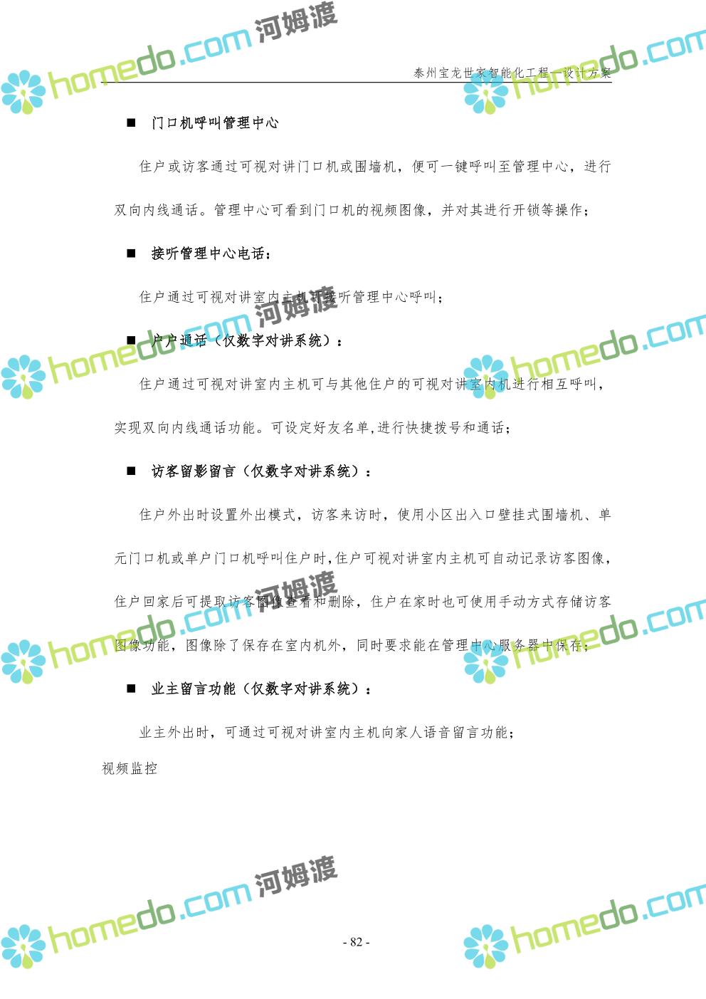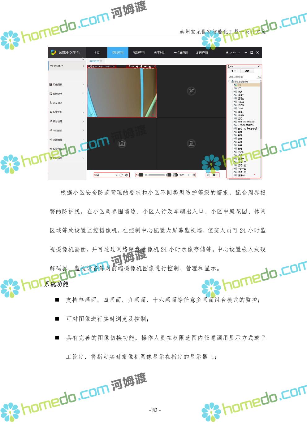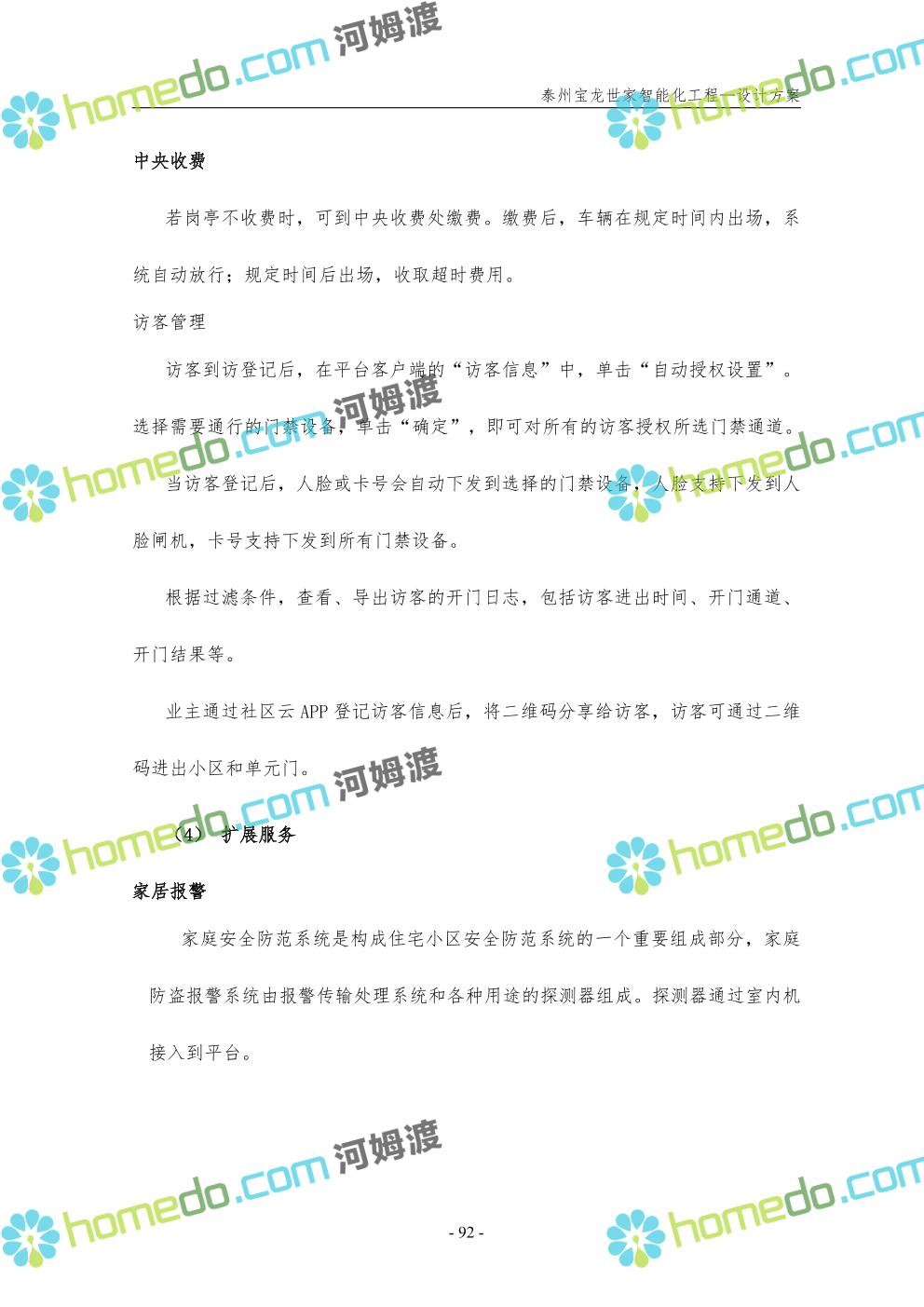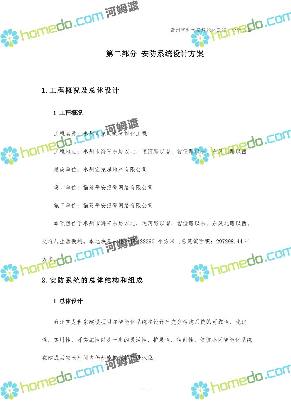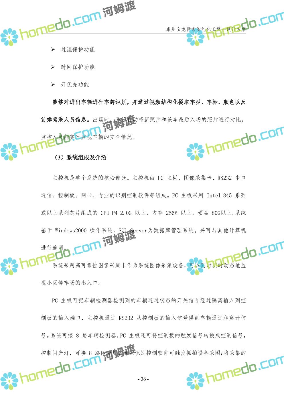 方案简介 针对宝龙世家住宅项目的智能化工程做出视频监控系统、出入口控制系统、停车场管理系统、周界报警系统等系统方案说明