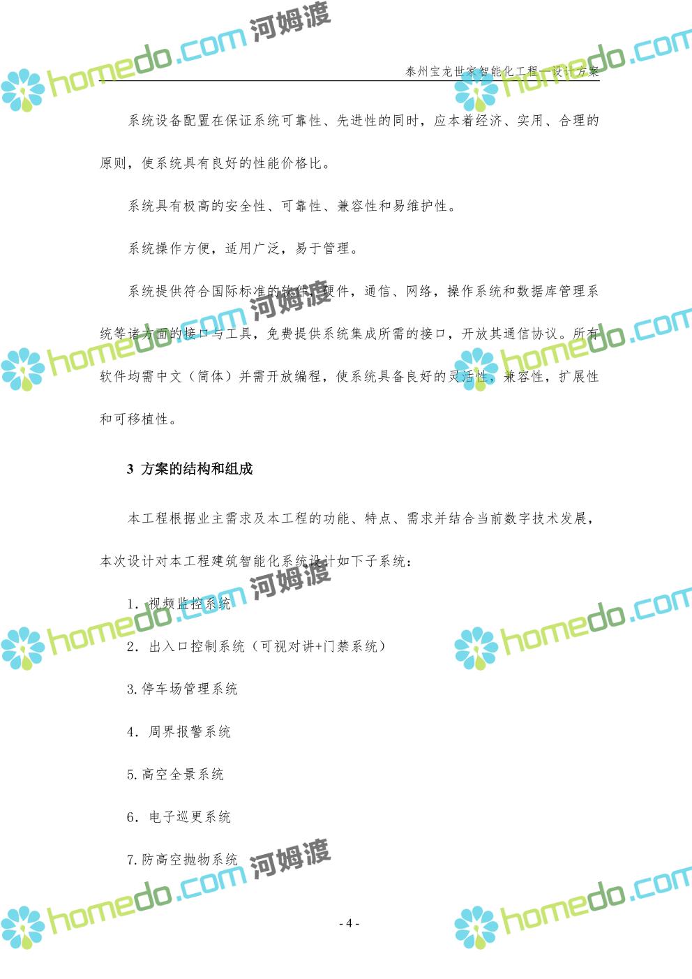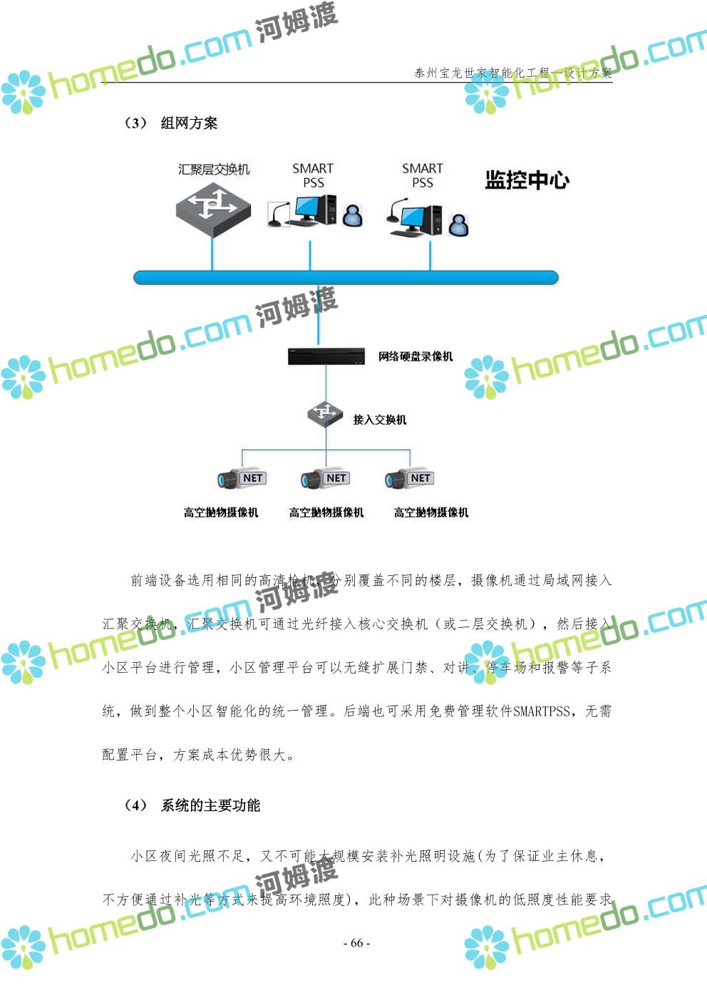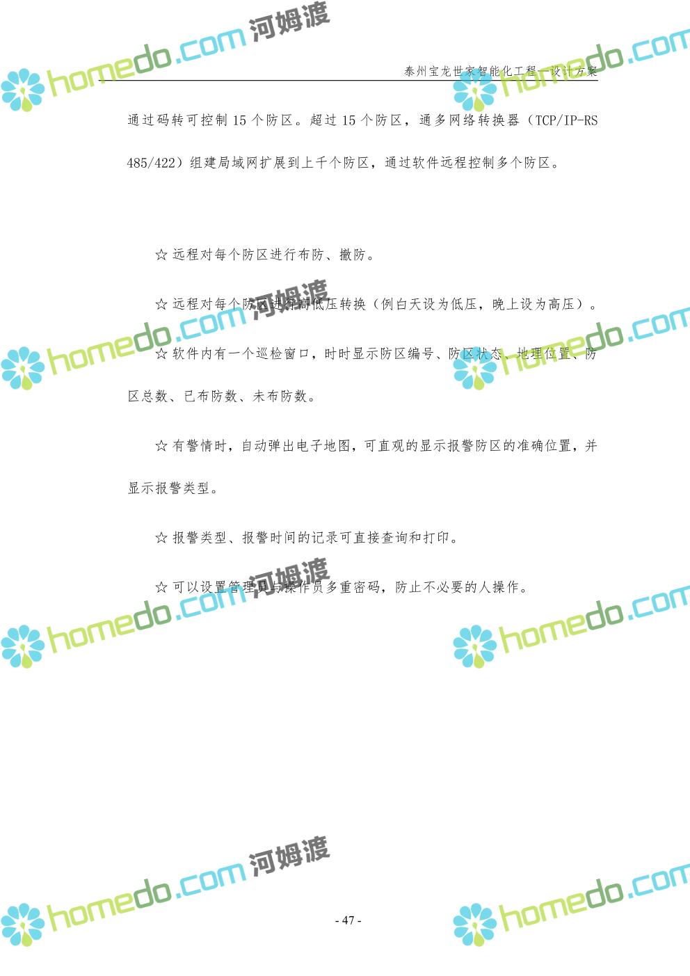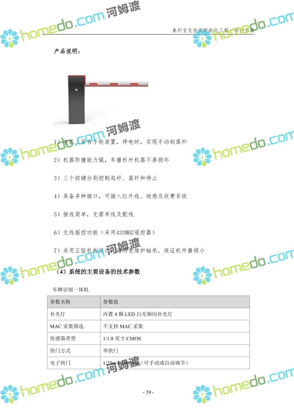 方案简介 针对宝龙世家住宅项目的智能化工程做出视频监控系统、出入口控制系统、停车场管理系统、周界报警系统等系统方案说明