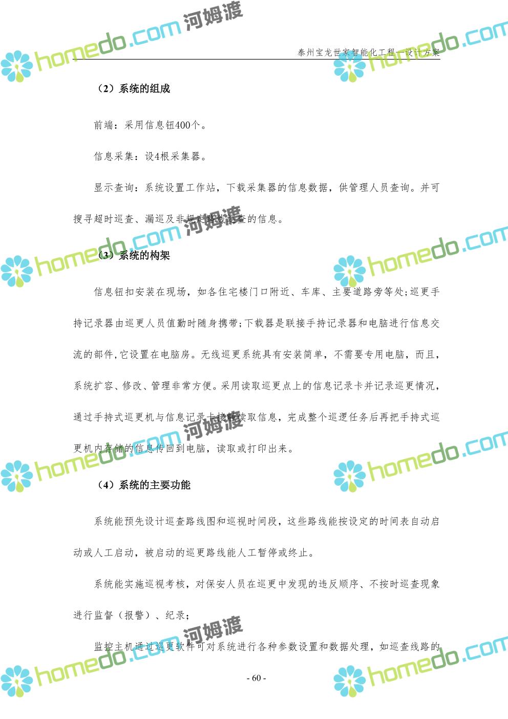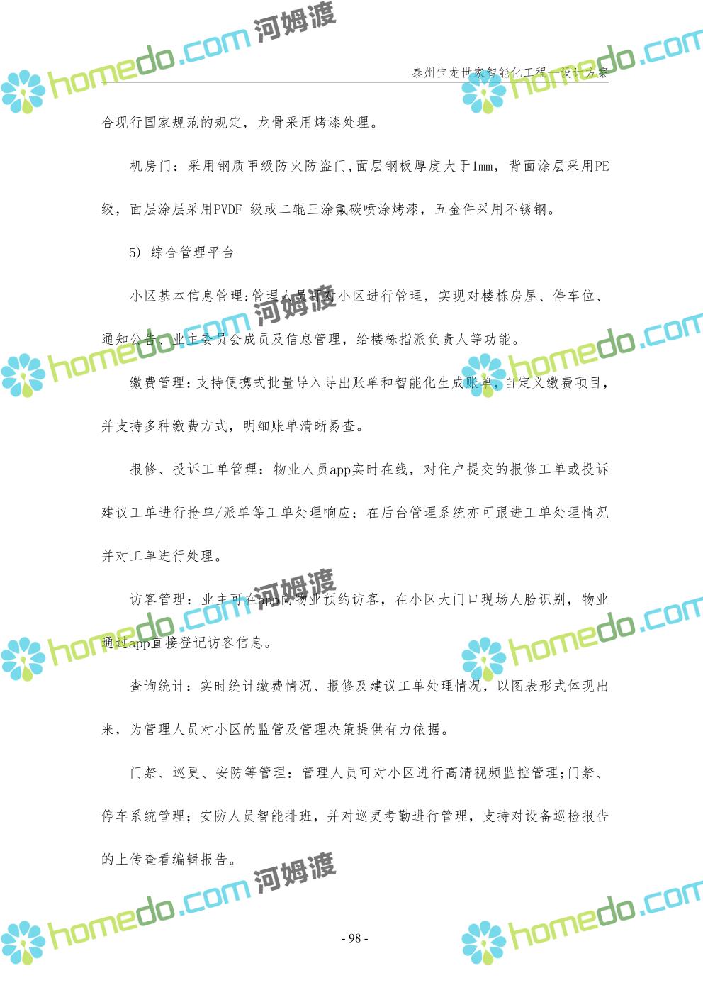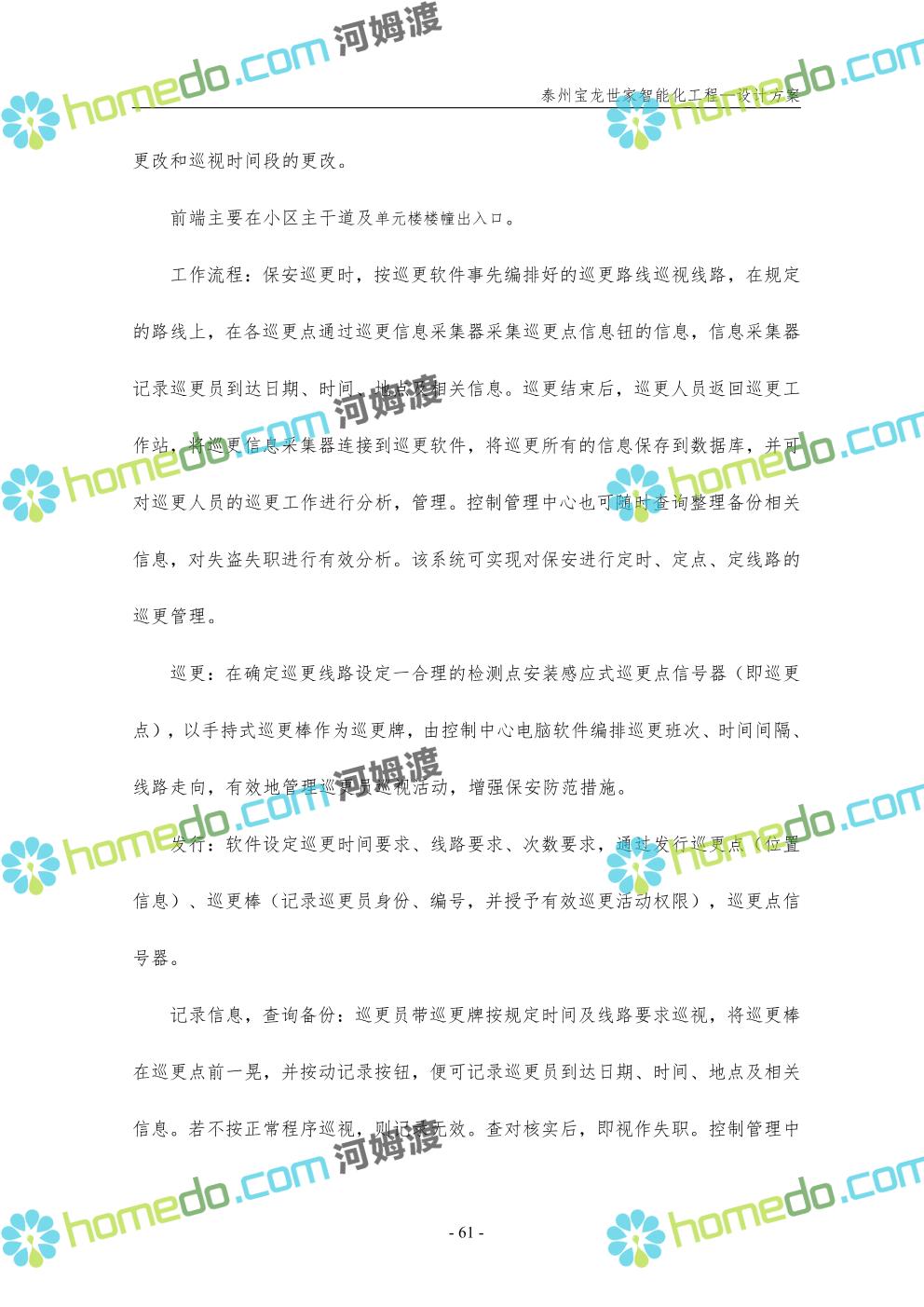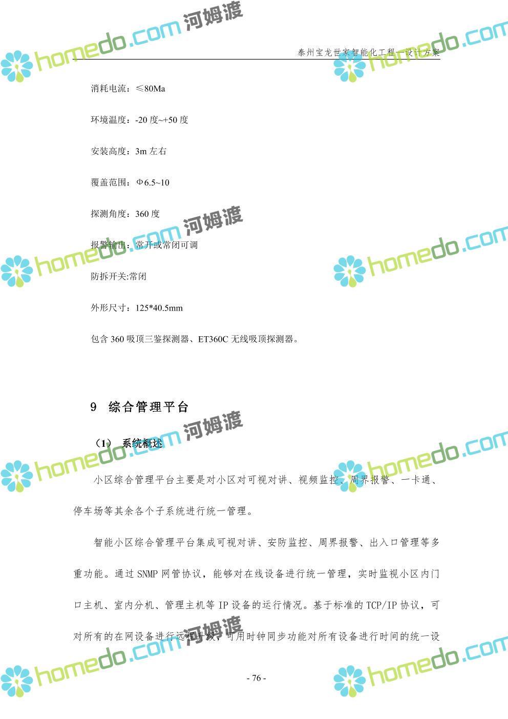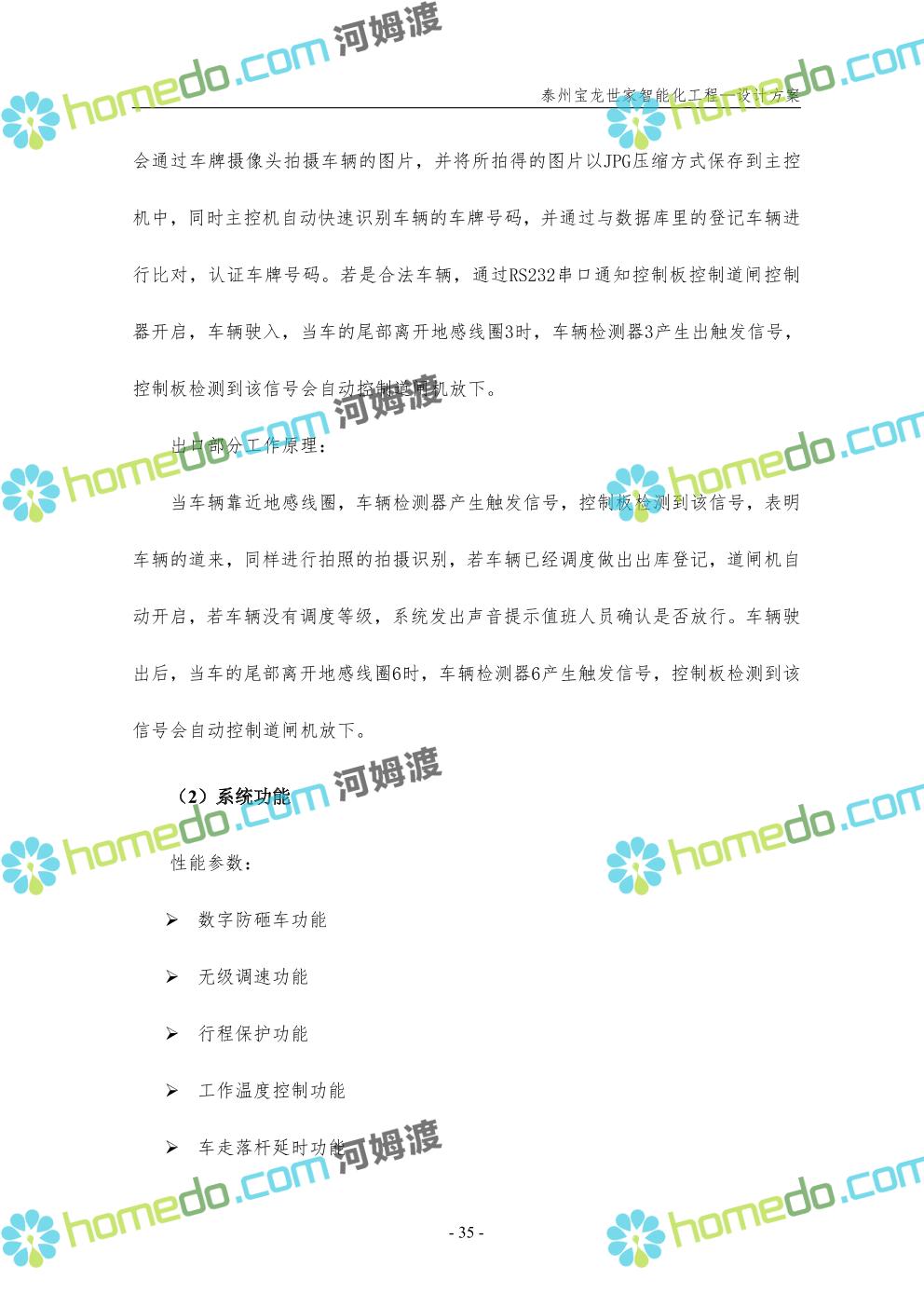 方案简介 针对宝龙世家住宅项目的智能化工程做出视频监控系统、出入口控制系统、停车场管理系统、周界报警系统等系统方案说明