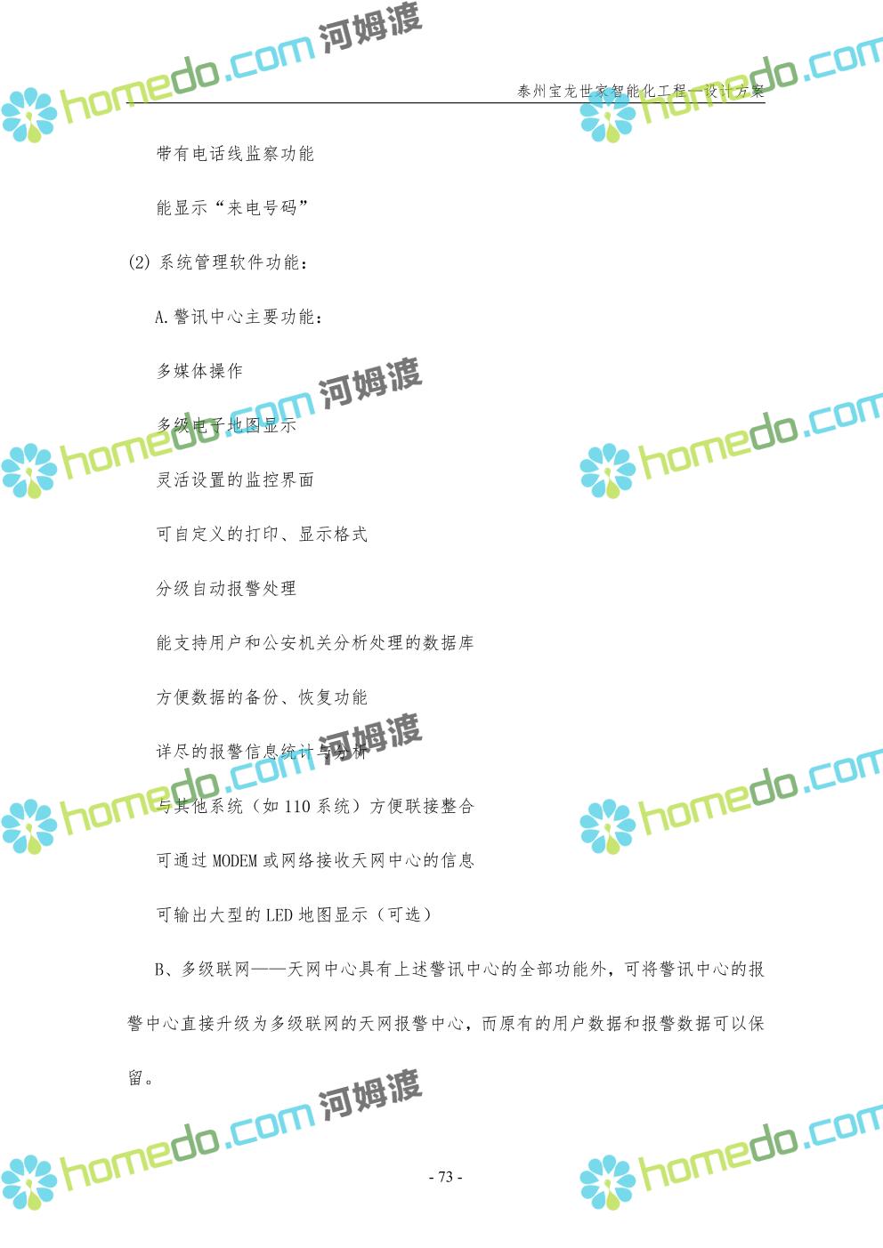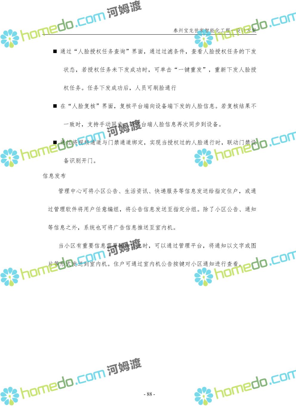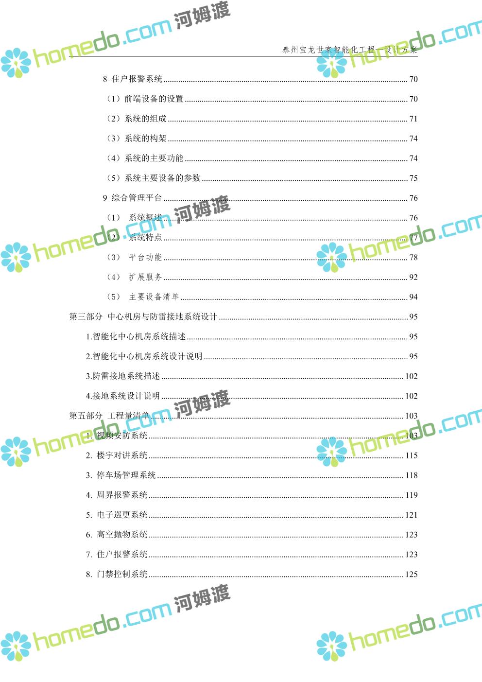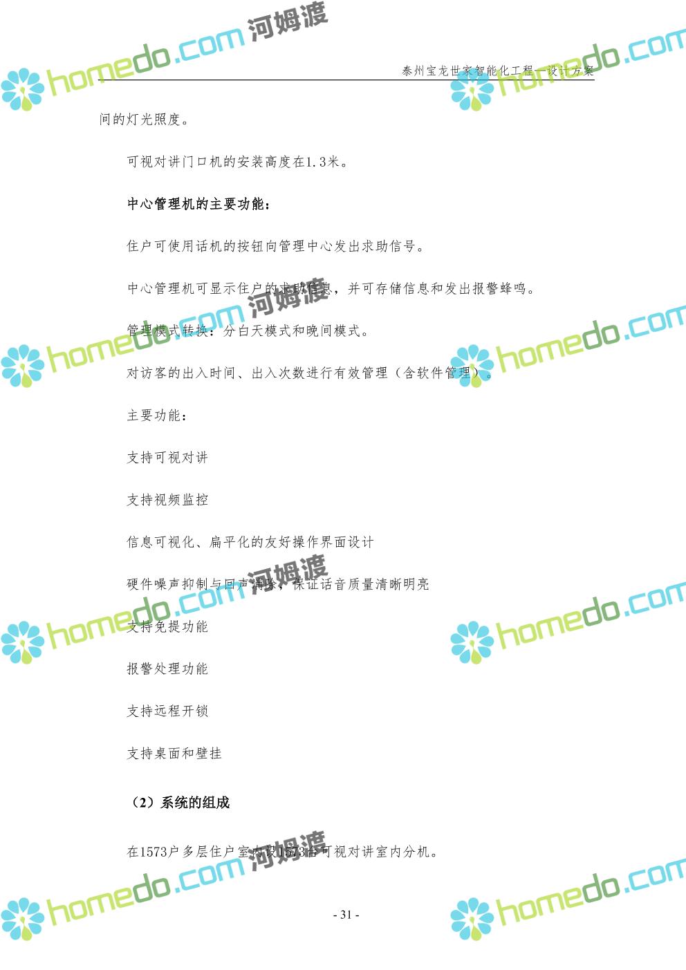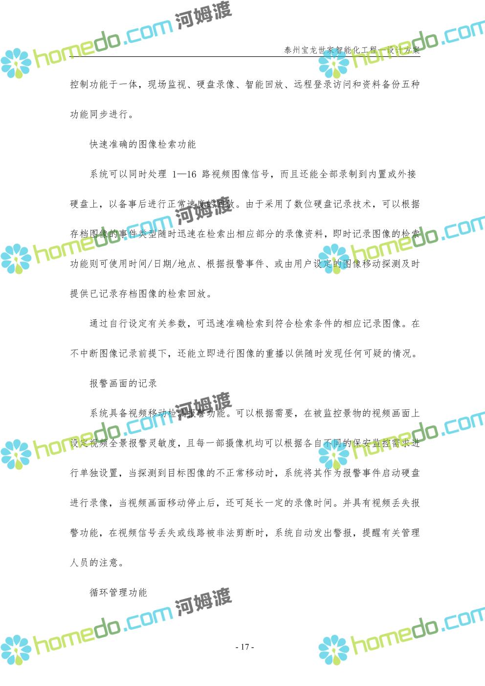 方案简介 针对宝龙世家住宅项目的智能化工程做出视频监控系统、出入口控制系统、停车场管理系统、周界报警系统等系统方案说明