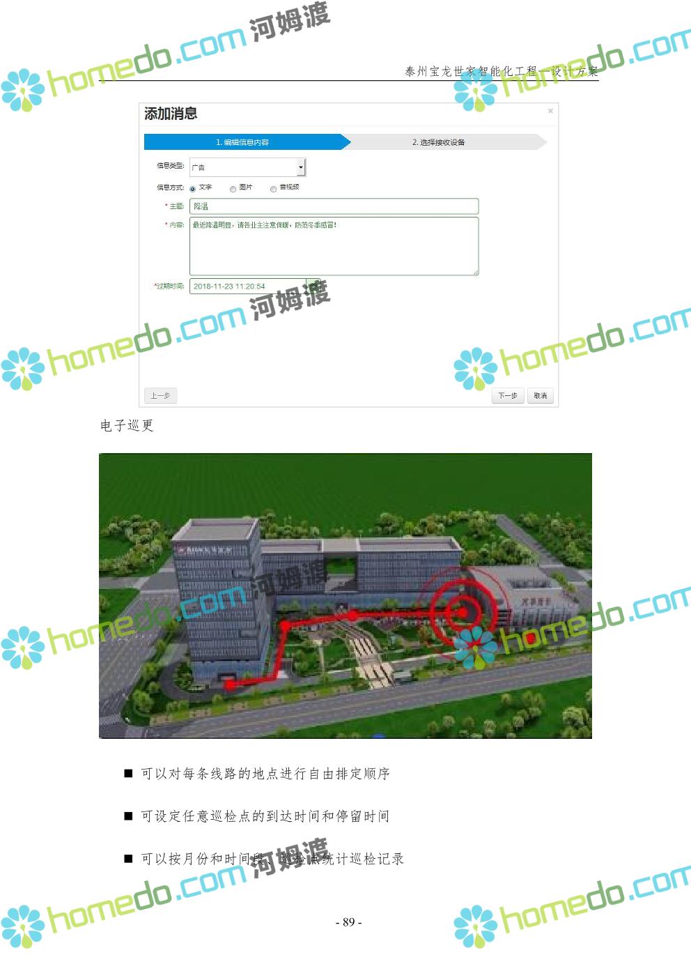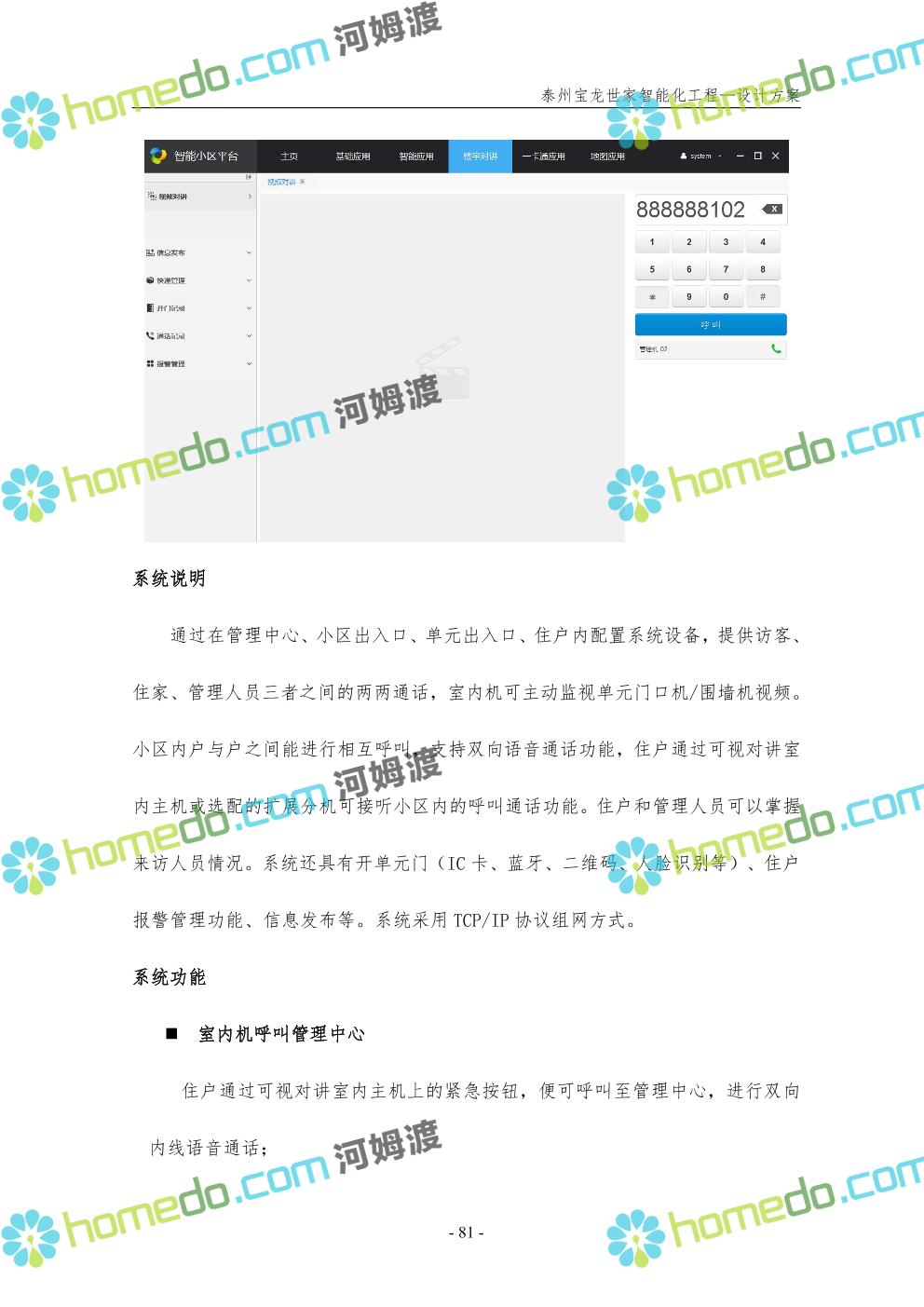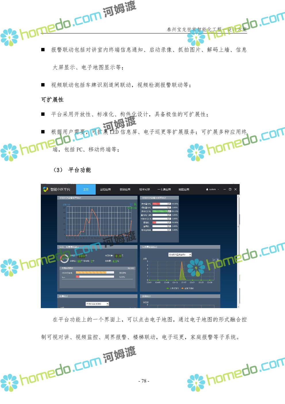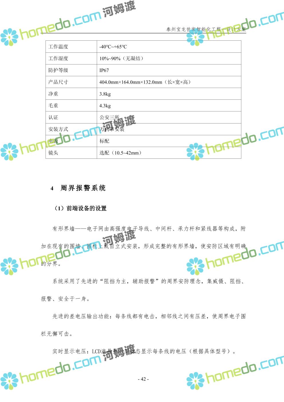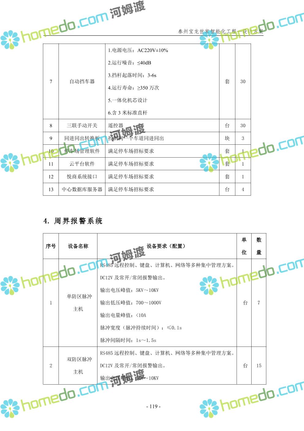 方案简介 针对宝龙世家住宅项目的智能化工程做出视频监控系统、出入口控制系统、停车场管理系统、周界报警系统等系统方案说明