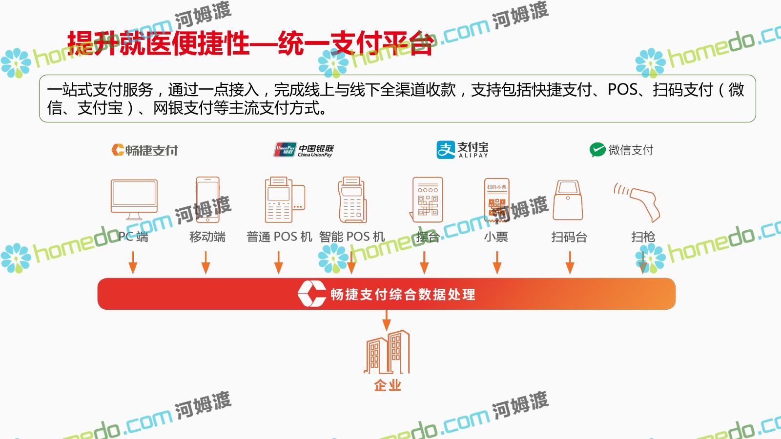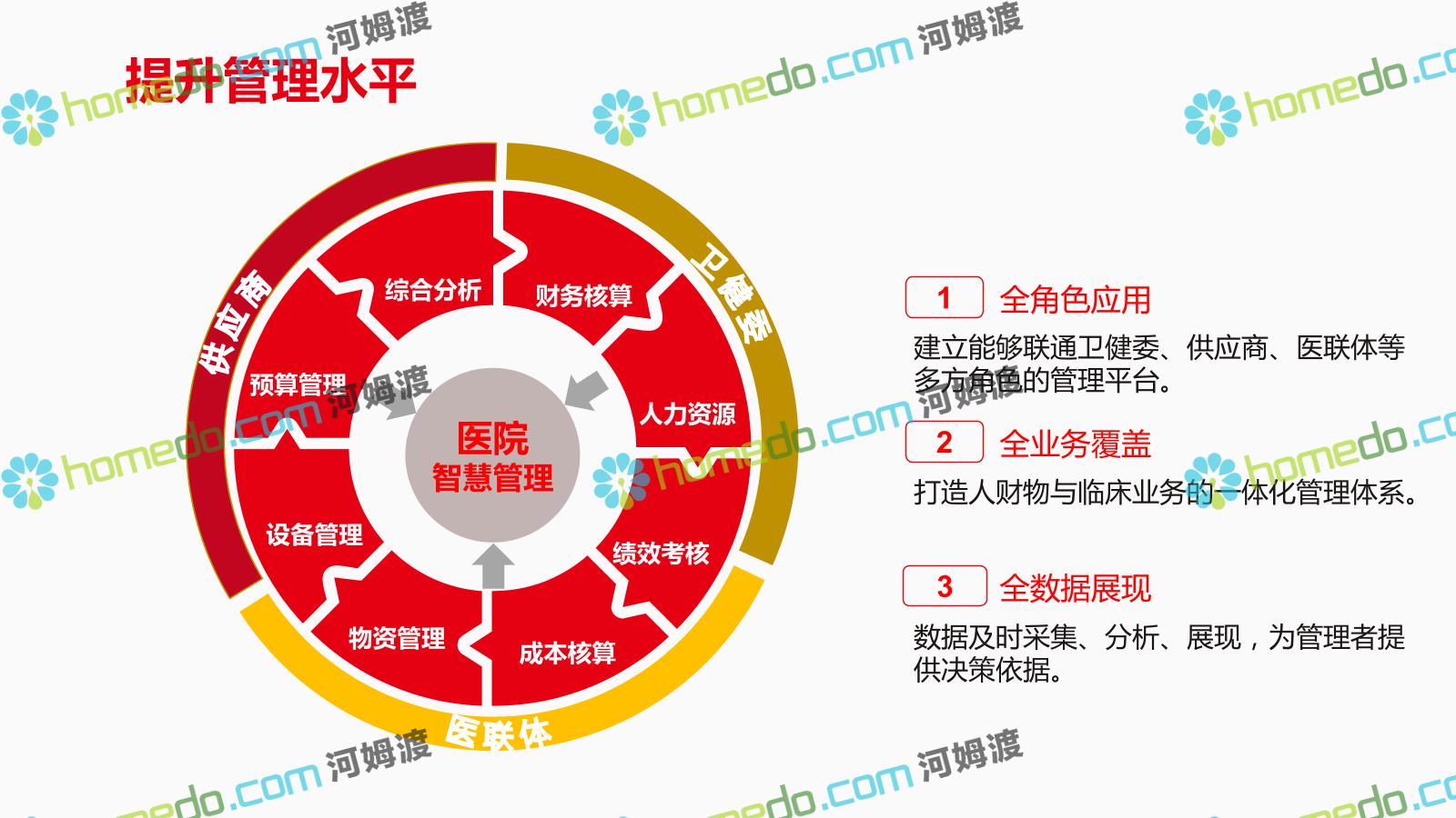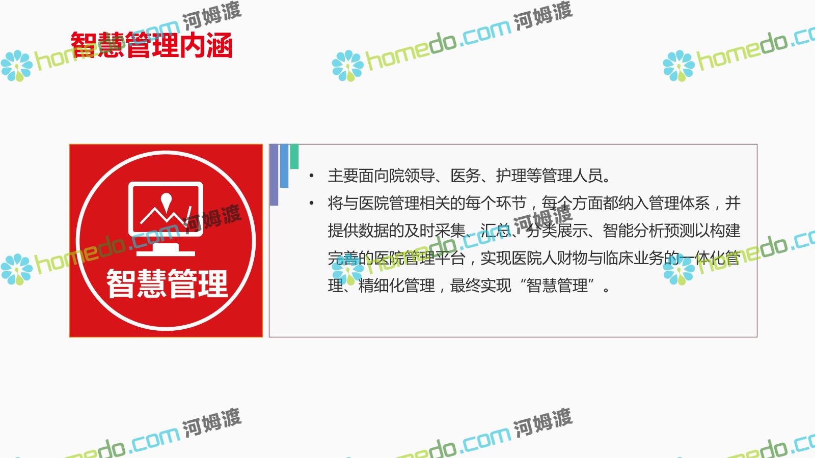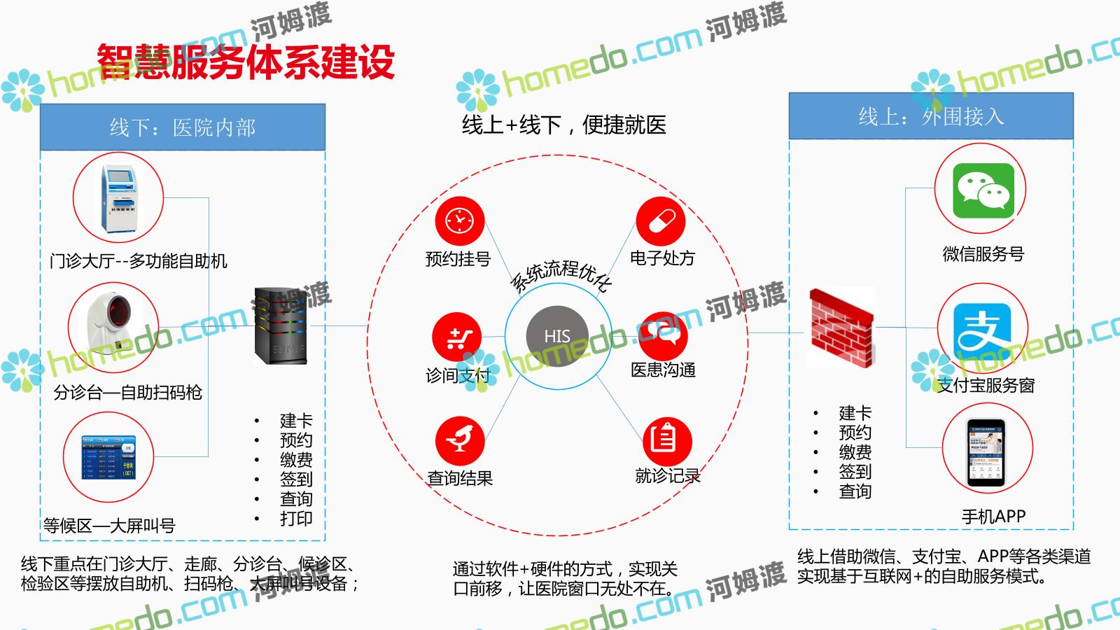 方案简介 信息安全 构建信息安全体系,保证数据安全,保护患者隐私。 智慧服务 一体机、自助机,手机的结算、预约挂号、预约诊疗、信息提醒等让患者感受更加方便和快捷 智慧医疗 以电子病历为核心,服务于医护人员,让日常工作更高效。 智慧管理 包括物资、运营、后勤、科研,面对的是院长、医务处长等管理人员,进一步提升医院精细化管理水平。