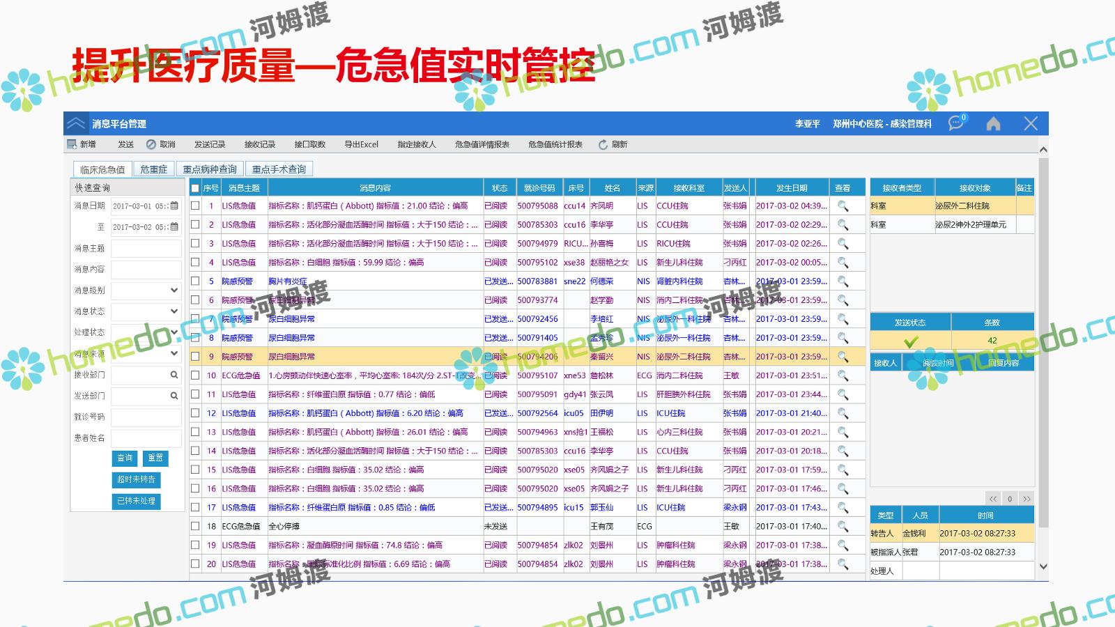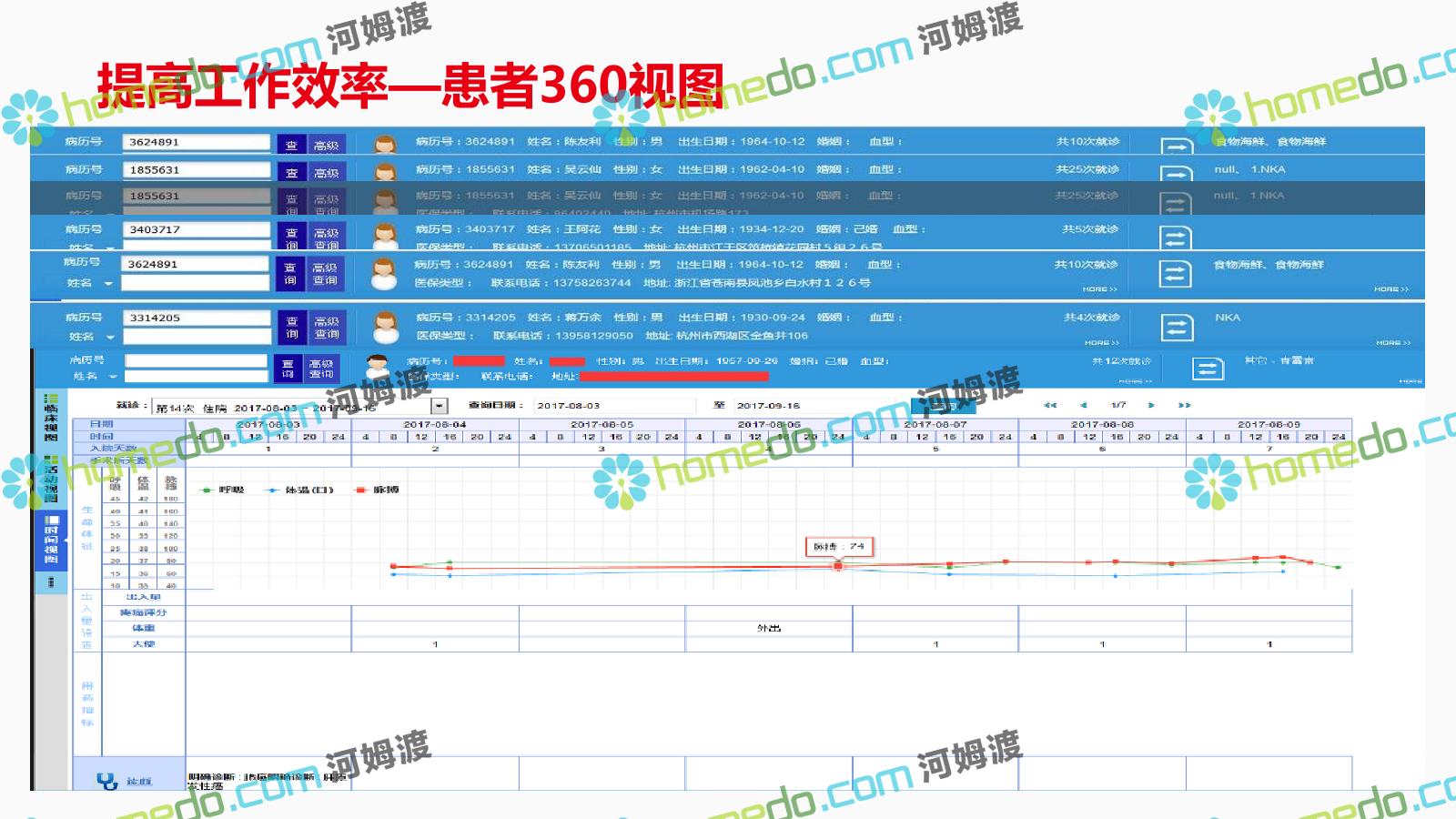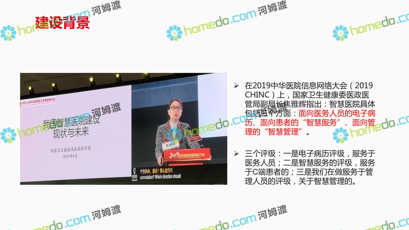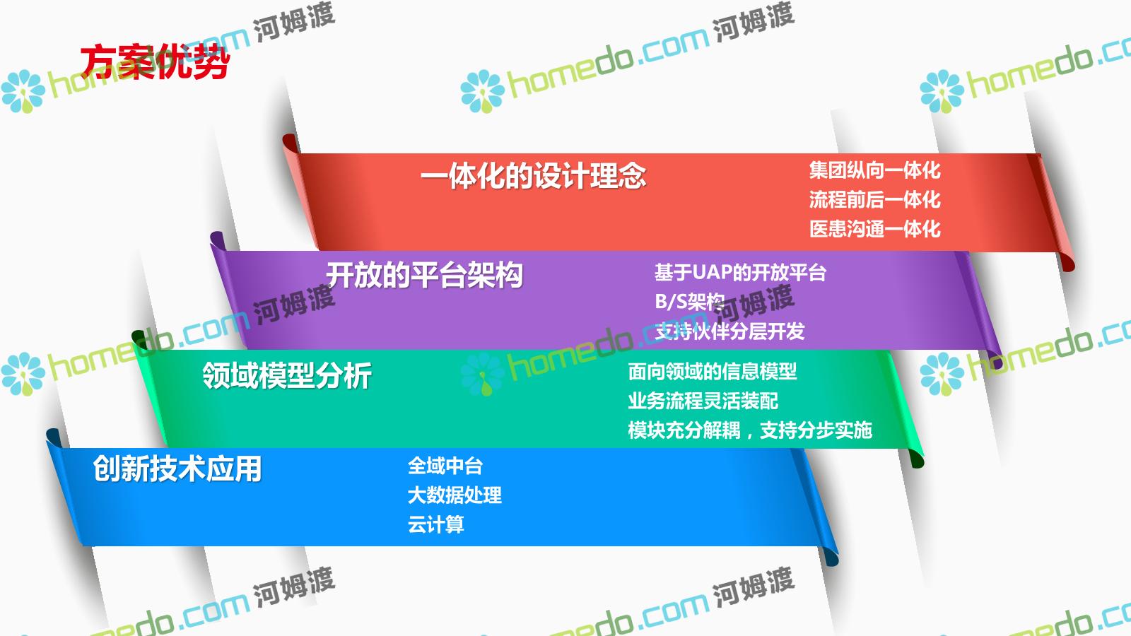 方案简介 信息安全 构建信息安全体系,保证数据安全,保护患者隐私。 智慧服务 一体机、自助机,手机的结算、预约挂号、预约诊疗、信息提醒等让患者感受更加方便和快捷 智慧医疗 以电子病历为核心,服务于医护人员,让日常工作更高效。 智慧管理 包括物资、运营、后勤、科研,面对的是院长、医务处长等管理人员,进一步提升医院精细化管理水平。