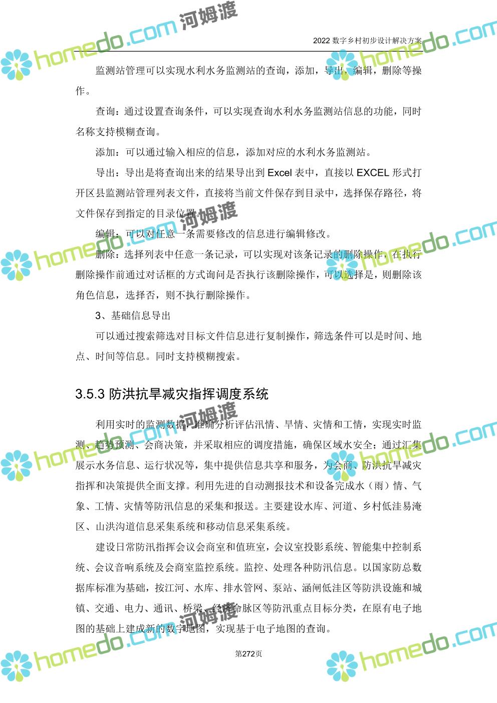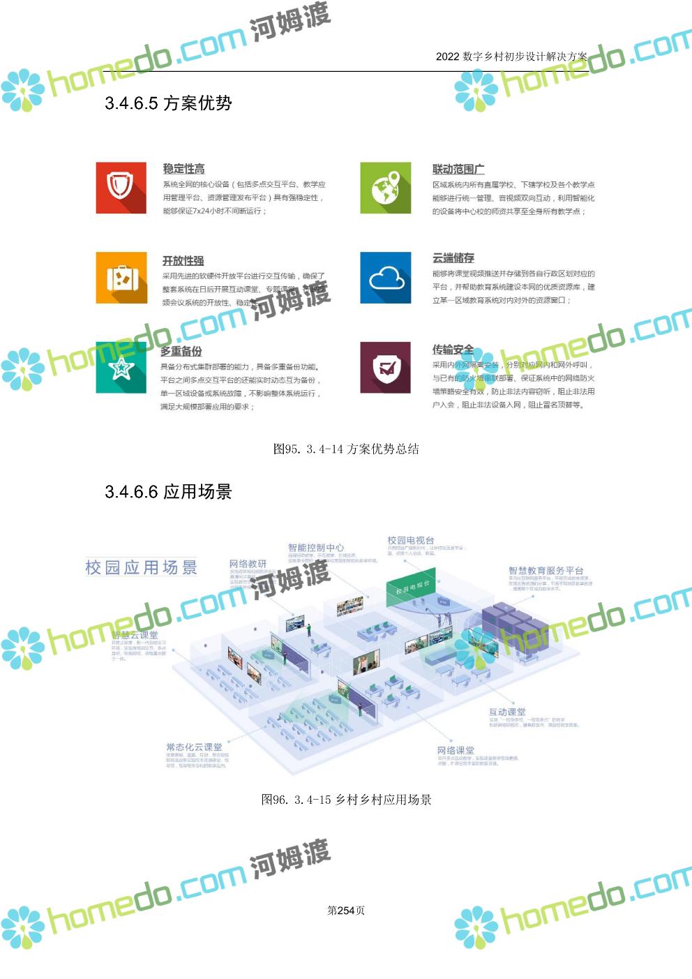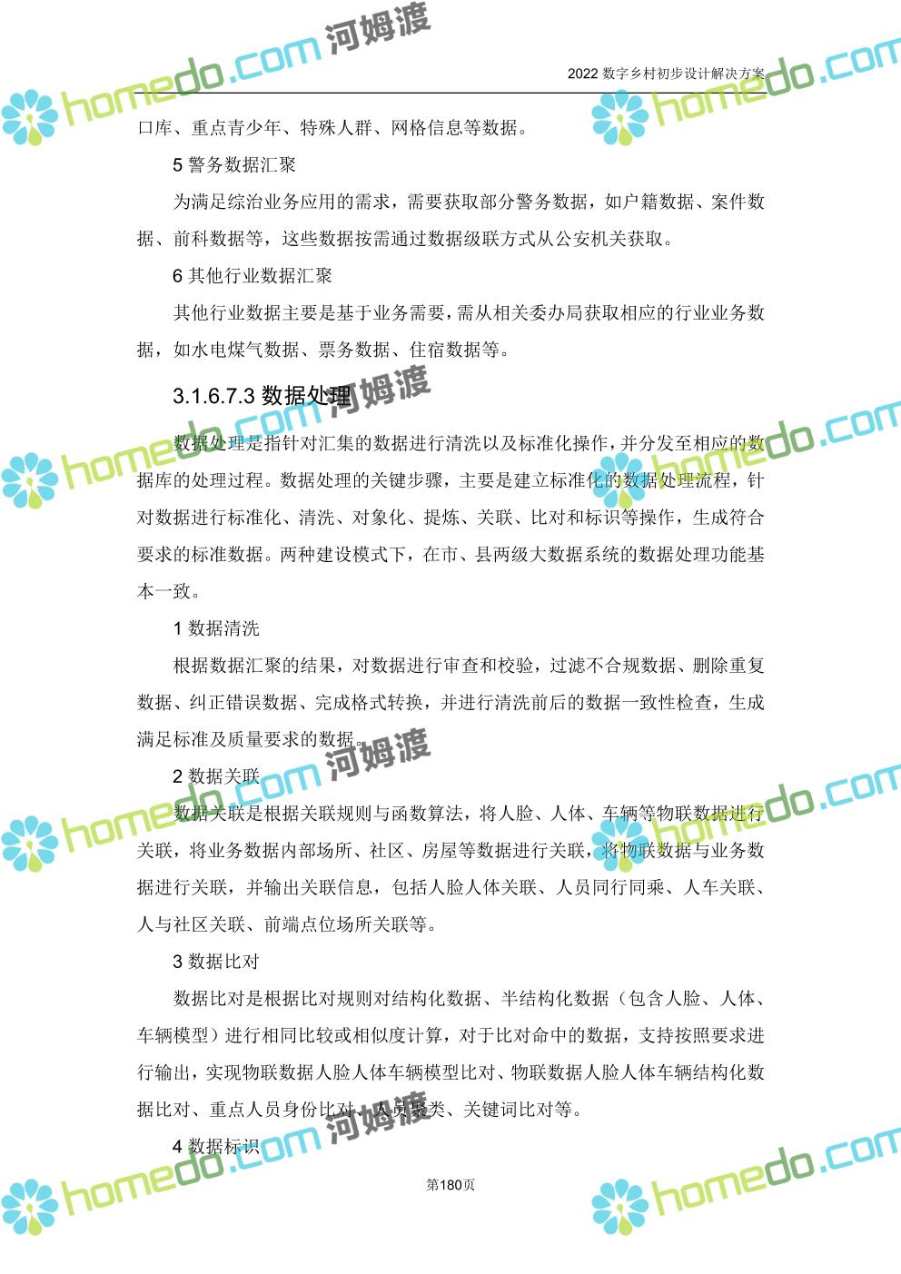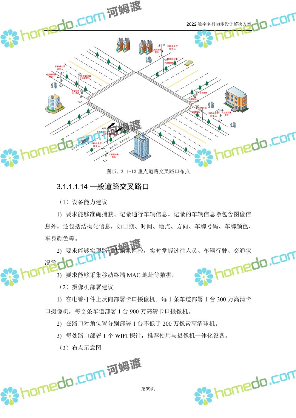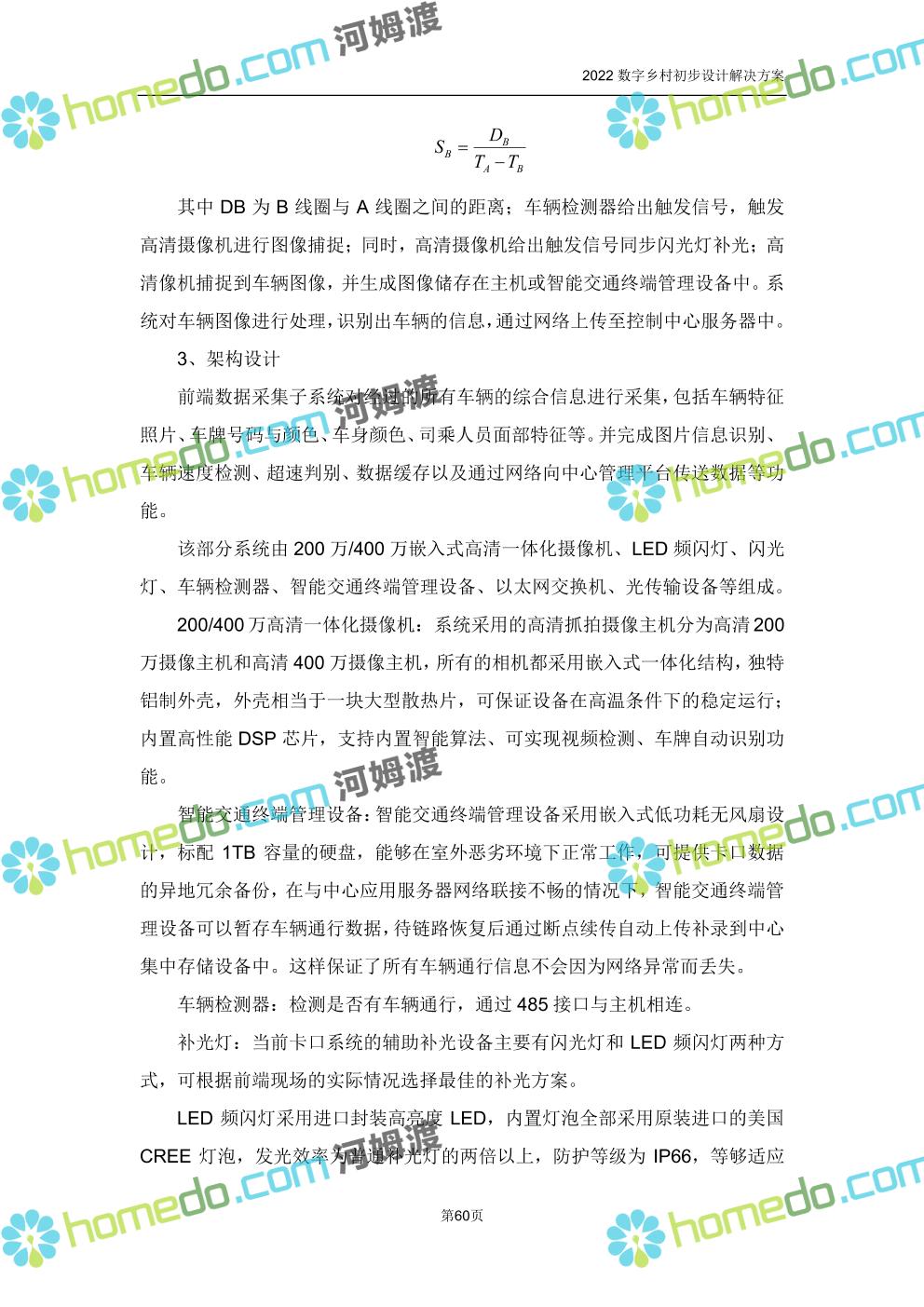 方案简介 依托全市农业农村大数据中心建设为中心,建设农业农村管理决策系统:建 设农产品全产业链监测预警系统:建设数字农业农村服务系统:建设农村人居环 境智能监测系统;建设乡村数字治理系统。 完成数字乡村信息化基础设施建设,包括前端感知设备、网络传输构建、机 房构建、数字乡村云搭建、数字乡村运营指挥中心建设。完成数字乡村管理者驾 驶舱建设,包括农业农村管理决策系统、数字乡村运营系统。完成数字乡村会客 厅建设。完成数字农业农村系统建设,完成数字农业农村服务系统建设。完成农 村人居环境智能监测系统建设。完成基础数据资源建设,完成数字乡村四大体系 建设。