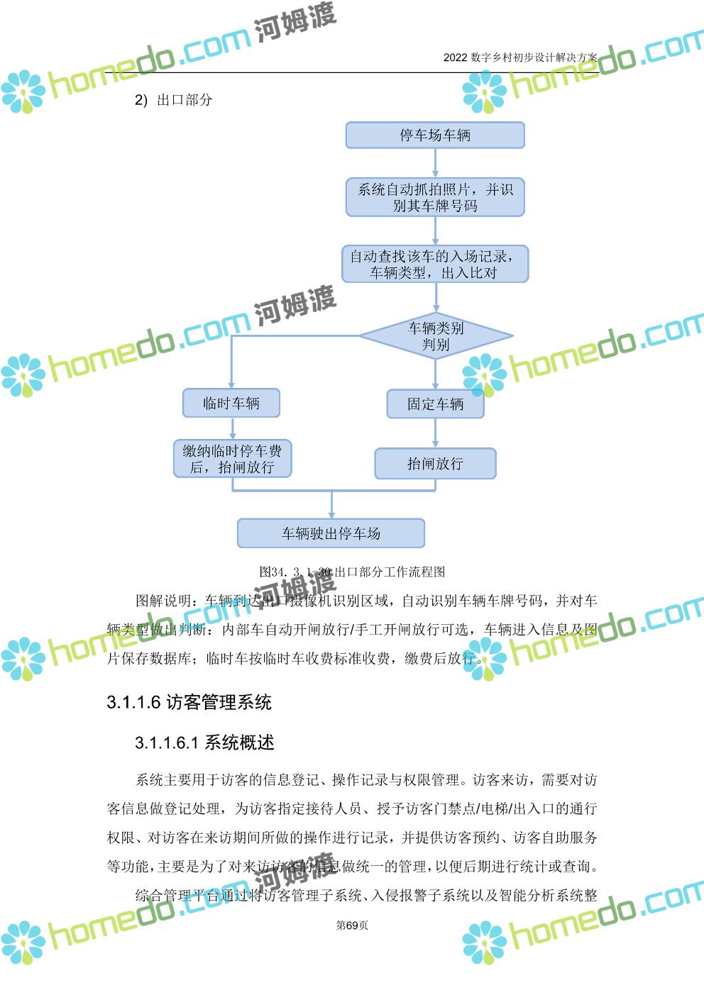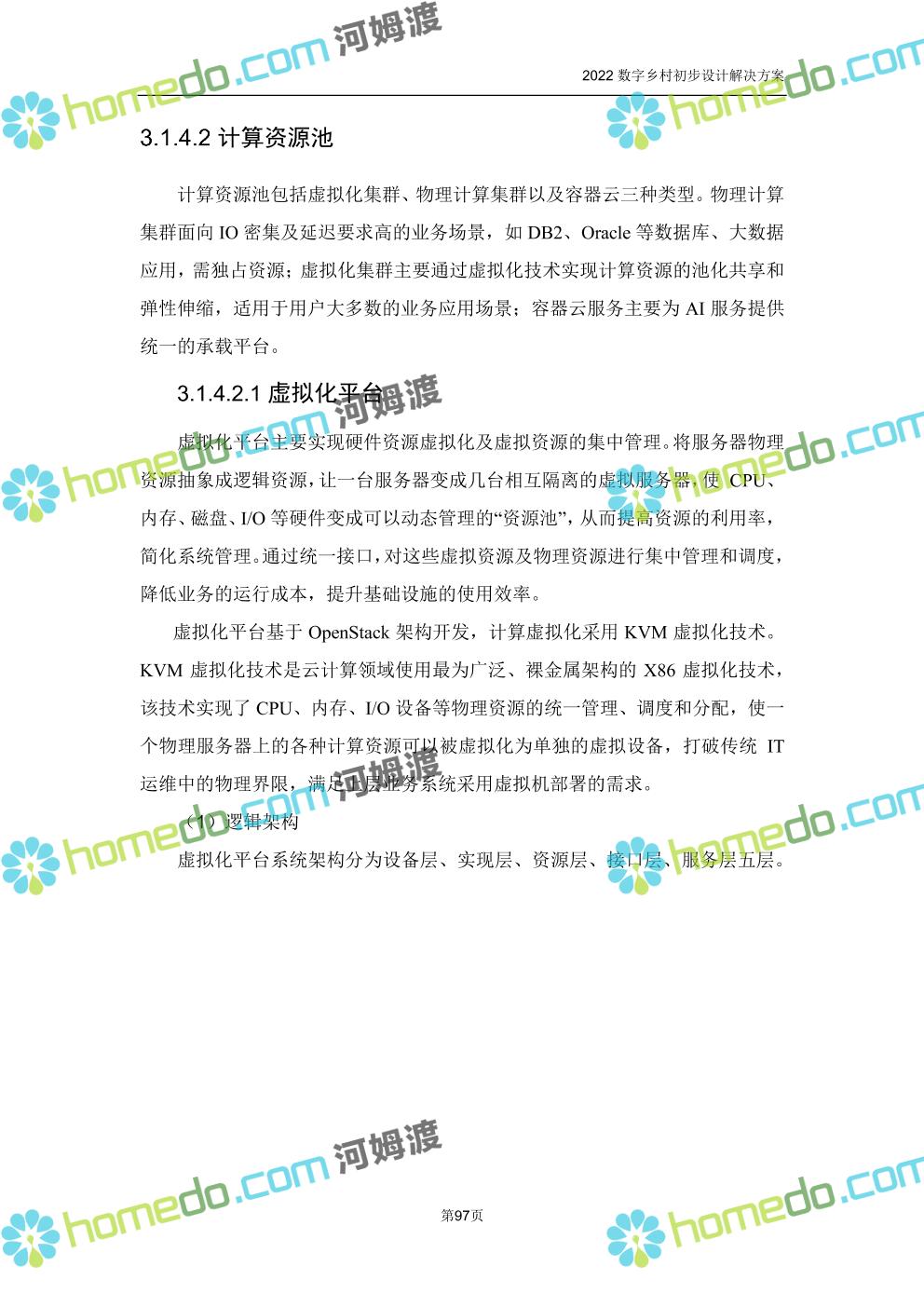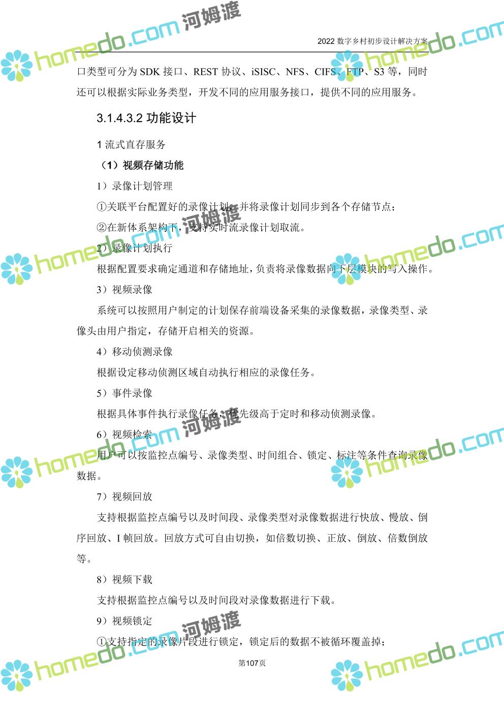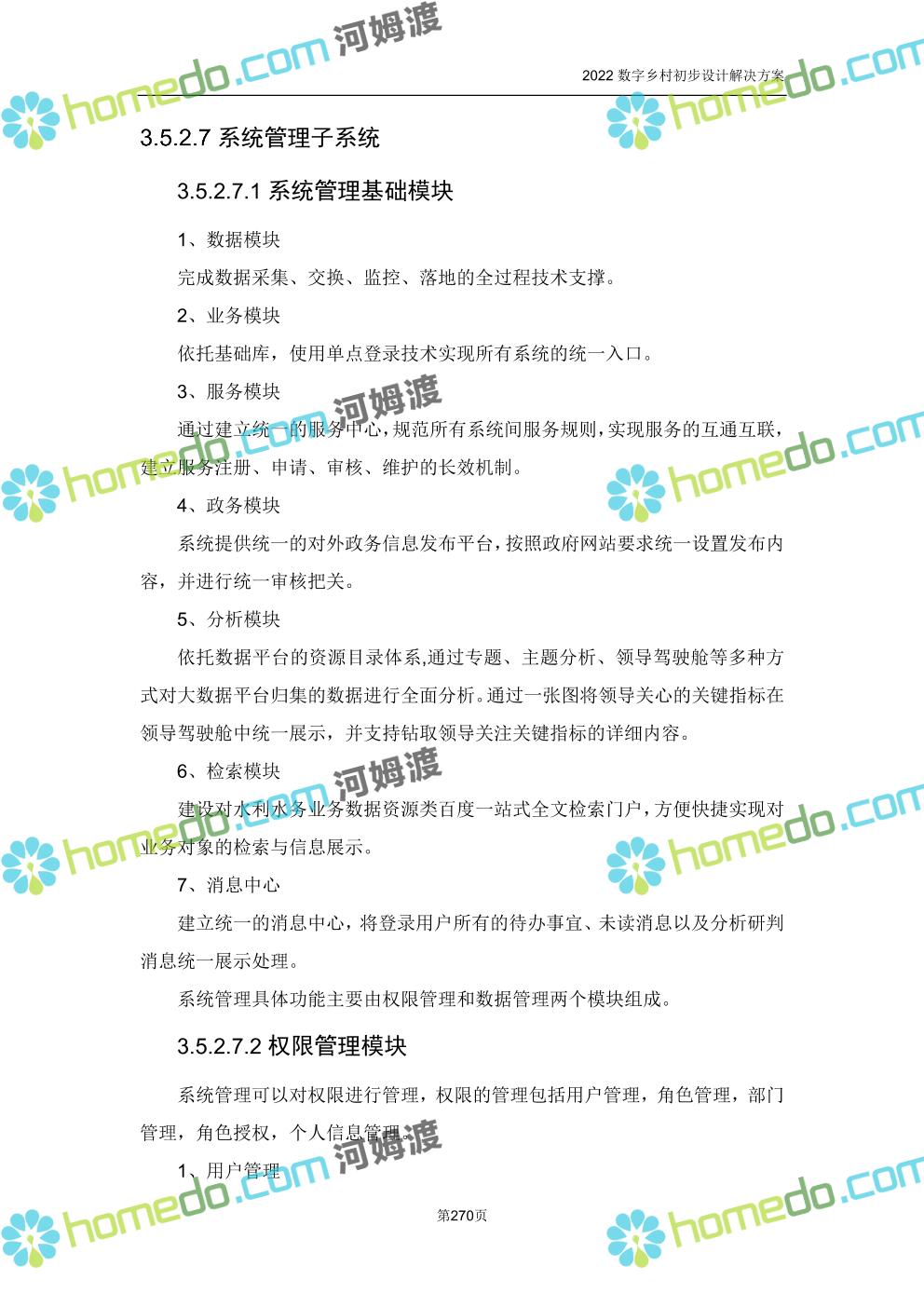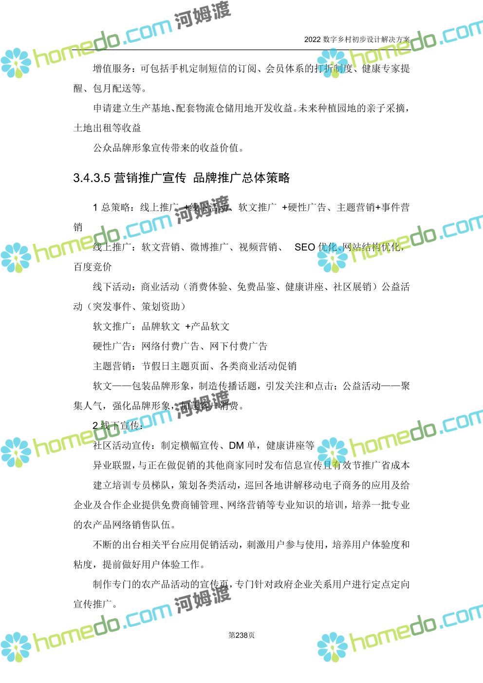 方案简介 依托全市农业农村大数据中心建设为中心,建设农业农村管理决策系统:建 设农产品全产业链监测预警系统:建设数字农业农村服务系统:建设农村人居环 境智能监测系统;建设乡村数字治理系统。 完成数字乡村信息化基础设施建设,包括前端感知设备、网络传输构建、机 房构建、数字乡村云搭建、数字乡村运营指挥中心建设。完成数字乡村管理者驾 驶舱建设,包括农业农村管理决策系统、数字乡村运营系统。完成数字乡村会客 厅建设。完成数字农业农村系统建设,完成数字农业农村服务系统建设。完成农 村人居环境智能监测系统建设。完成基础数据资源建设,完成数字乡村四大体系 建设。