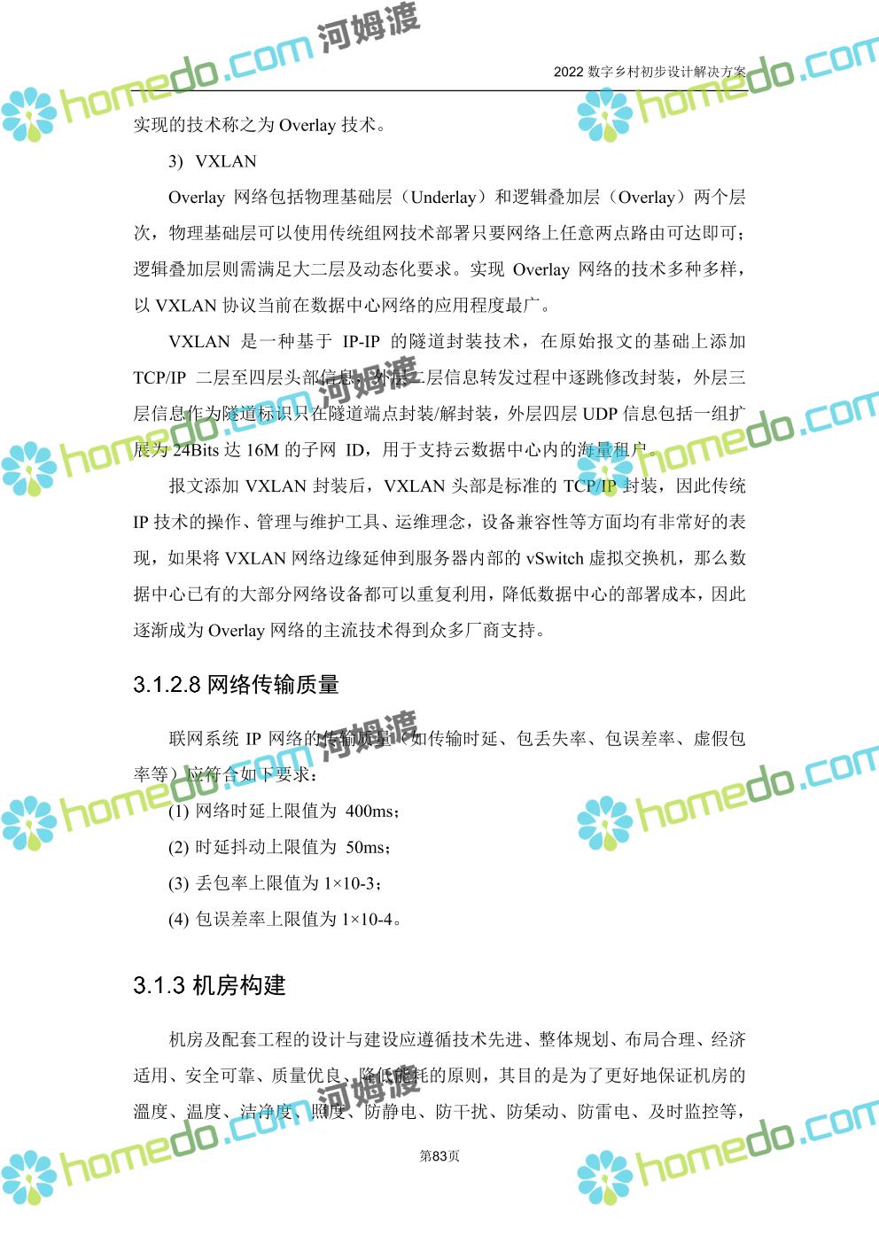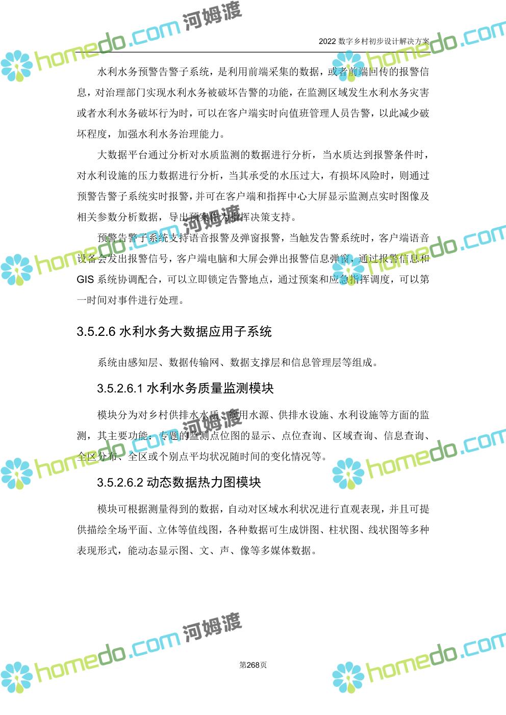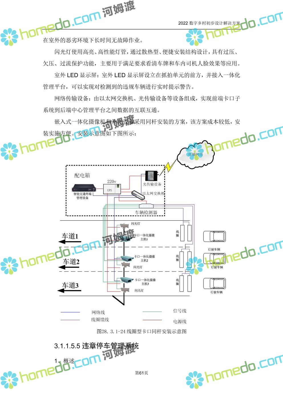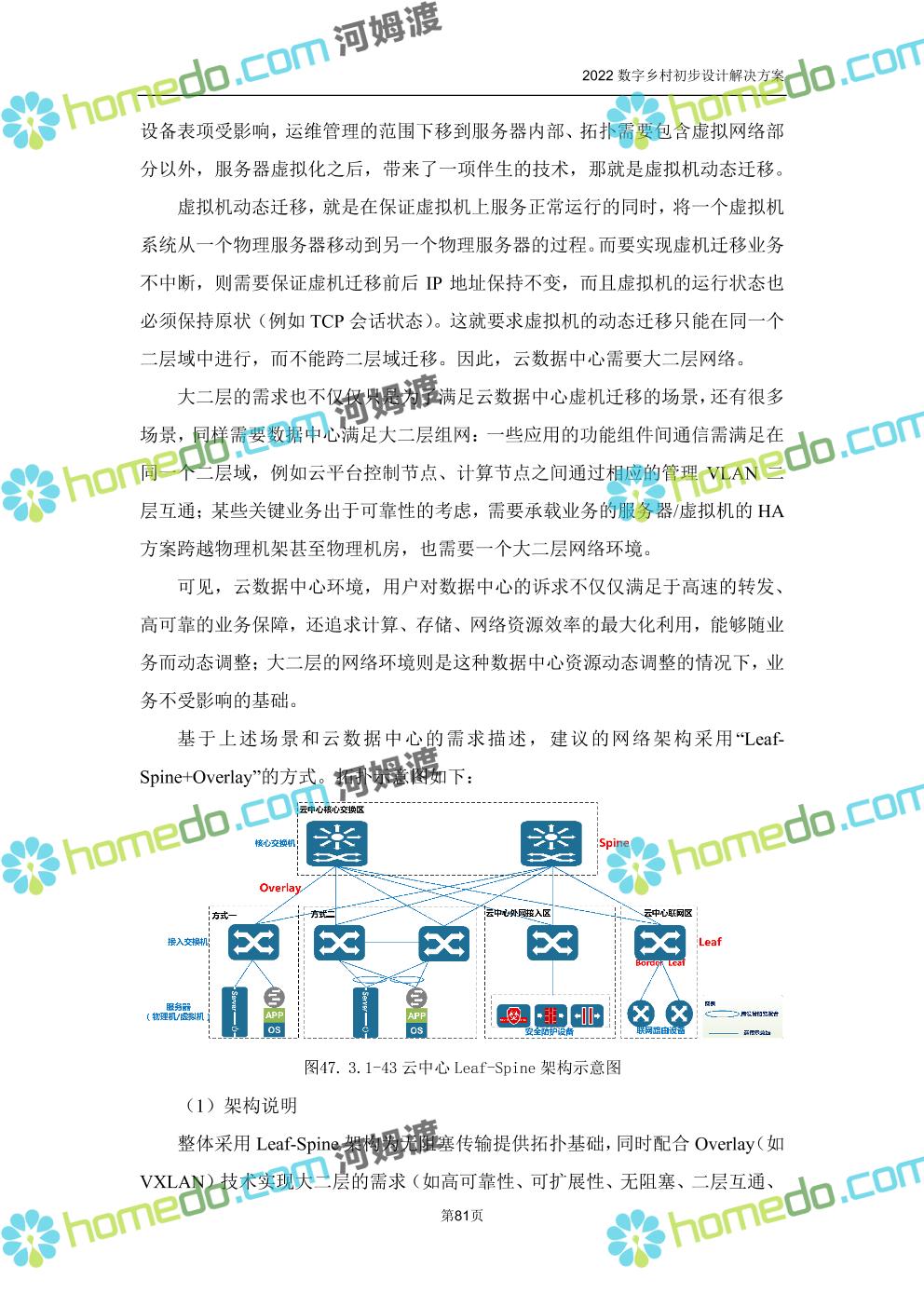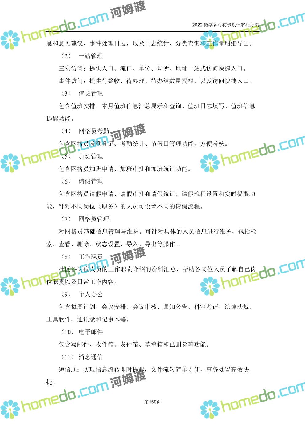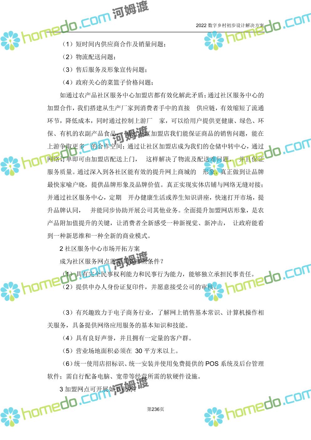 方案简介 依托全市农业农村大数据中心建设为中心,建设农业农村管理决策系统:建 设农产品全产业链监测预警系统:建设数字农业农村服务系统:建设农村人居环 境智能监测系统;建设乡村数字治理系统。 完成数字乡村信息化基础设施建设,包括前端感知设备、网络传输构建、机 房构建、数字乡村云搭建、数字乡村运营指挥中心建设。完成数字乡村管理者驾 驶舱建设,包括农业农村管理决策系统、数字乡村运营系统。完成数字乡村会客 厅建设。完成数字农业农村系统建设,完成数字农业农村服务系统建设。完成农 村人居环境智能监测系统建设。完成基础数据资源建设,完成数字乡村四大体系 建设。