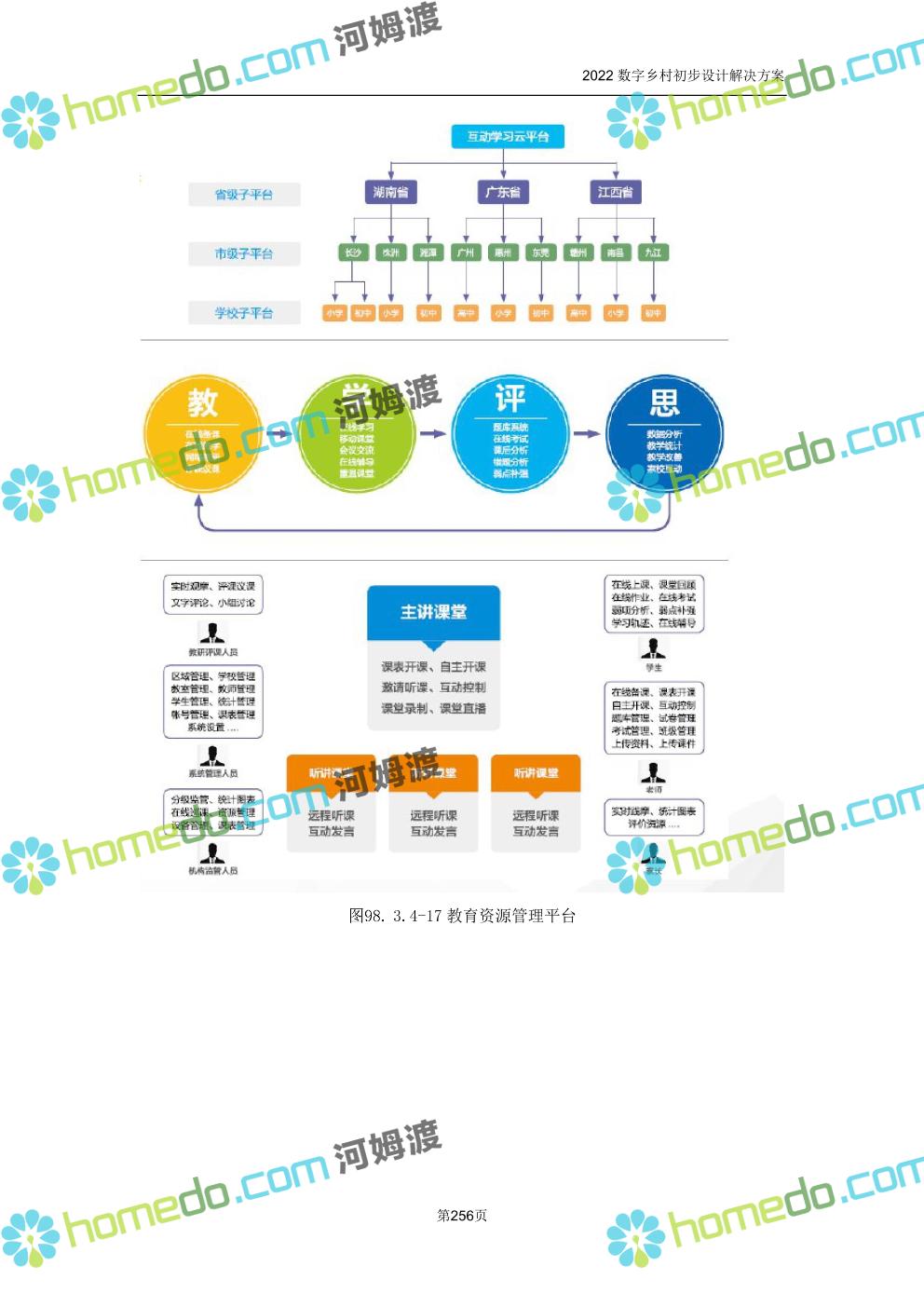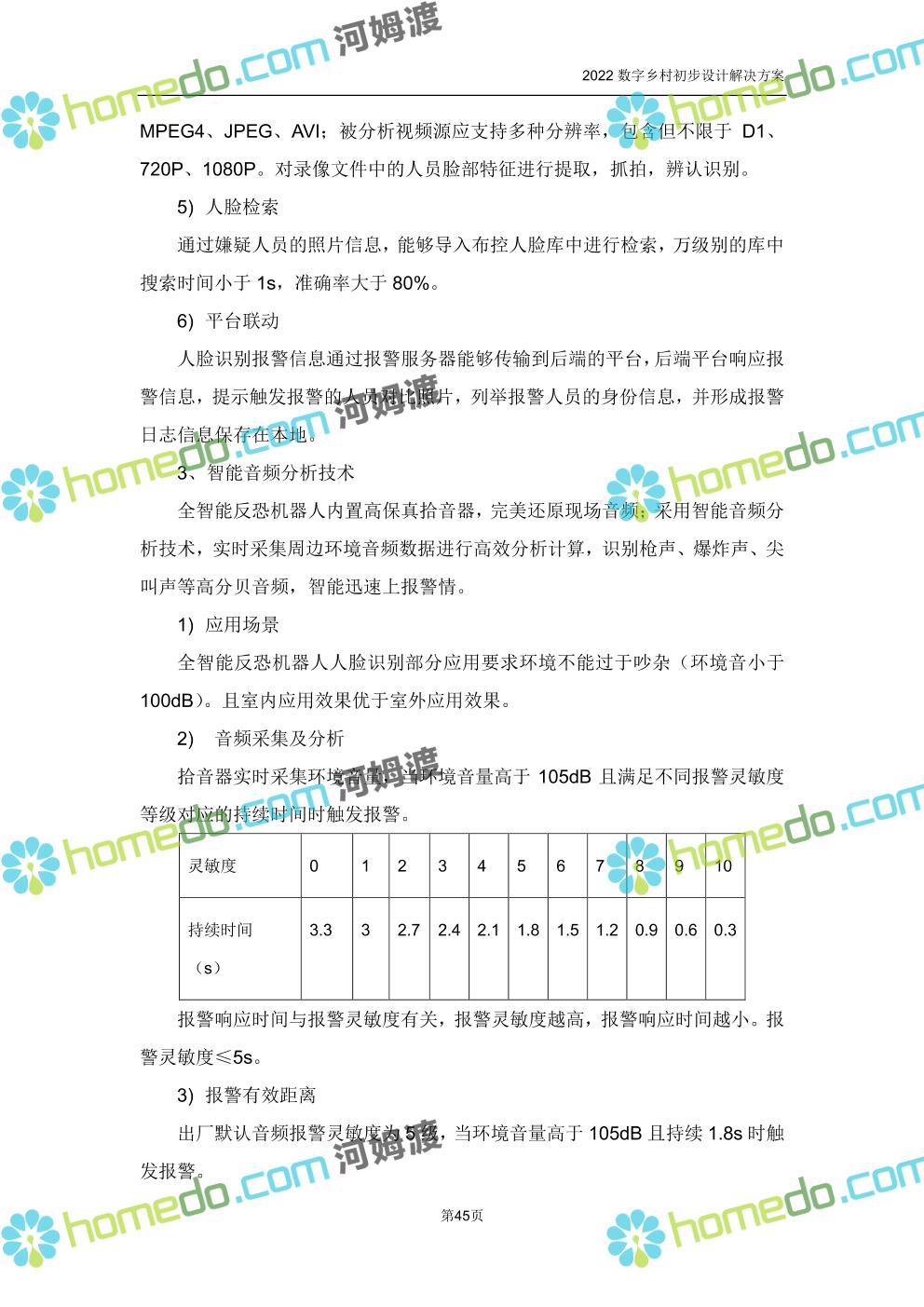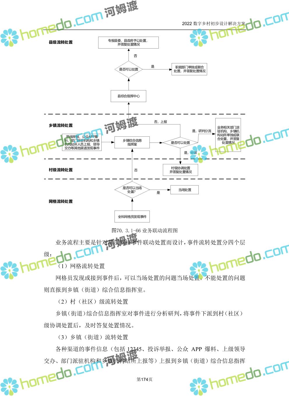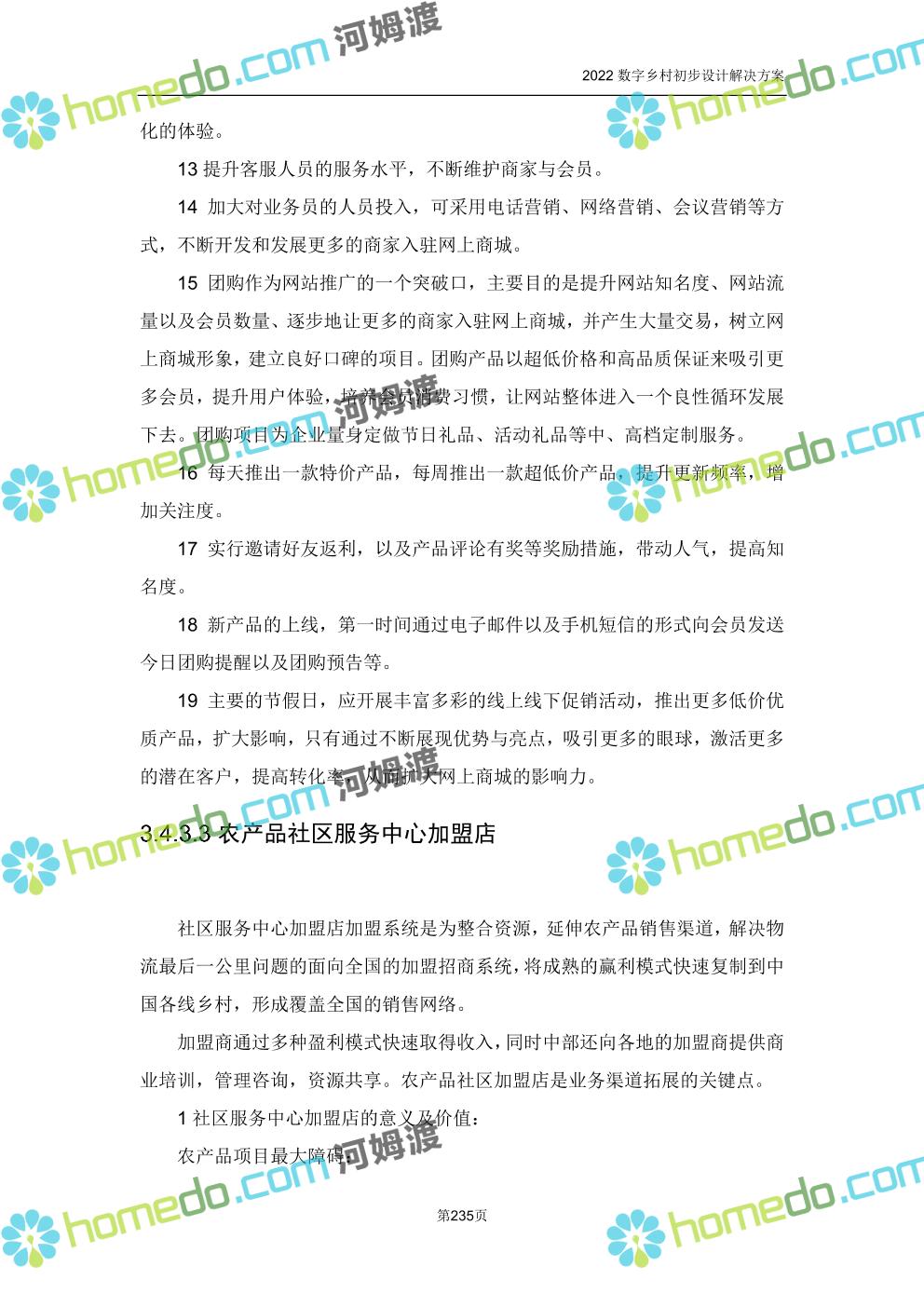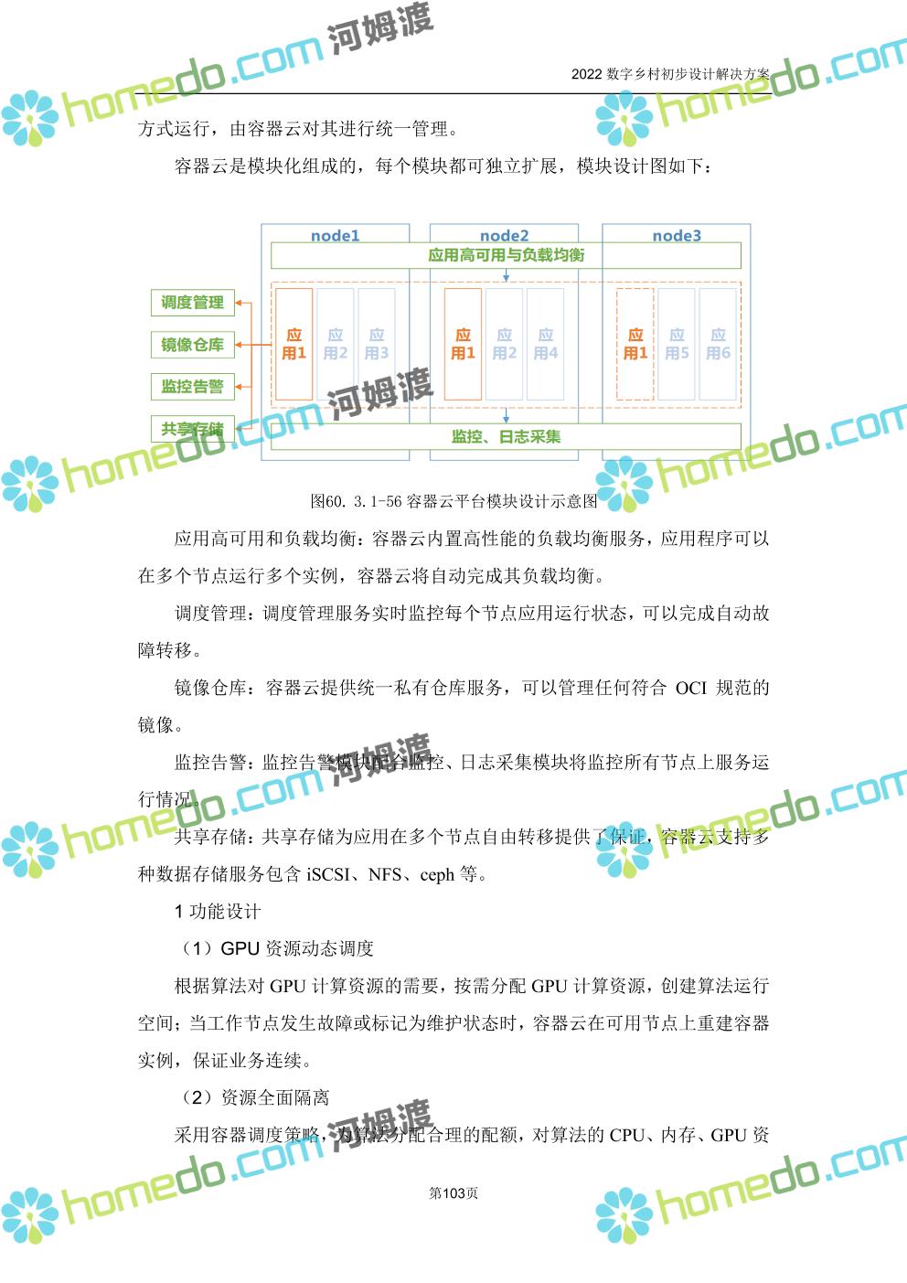 方案简介 依托全市农业农村大数据中心建设为中心,建设农业农村管理决策系统:建 设农产品全产业链监测预警系统:建设数字农业农村服务系统:建设农村人居环 境智能监测系统;建设乡村数字治理系统。 完成数字乡村信息化基础设施建设,包括前端感知设备、网络传输构建、机 房构建、数字乡村云搭建、数字乡村运营指挥中心建设。完成数字乡村管理者驾 驶舱建设,包括农业农村管理决策系统、数字乡村运营系统。完成数字乡村会客 厅建设。完成数字农业农村系统建设,完成数字农业农村服务系统建设。完成农 村人居环境智能监测系统建设。完成基础数据资源建设,完成数字乡村四大体系 建设。