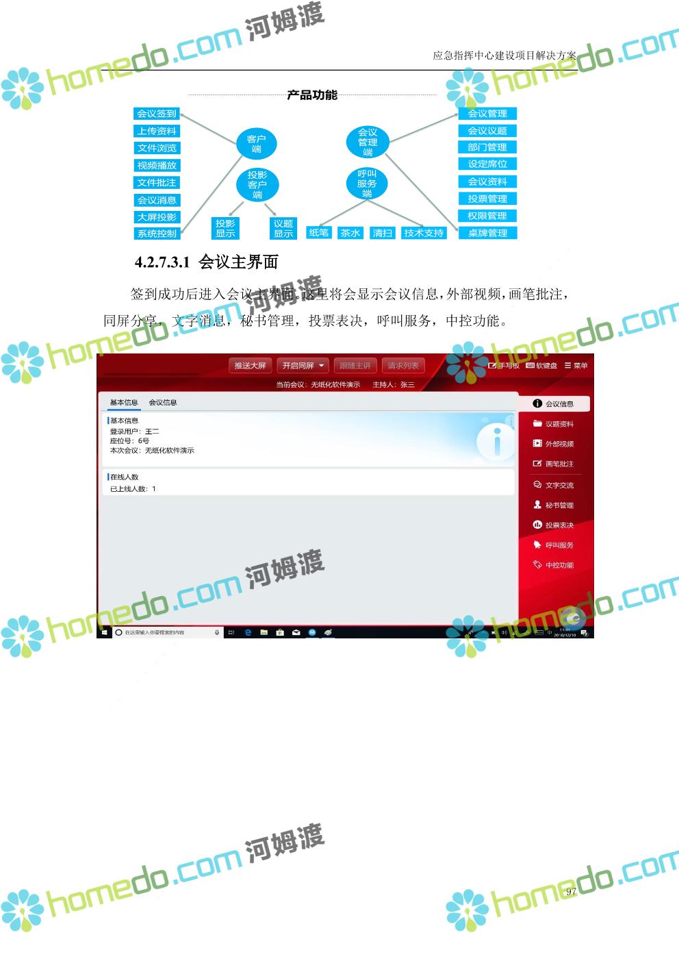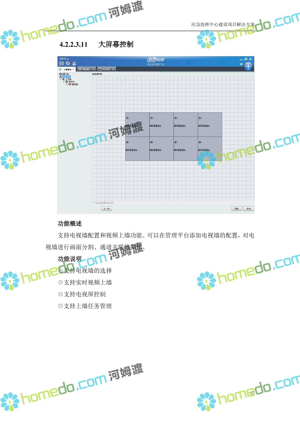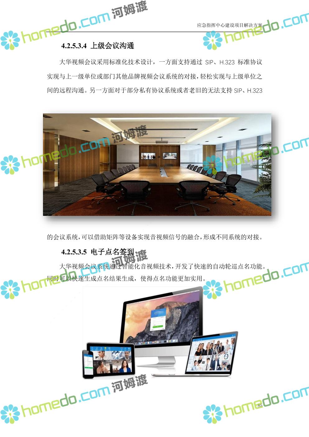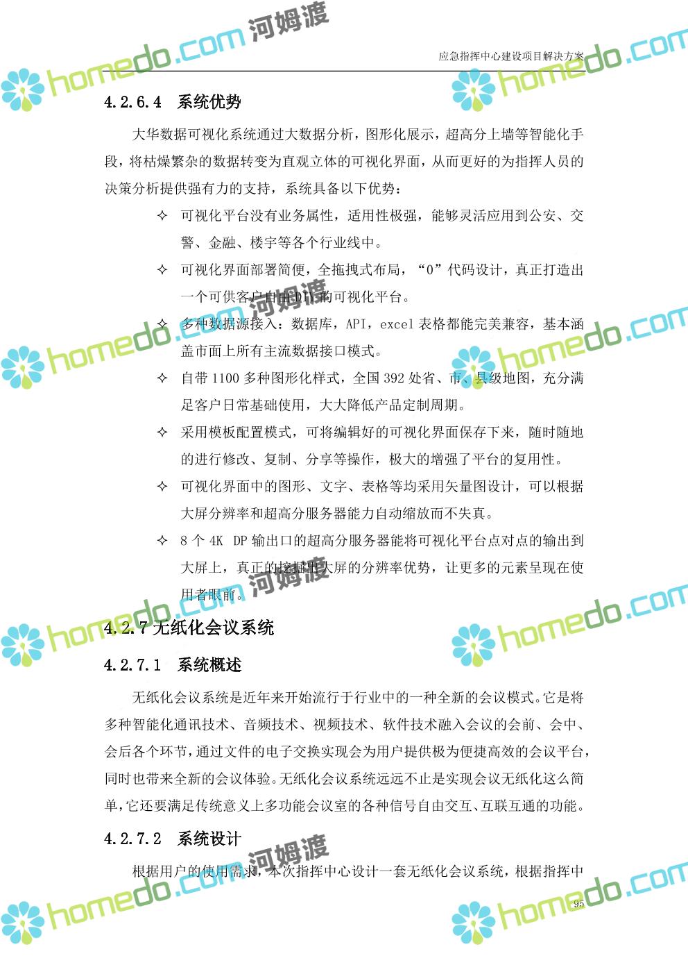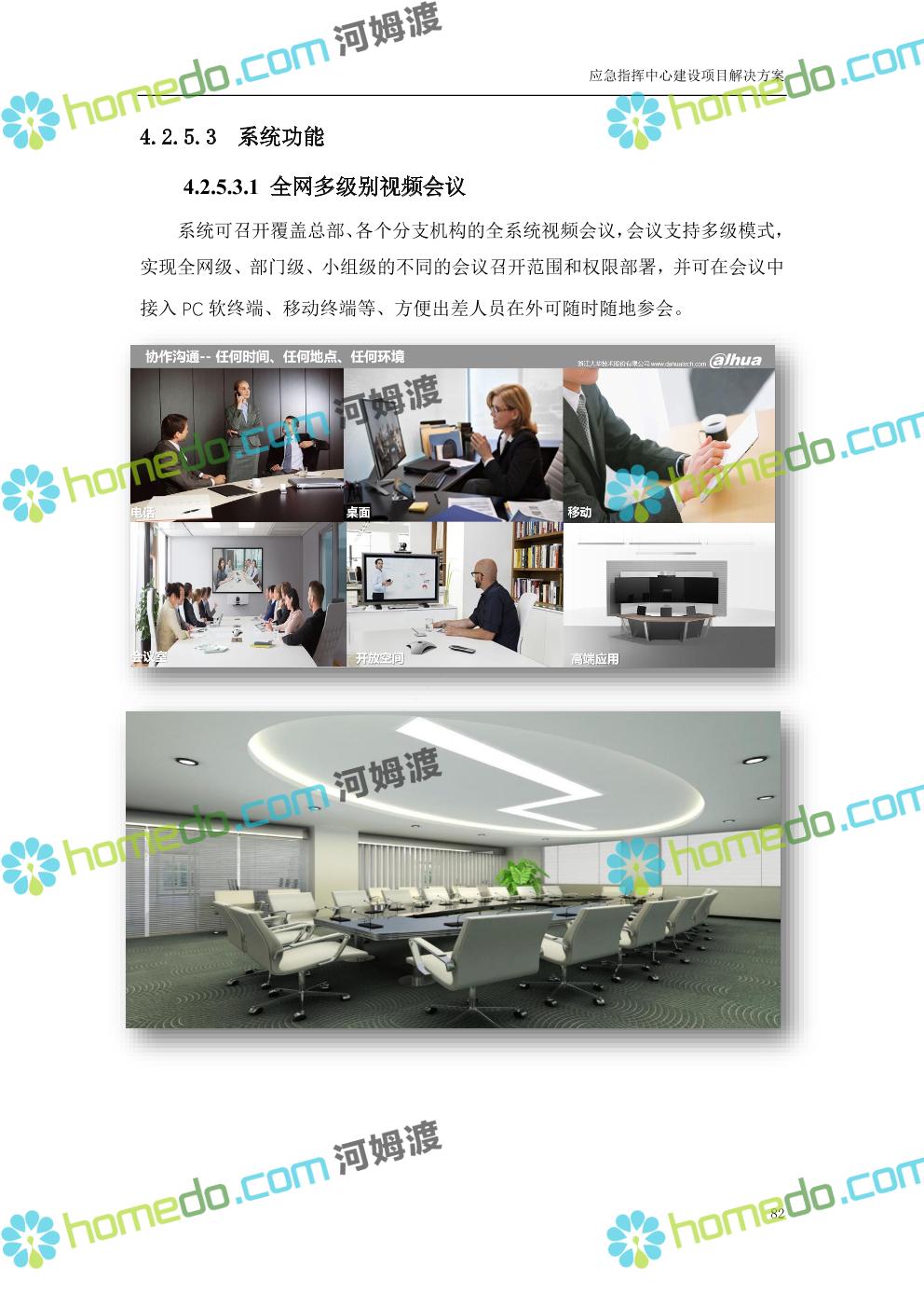 方案简介 根据指挥中心的实际需要,在指挥中心各个功能区部署大屏显示、音响扩声、融合通信、坐席管理、集中控制、视频会商、数据可视化及无纸化会议等设备,依托3G/4G、IP、PSTN等网络汇聚前端音视频资源,通过融合通信系统进行统一调度,将各类资源在指挥中心大屏展示。