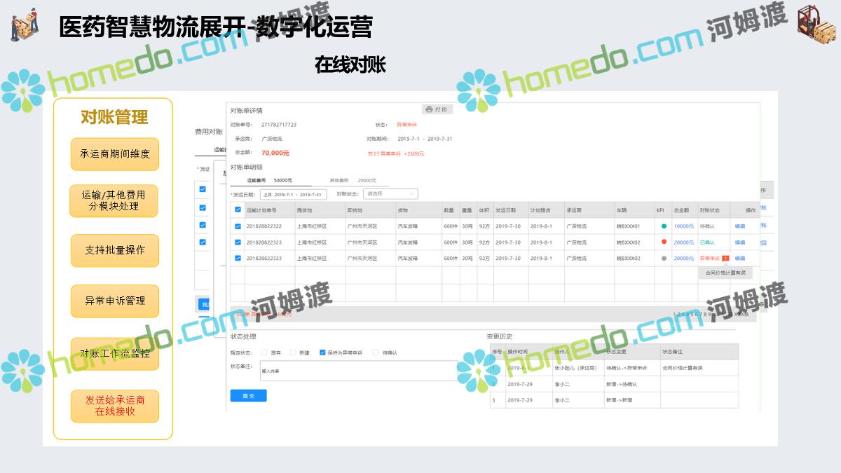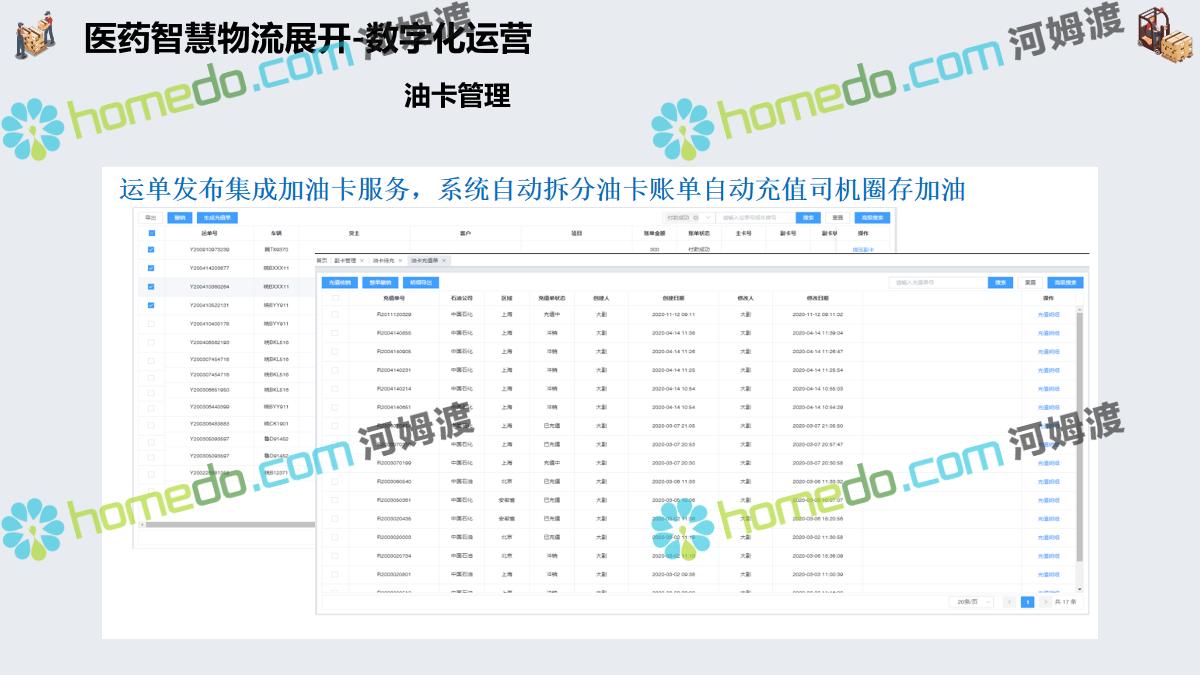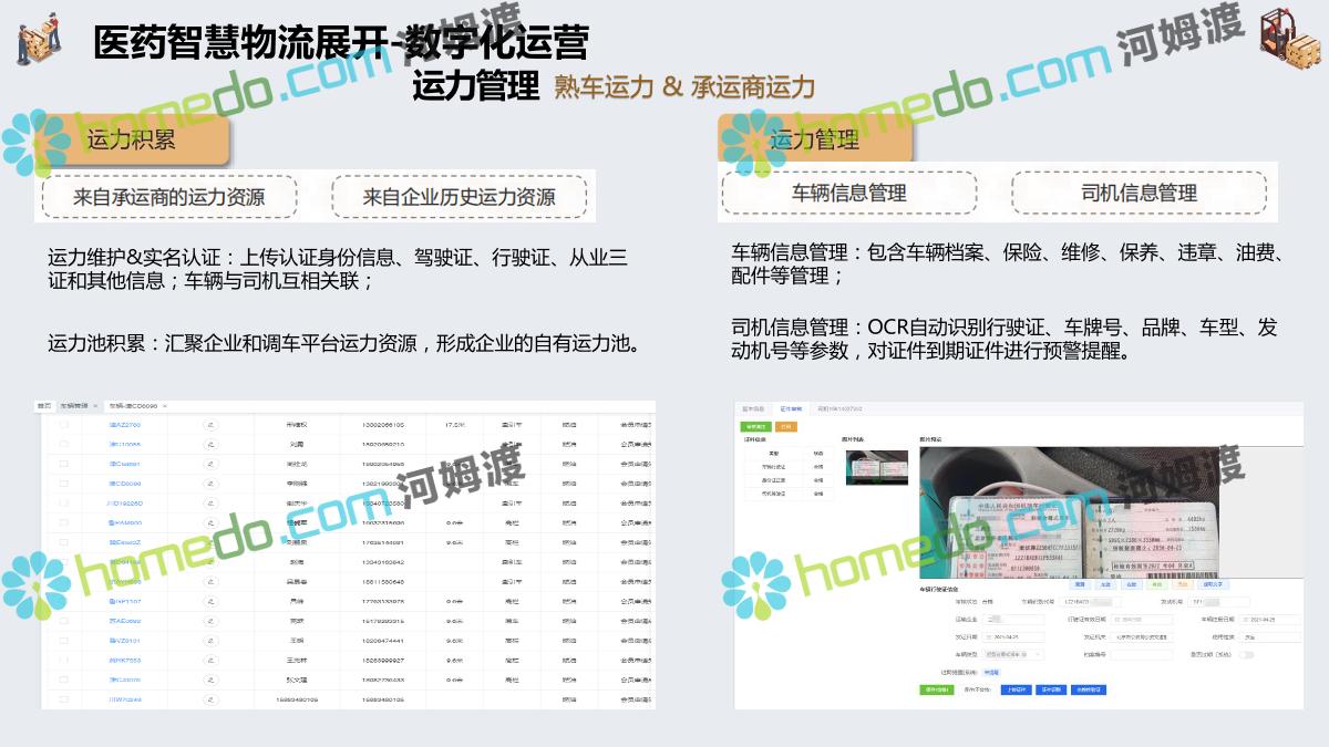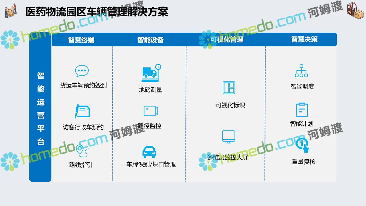 方案简介 集成管理:运输为核心,集成“运力集采、可视化调车、订单拆合、在途追踪、线上结算、智能预警”等核心业务功能。 业务协同:互联互通、仓运配协同。减少业务流程中人工成本、纸质成本。全流程信息化可以帮助企业实现供应链管理的自动化 在途监控:运输全程监控。北斗定位 + GPS定位 + LBS定位+ 三方定位服务商。自定义定位计划,可按照业务要求指定定位频率和渠道。 高效结算:自动计费,在线对账。提高对账效率,降低对账成本,减少对账差错,提高资金周转率。 数据分析+智能预警:以数据为基础、以场景为导向,提升系统的数据洞穿能力,保障产品功能的可靠性、业务的安全性。