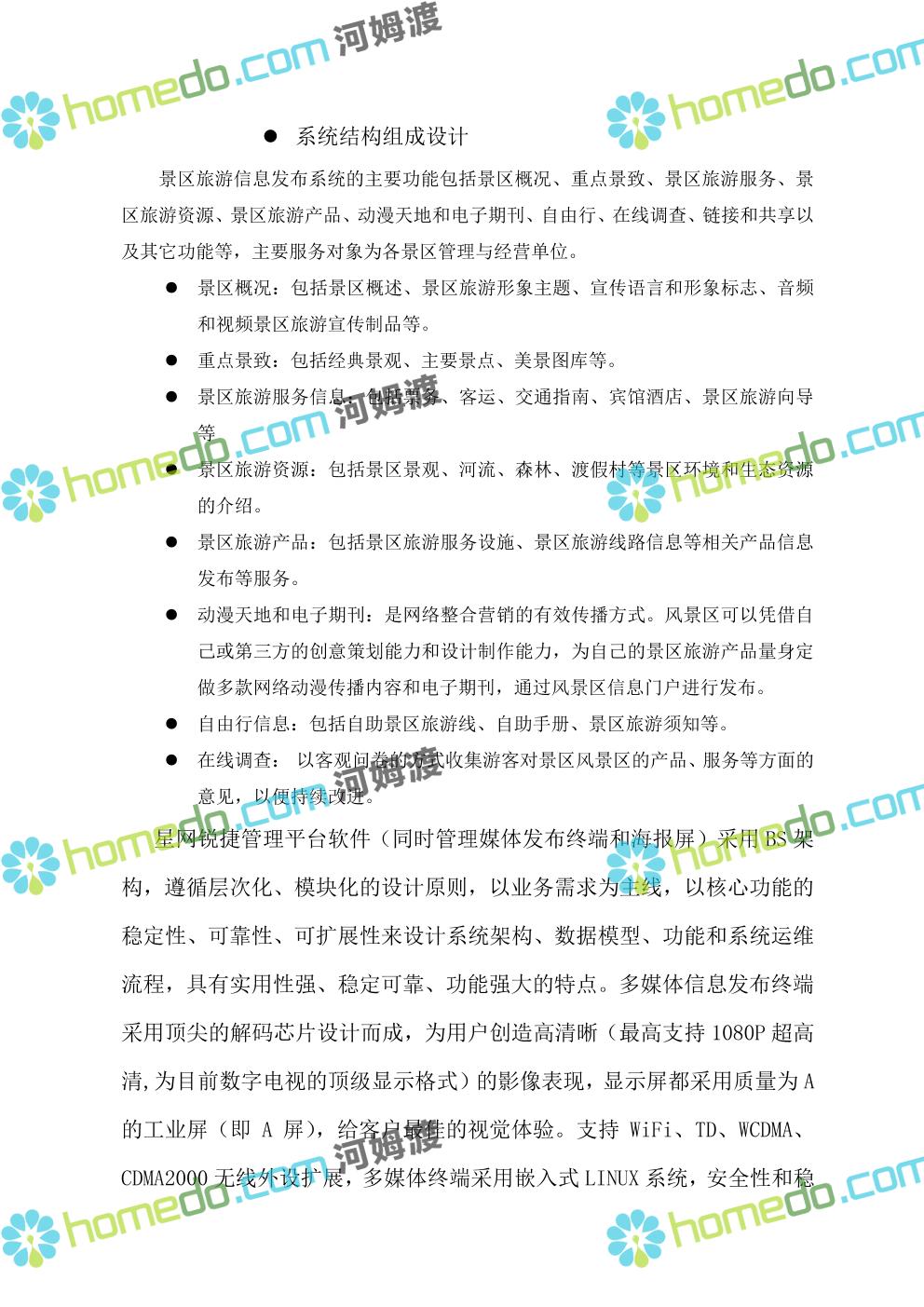 方案简介 智慧景区旅游建设对于全面整合景区旅游资源,提升景区旅游产业发展能级,进一步增强景区旅游业的核心竞争力具有十分重要的支撑作用。是实施国家“金旅工程”,全面推进景区旅游信息化建设实现跨越式发展的关键项目和基础工程,它涵盖了“三网一库”以及政务网站、电子商务网站等用户交互界面构成