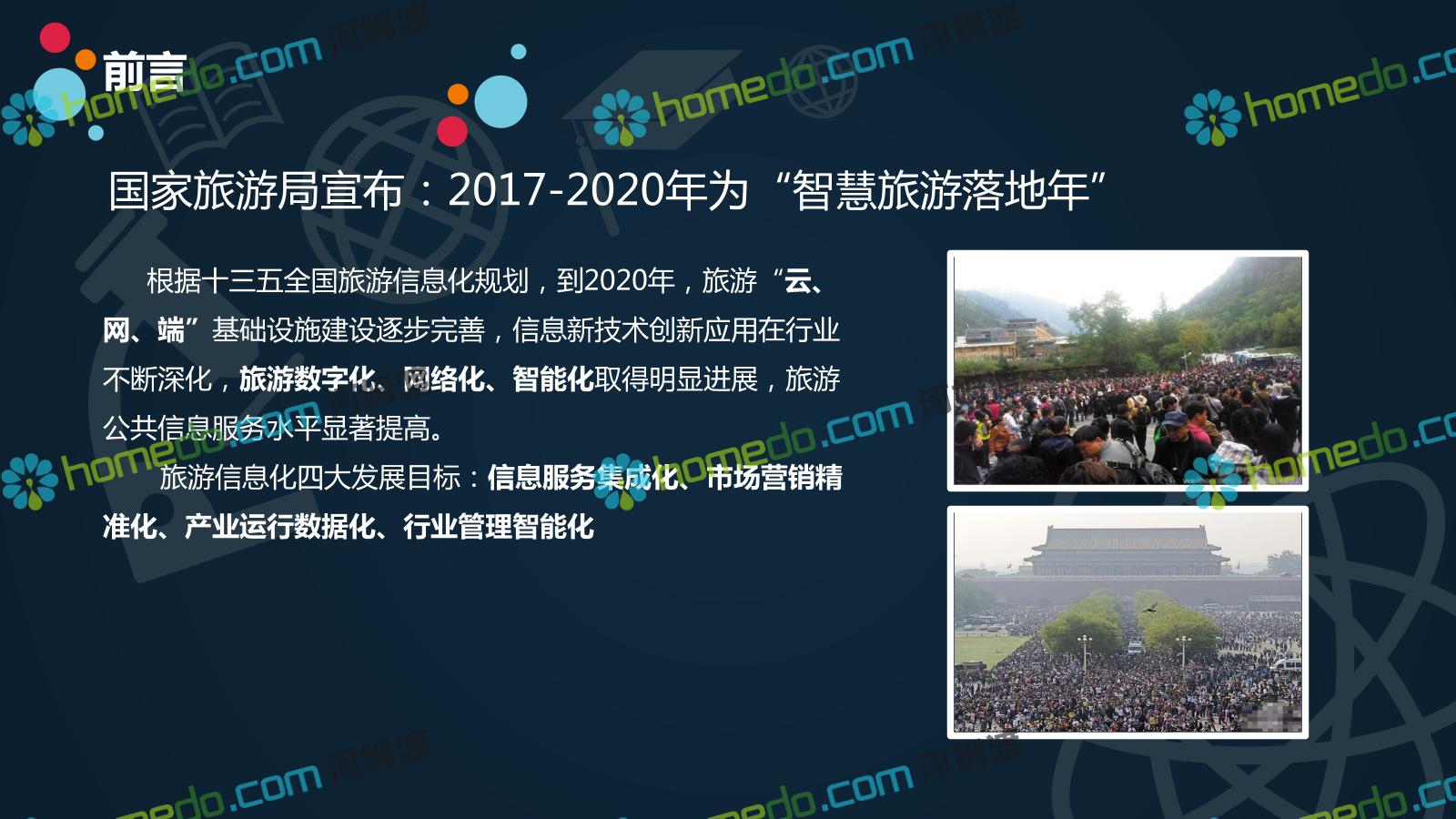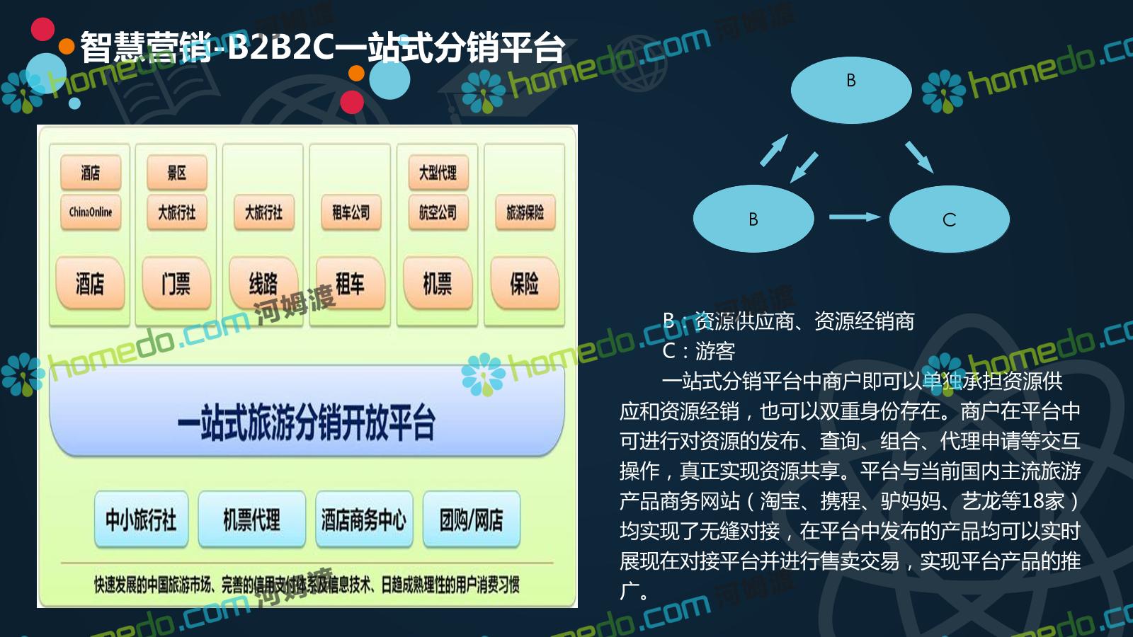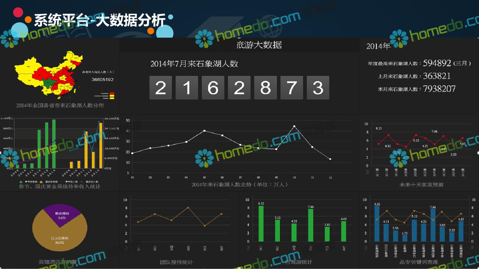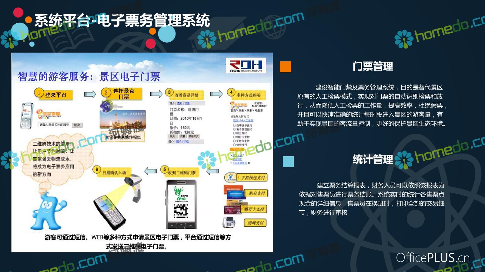 方案简介 平台 ·构建景区综合业务管控平台 •构筑总体战略和政策管控、传递、反馈平台资源 ·实现人力、客户、供应商、产品的统一管理和应用 ·实现景区车辆、停车场、监控点等核心资源的统一管理 营销 ·构筑统一的代理商销售渠道、信用体系管理(B2B) •构筑统一的散客销售、预订管理(B2C) 运营 ·为各部门的工作人员提供业务和办公协同作业平台 ·实现各部门业务和财务数据的充分共享 ·经营计划与执行结果分析 决策 ·多维业务分析 ·打造景区大数据中心、量化需求、精准管控