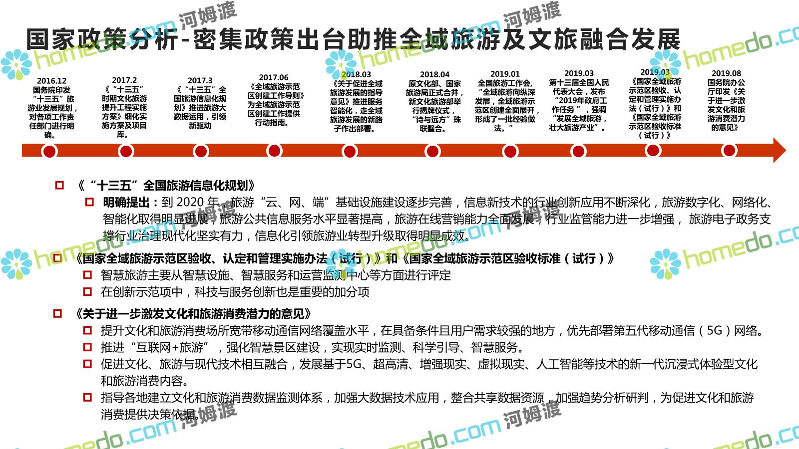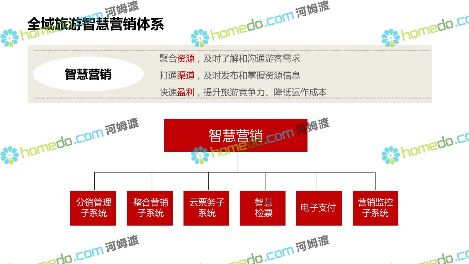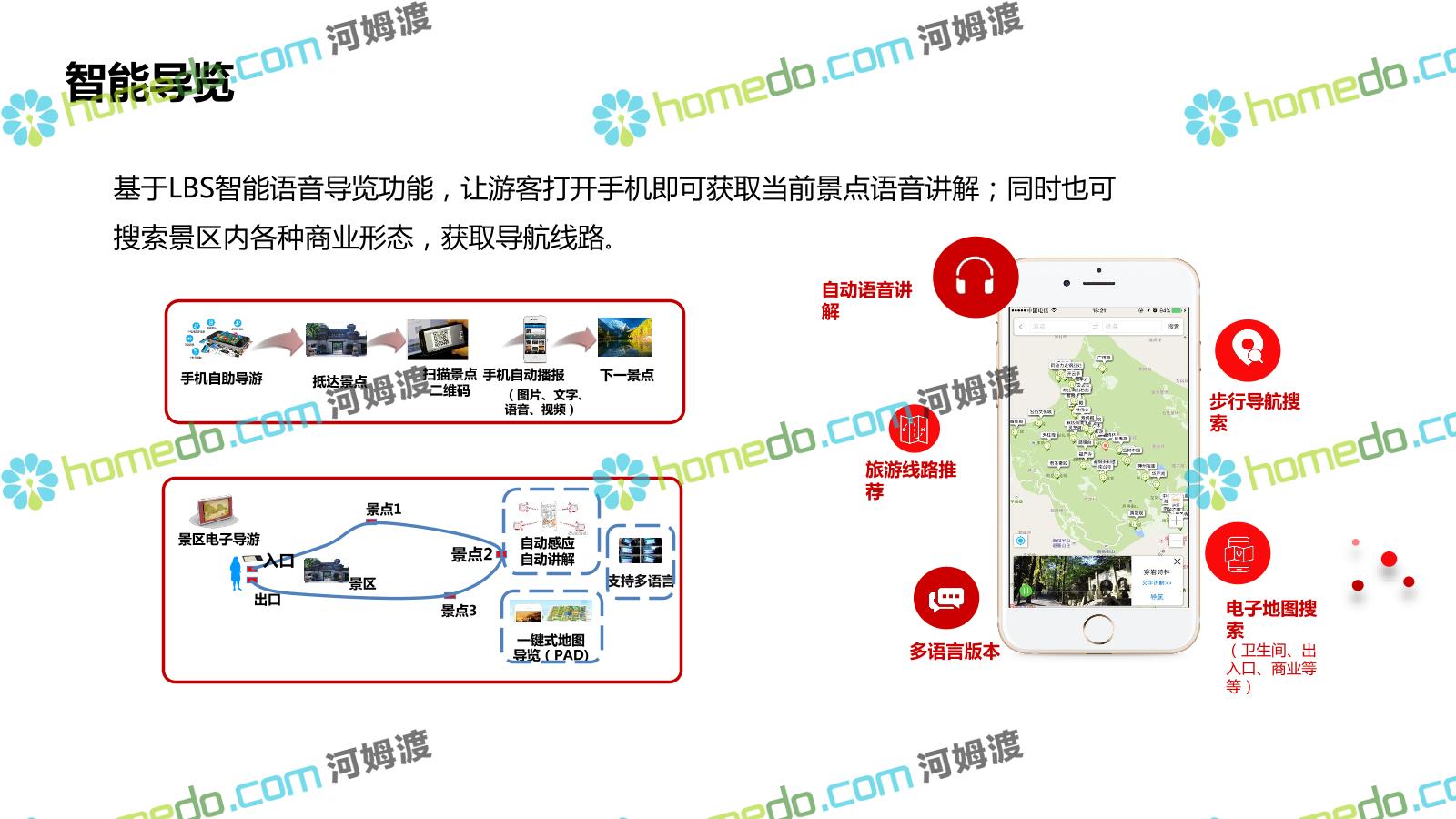 方案简介 利用云计算、物联网等新技术,通过互联网/移动互联网,借助便携的终端上网设备,主动感知旅游资源、旅游经济、旅游活动、旅游者等方面的信息,及时发布,让人们能够及时了解这些信息,及时安排和调整工作与旅游计划,从而达到对各类旅游信息的智能感知、方便利用的效果。 “智慧旅游”的推广,将提升游客在食、住、行、游、购、娱每个旅游消费环节中的附加值;旅游者在旅游前、旅游中、旅游后,都能够轻松地获取资讯、规划出行、预订票务、安排食宿、消费支出等,极大改善旅游体验。