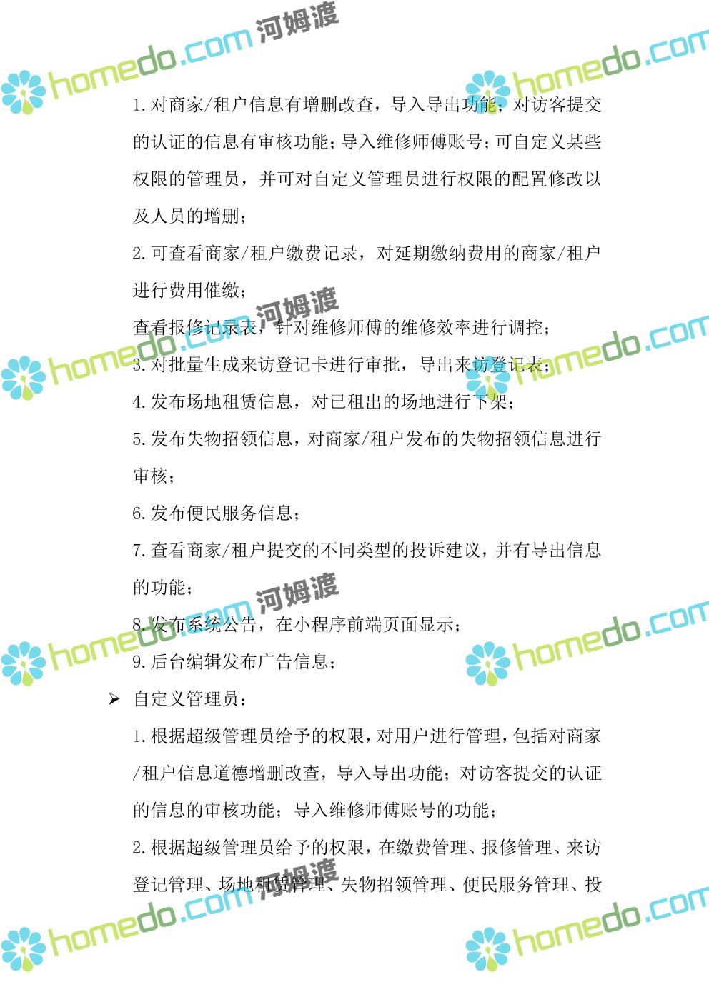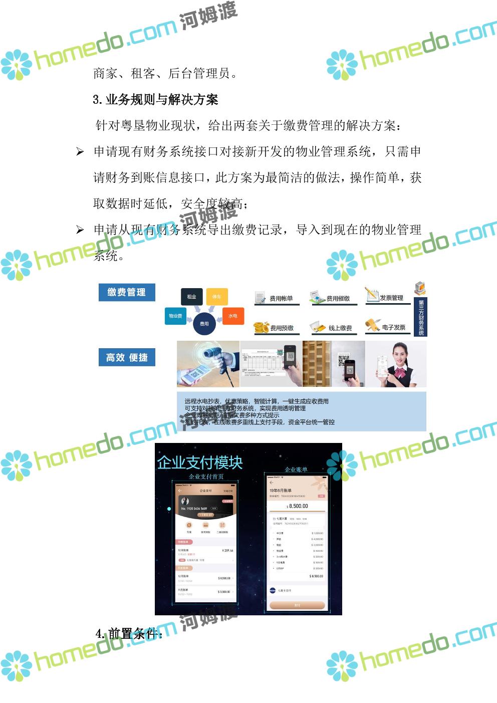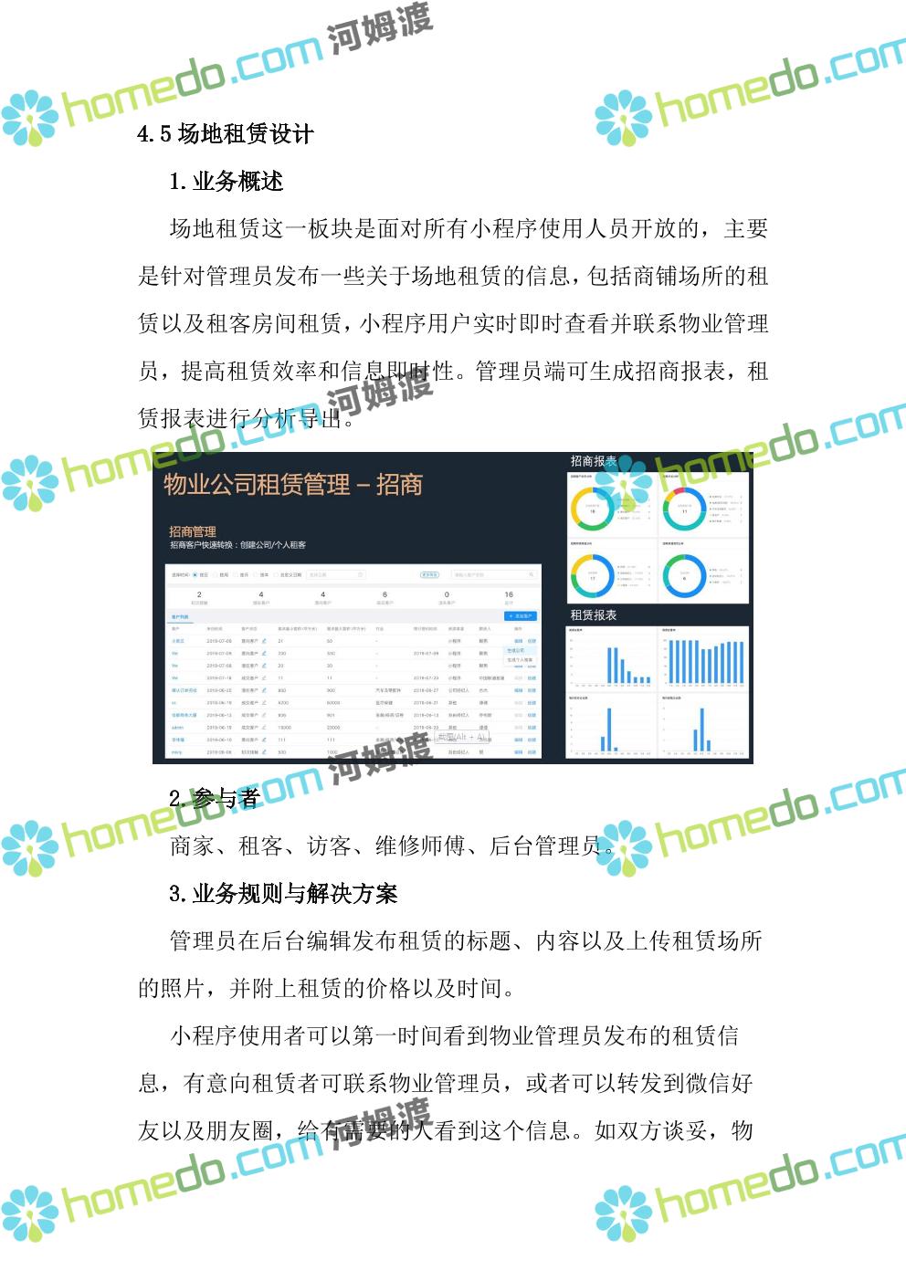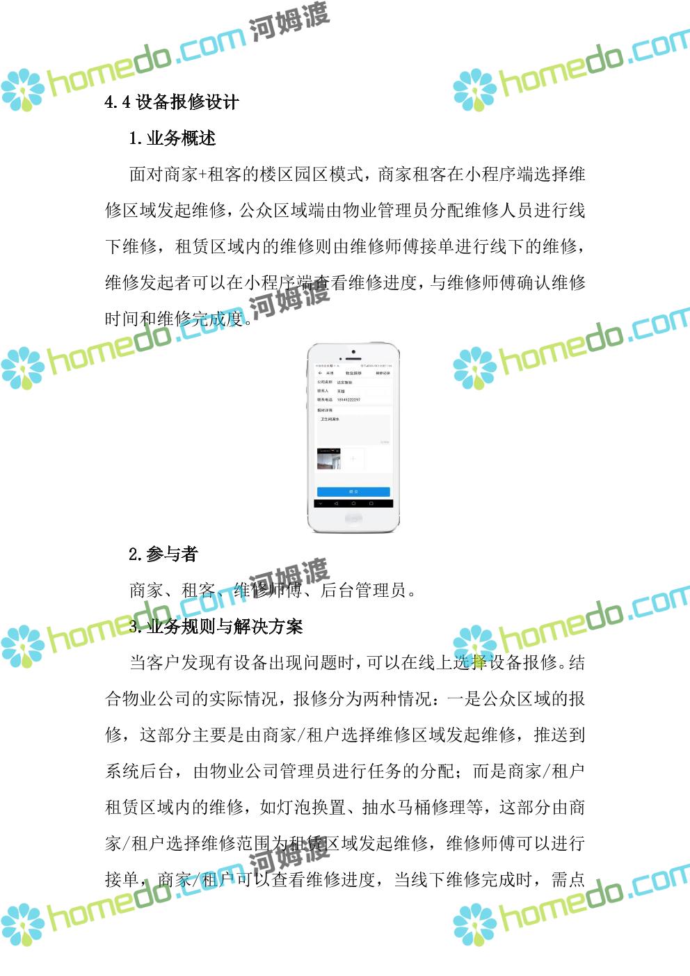 方案简介 (1)构建园区统一移动支付工具入口:商家以及租客对于楼宇园区内的水电费、管理费、停车费等费用缴纳能够通过统一的支付入口进行缴纳,抛弃了传统人工缴纳的不便。同时后台管理人员可以根据缴纳记录,对于逾期缴纳的商家以及租客进行费用催收。 (2)打造安全便捷来访路径:由小程序端生成访客信息二维码对接门禁系统进行访客的来访登记,既加强了楼宇园区的安全管理及信息化管理,又省去老人小孩对于来访流程的操作,对于企业来访人员还可以批量生成访客卡。 (3)建立线上线下维修服务:商家以及租客由小程序端从发起报修、查看进度、支付费用;维修师傅接单并上门维修;平台根据维修师傅效率从中调控。