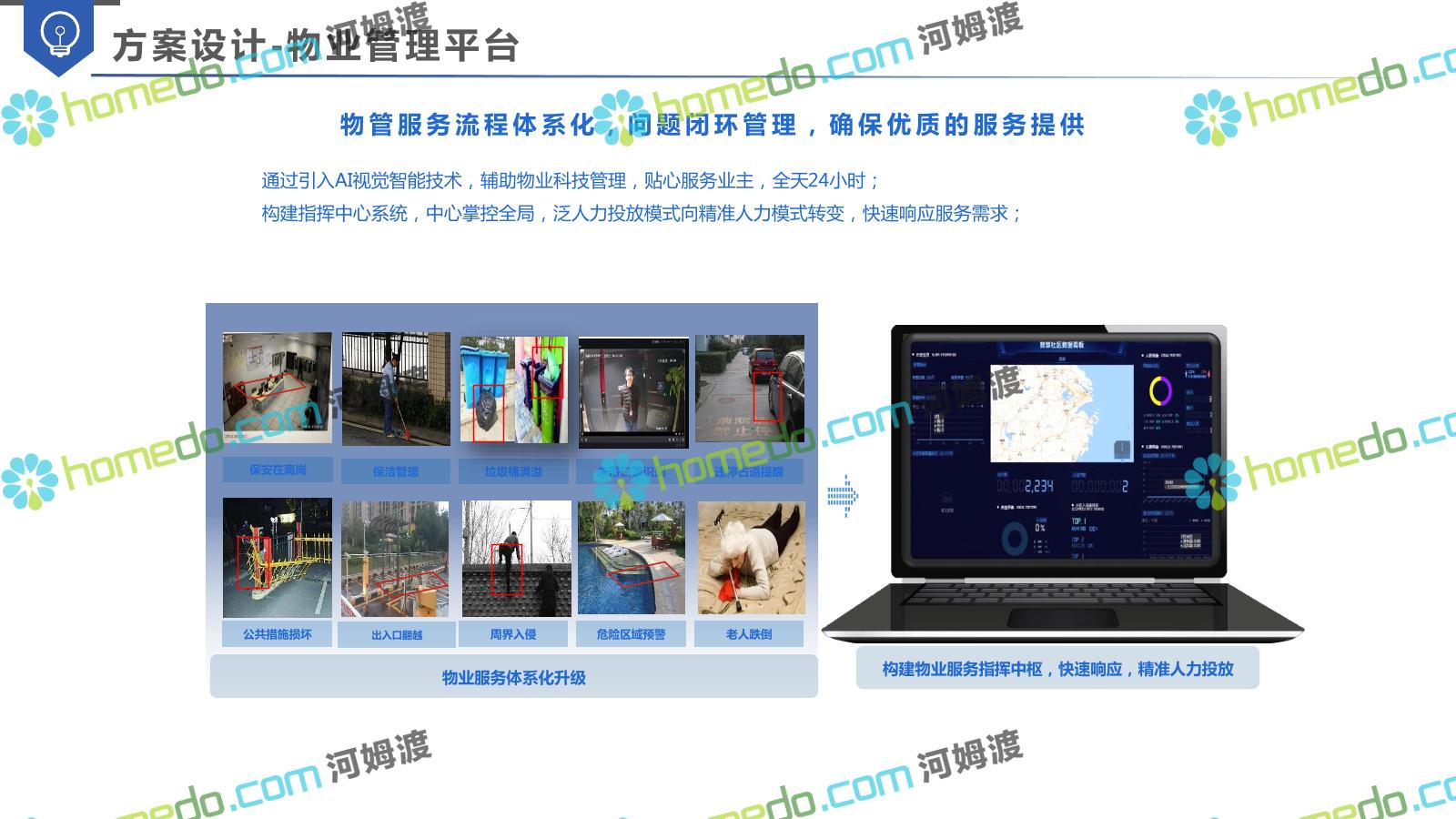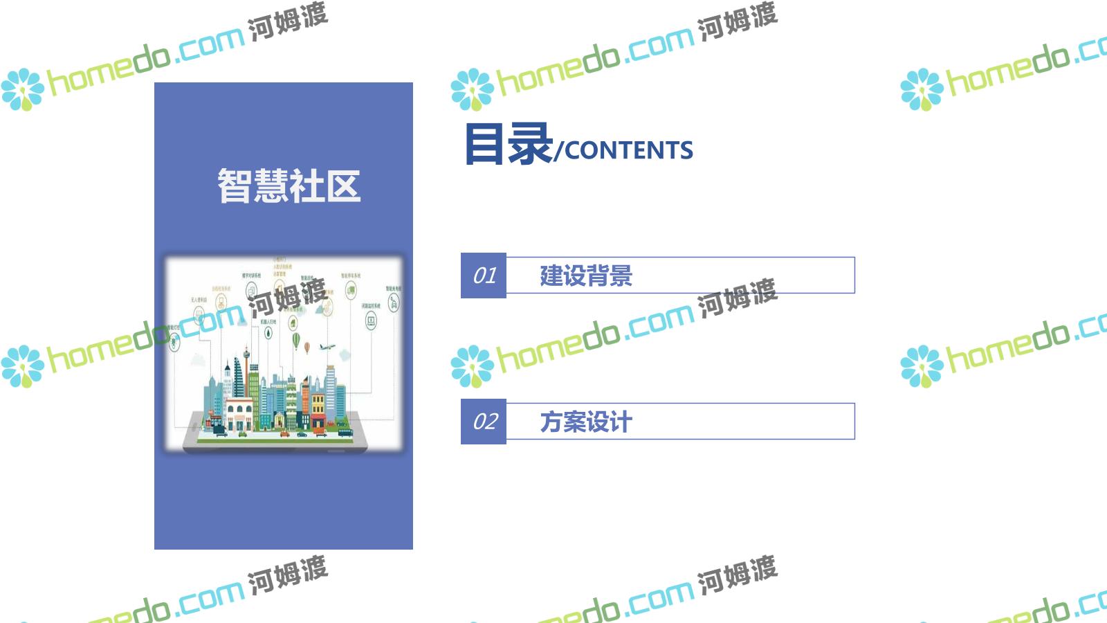 方案简介 智慧社区是社区管理的一种新理念,是新形势下社会管理创新的一种新模式。智慧社区是指充分利用物联网、云计算、移动互联网等新一代信息技术的集成应用,为社区居民提供一个安全、舒适、便利的现代化、智慧化生活环境,从而形成基于信息化、智能化社会管理与服务的一种新的管理形态的社区
