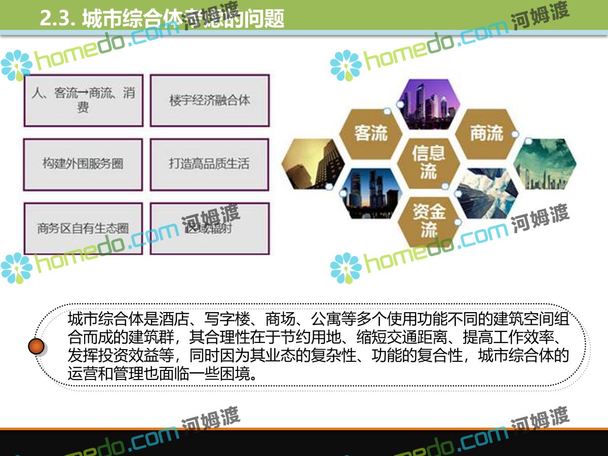 方案简介 城市综合体是酒店、写字楼、商场、公寓等多个使用功能不同的建筑空间组合而成的建筑群,其合理性在于节约用地、缩短交通距离、提高工作效率、发挥投资效益等