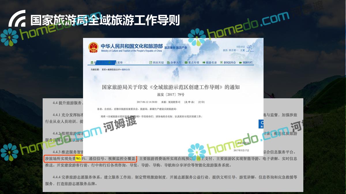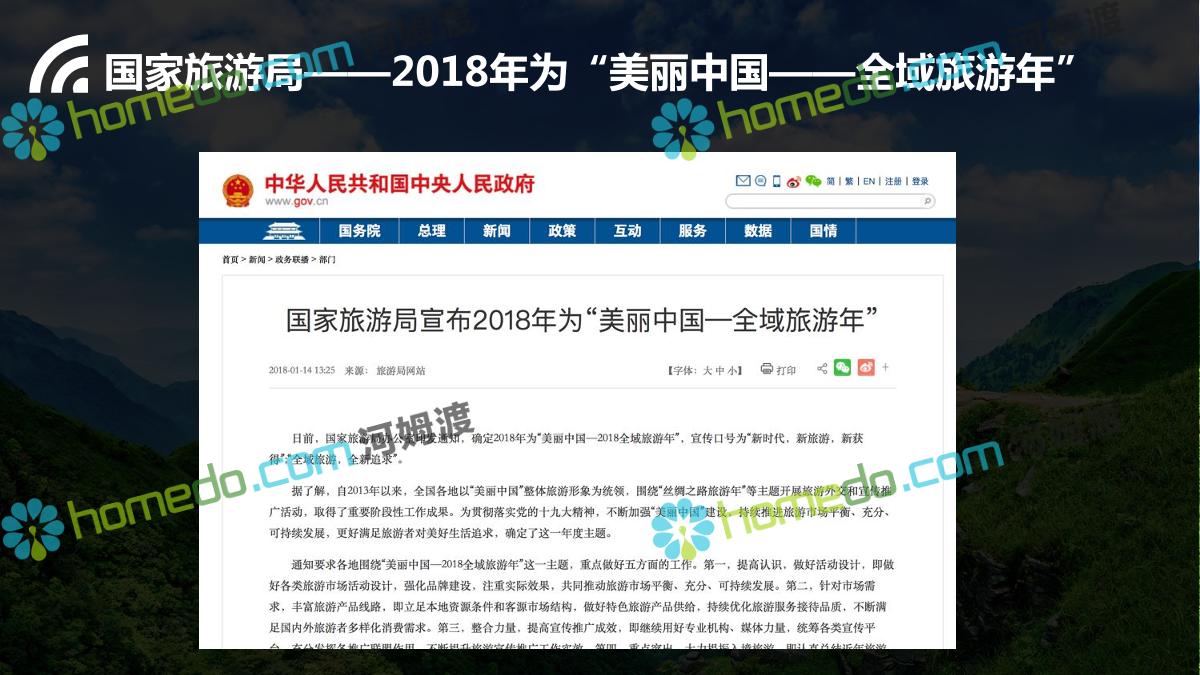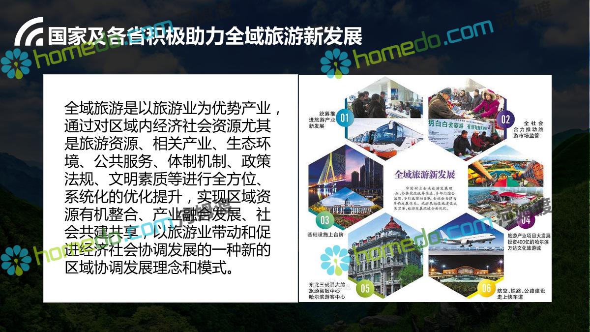 方案简介 全域旅游是以旅游业为优势产业,通过对区域内经济社会资源尤其是旅游资源、相关产业、生态环境、公共服务、体制机制、政策法规、文明素质等进行全方位、系统化的优化提升,实现区域资源有机整合、产业融合发展、社会共建共享,以旅游业带动和促进经济社会协调发展的一种新的区域协调发展理念和模式。