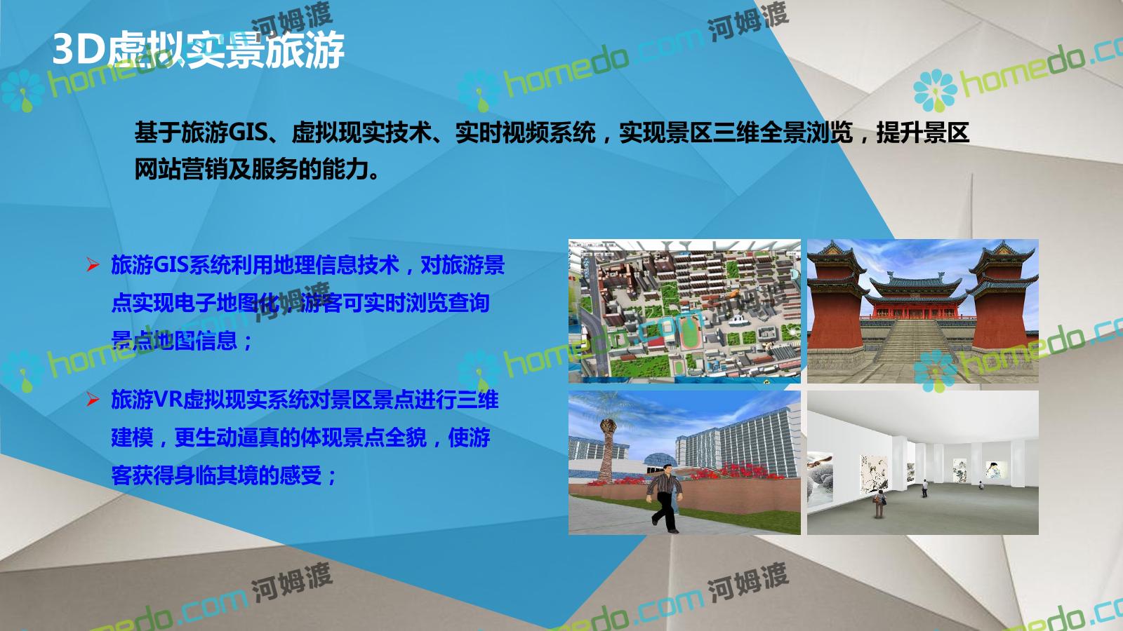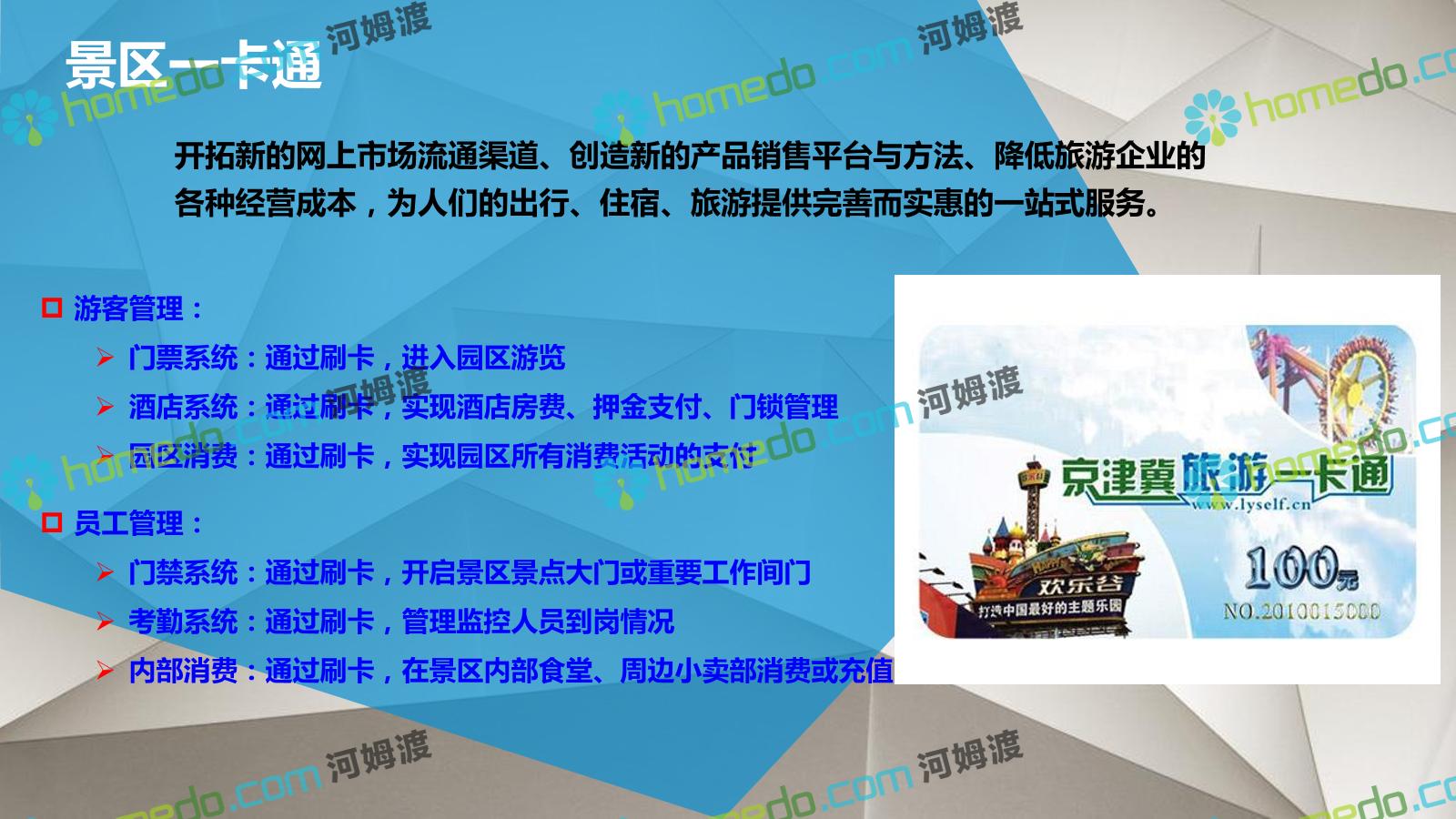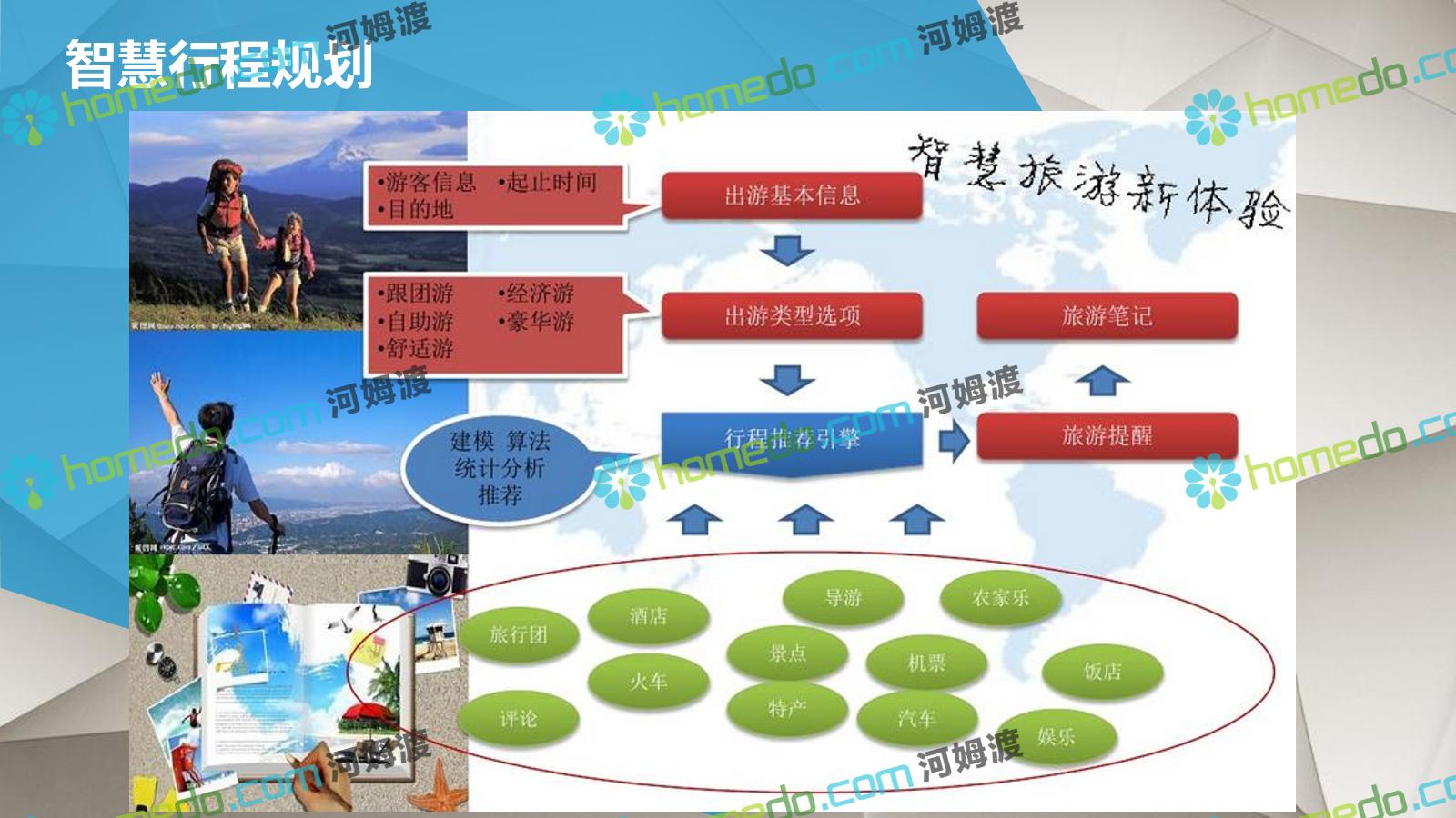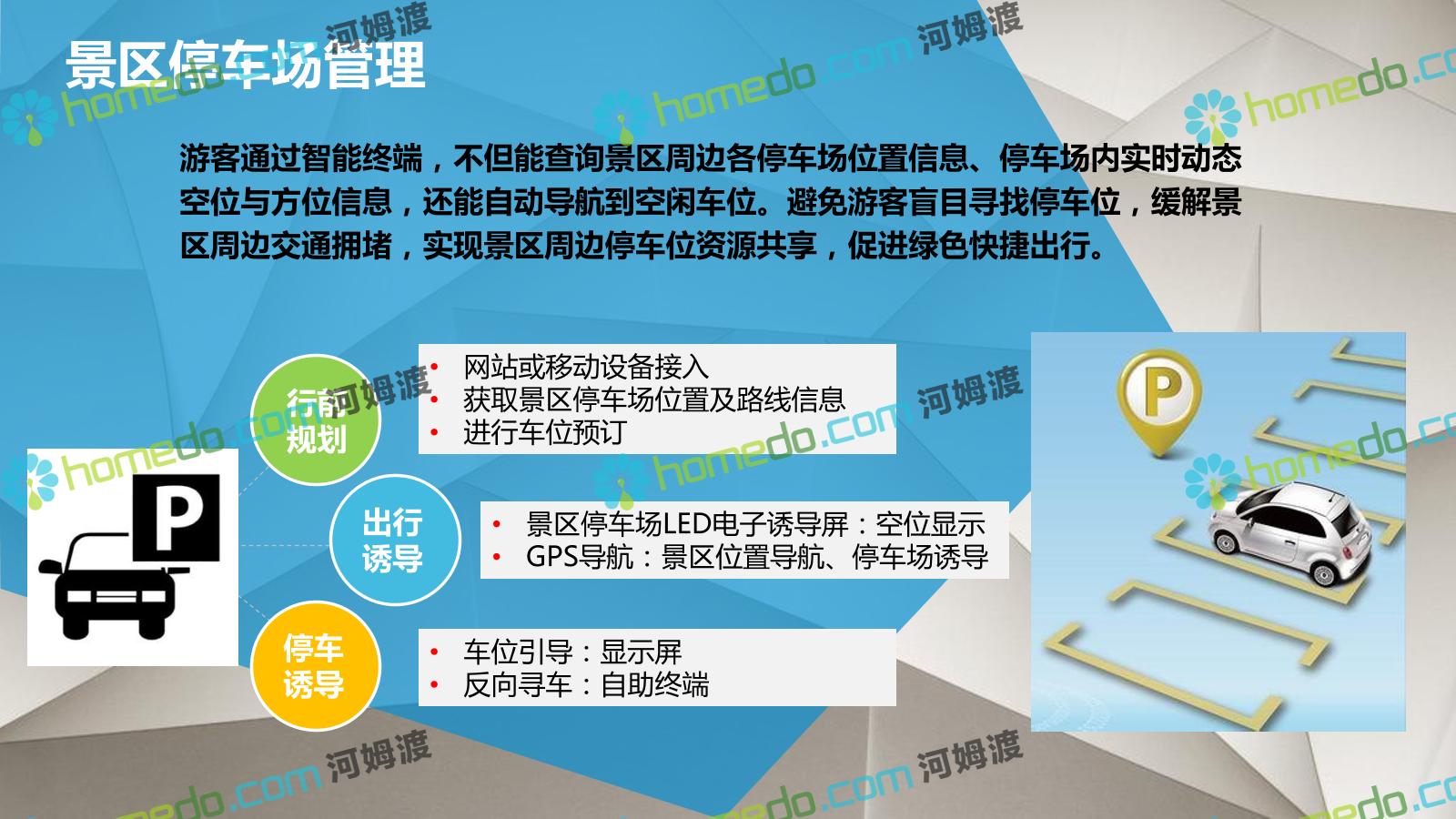 方案简介 利用云计算、物联网等新技术,通过互联网/移动互联网,借助便携的终端上网设备,主动感知旅游资源、旅游经济、旅游活动、旅游者等方面的信息,及时发布,让人们能够及时了解这些信息,及时安排和调整工作与旅游计划,从而对各类旅游信息实现智能感知、方便利用。 智慧旅游的推广,将提升旅游者在食、住、行、游、购、娱每个旅游消费环节中的附加值;旅游者在旅游前、旅游中、旅游后,都能轻松获取资讯、规划出行、预订票务、安排食宿、消费支出等,极大改善旅游体验。