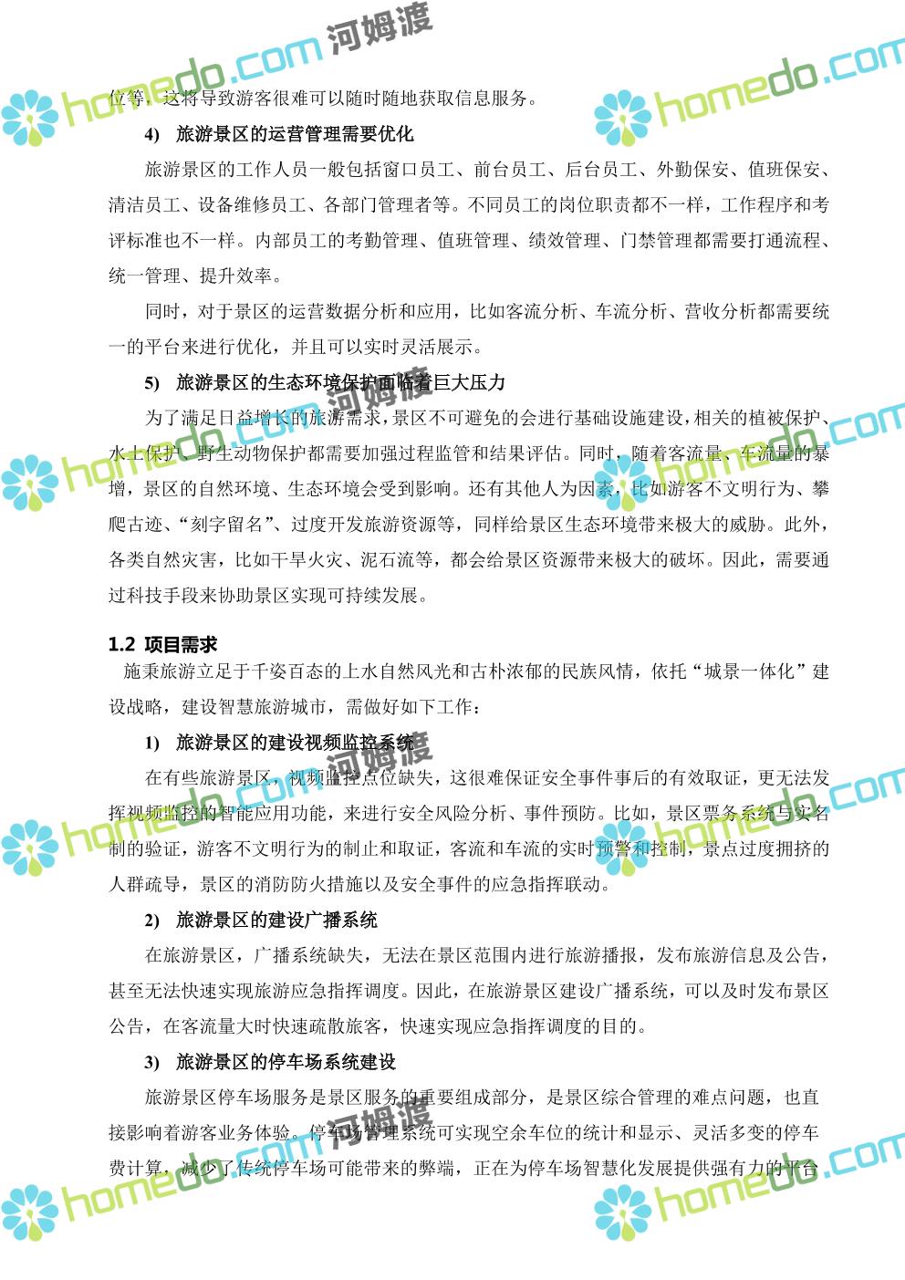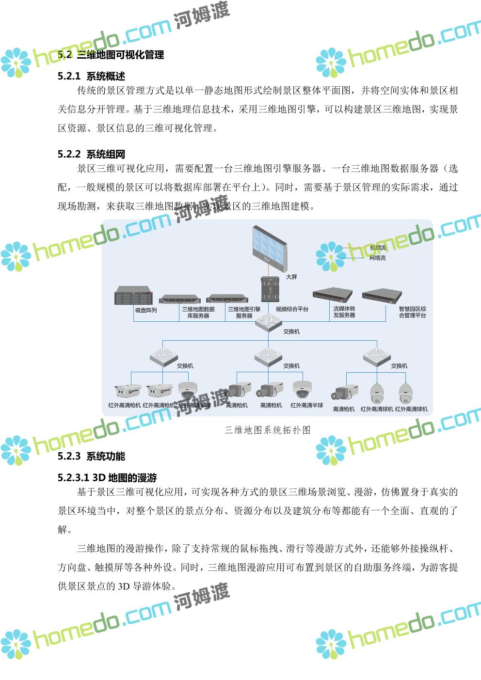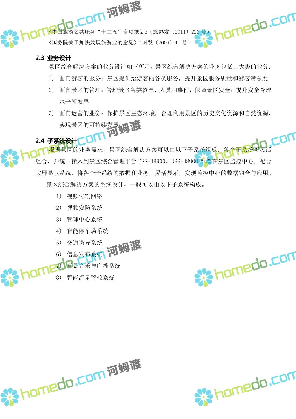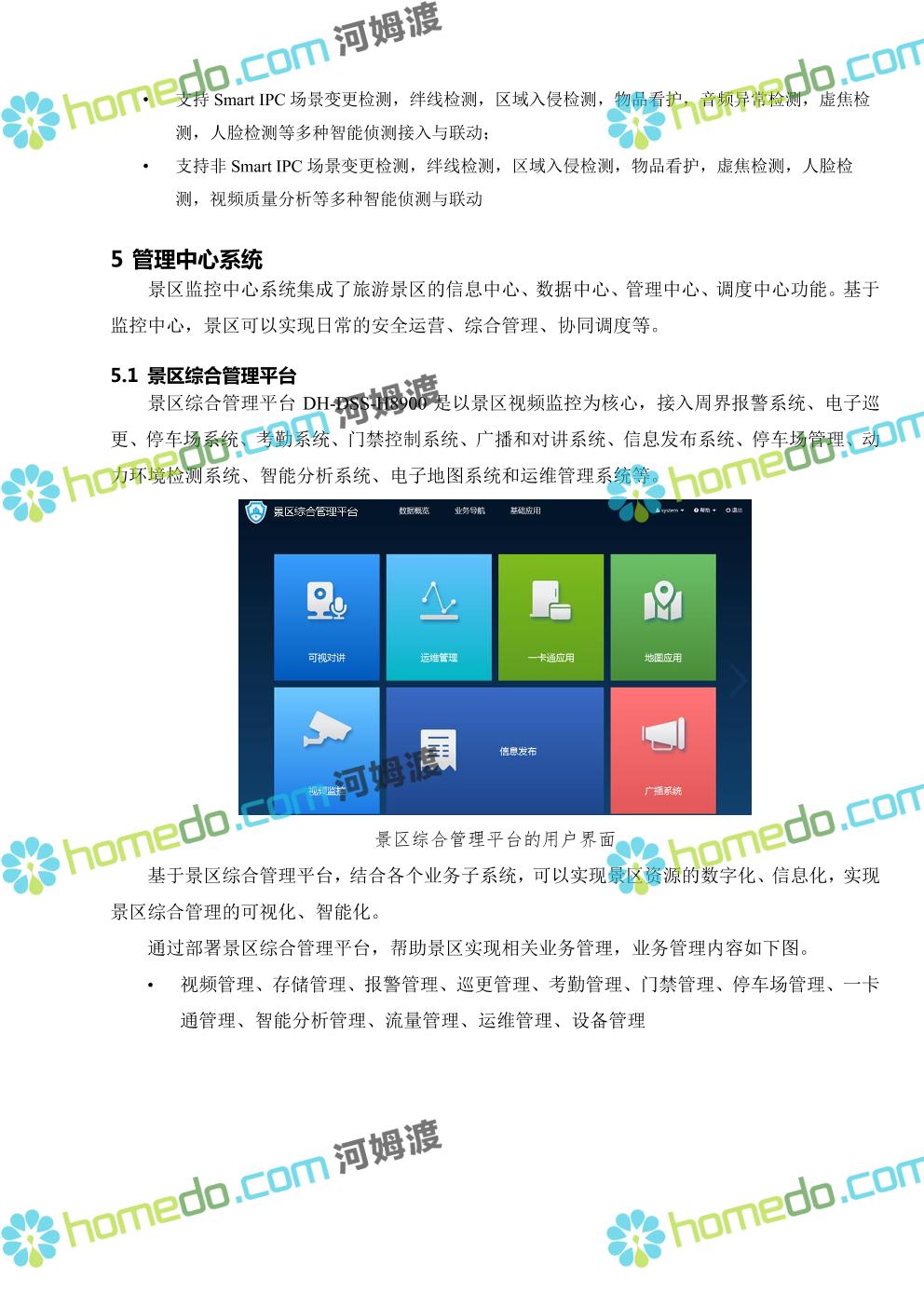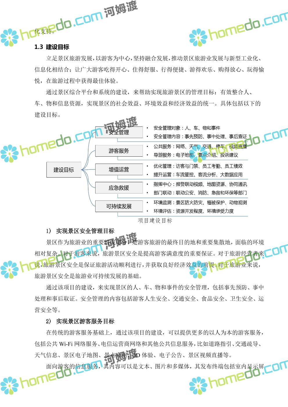 方案简介 景区综合解决方案的业务设计如下所示。景区综合解决方案的业务包括三大类的业务: 1) 面向游客的服务:景区提供给游客的各类服务,提升景区服务质量和游客满意度 2) 面向景区的管理:管理景区各类资源、人员和事件,保障景区安全,提升安全管理水平和效率 3) 面向运营的业务:保护景区生态环境,合理利用景区的历史文化资源和自然资源,实现景区的可持续发展