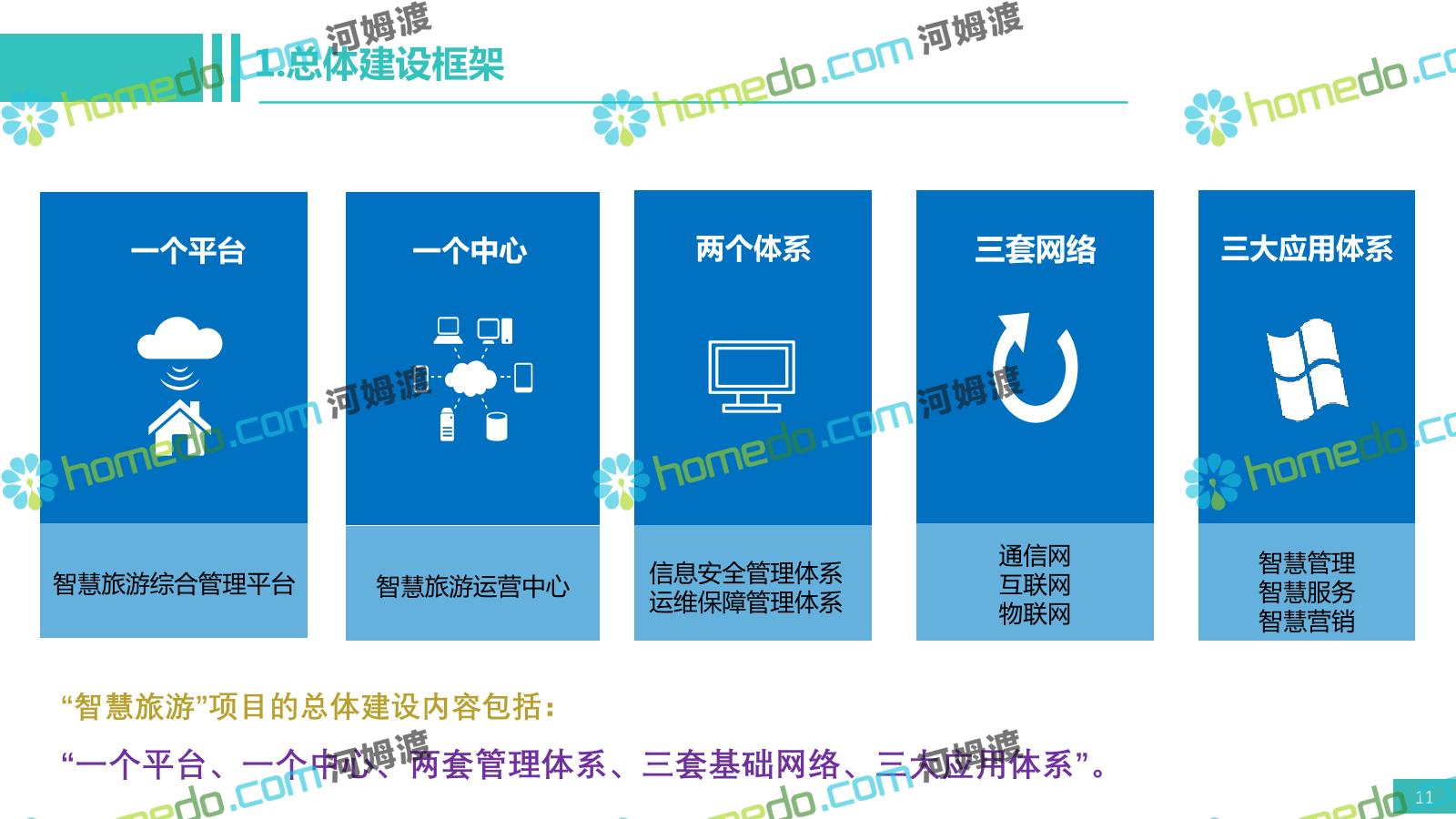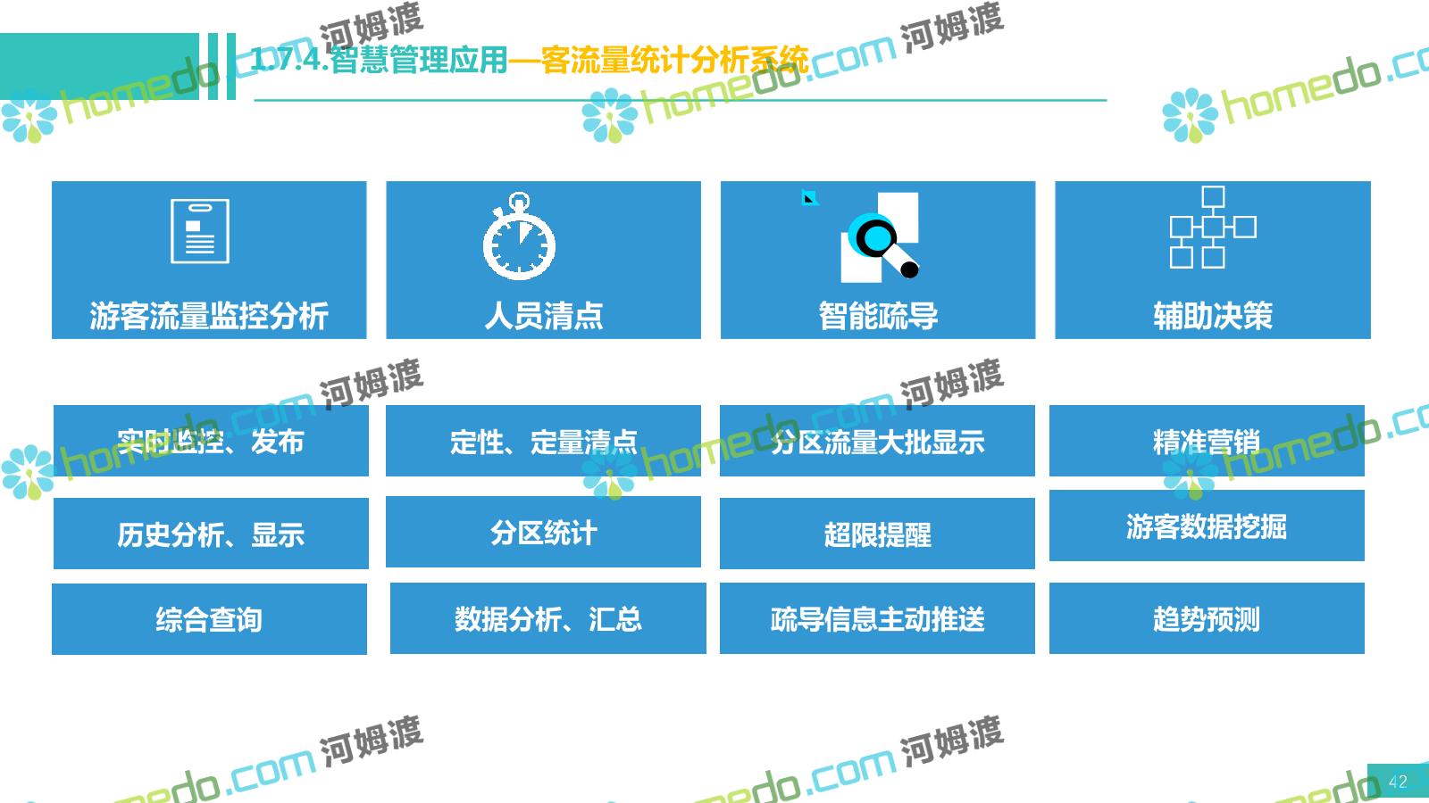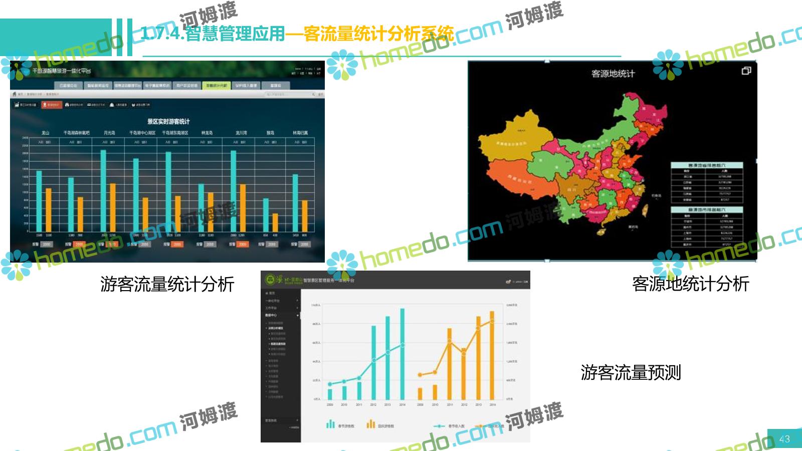 方案简介 以“智慧、安全、绿色、人文、活力”为规划目标,结合国内外智慧文旅产业的前沿理念,采用物联网、互联网/移动互联网、虚拟现实等新技术,通过智能化基础设施、智能化设施管控、智能化集成运营管理、智慧应用服务、智慧化营销管理等模块组合,将智能化与信息化进行完美融合,打造一个全方位的智慧旅游平台。 设计通过信息通信、安全防范、设施管理、运营管理一键控、客流引导、旅游管理、智慧旅游服务、手机游园、大数据分析等系统之间的交互和融合,进行旅游商业模式创新。