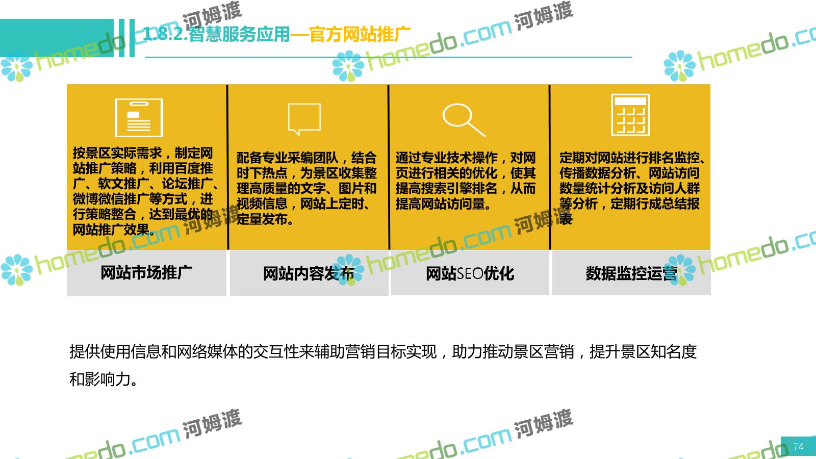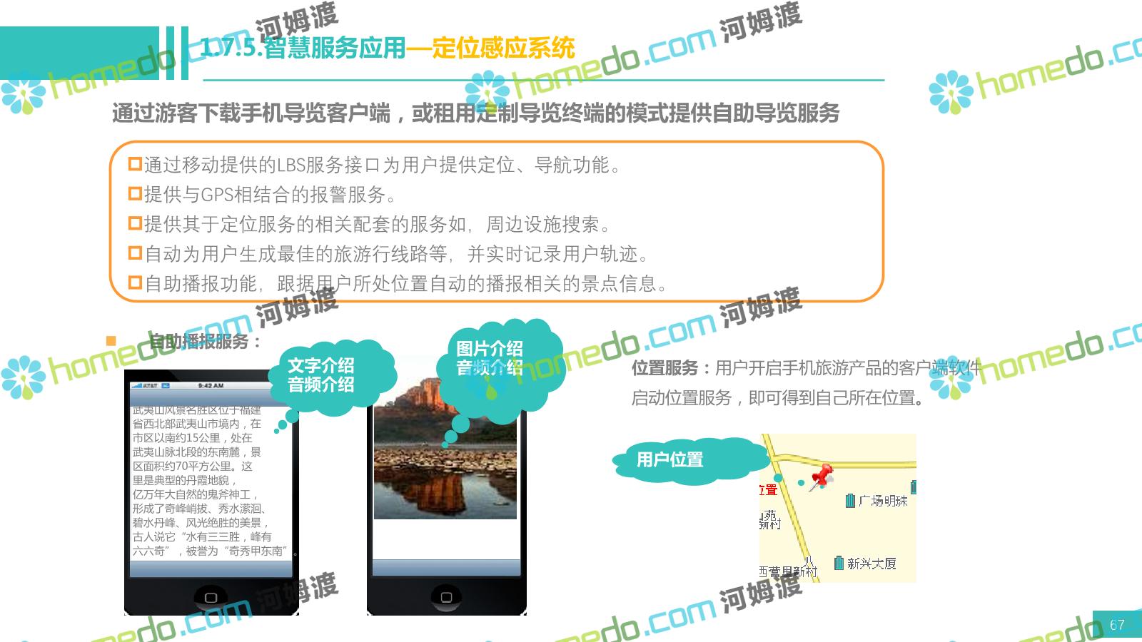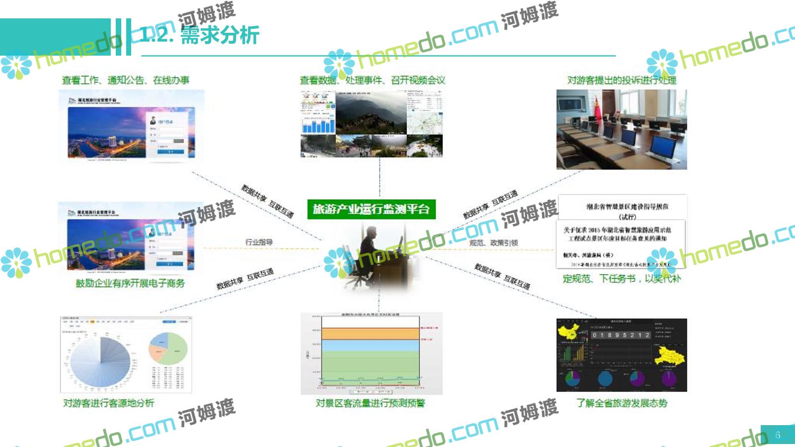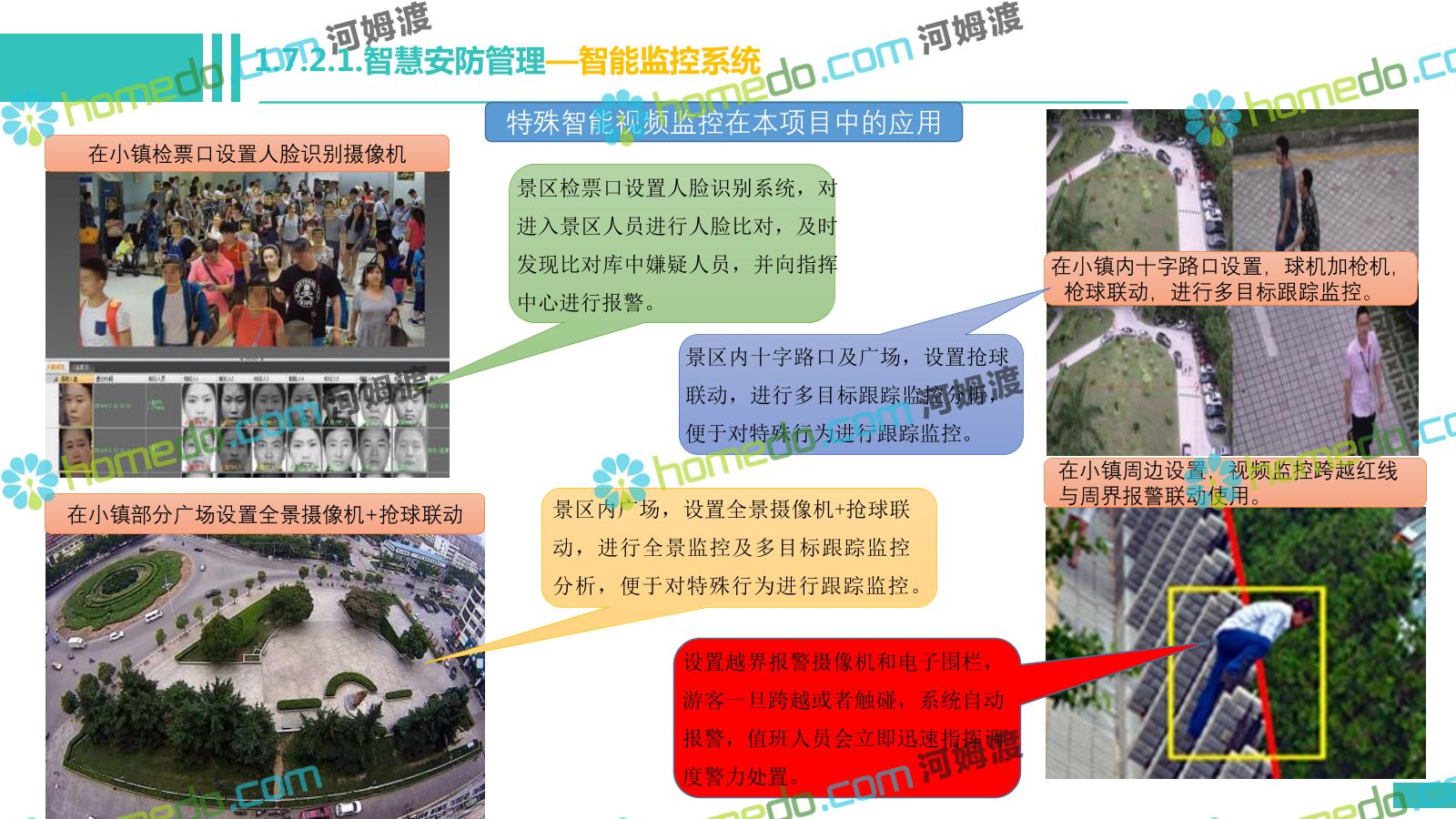方案简介 以“智慧、安全、绿色、人文、活力”为规划目标,结合国内外智慧文旅产业的前沿理念,采用物联网、互联网/移动互联网、虚拟现实等新技术,通过智能化基础设施、智能化设施管控、智能化集成运营管理、智慧应用服务、智慧化营销管理等模块组合,将智能化与信息化进行完美融合,打造一个全方位的智慧旅游平台。 设计通过信息通信、安全防范、设施管理、运营管理一键控、客流引导、旅游管理、智慧旅游服务、手机游园、大数据分析等系统之间的交互和融合,进行旅游商业模式创新。