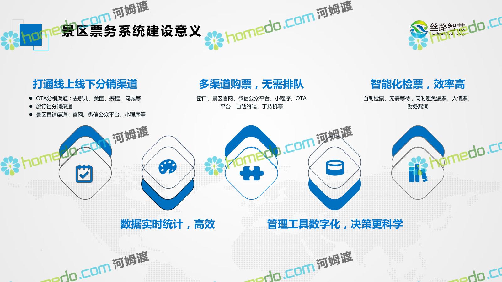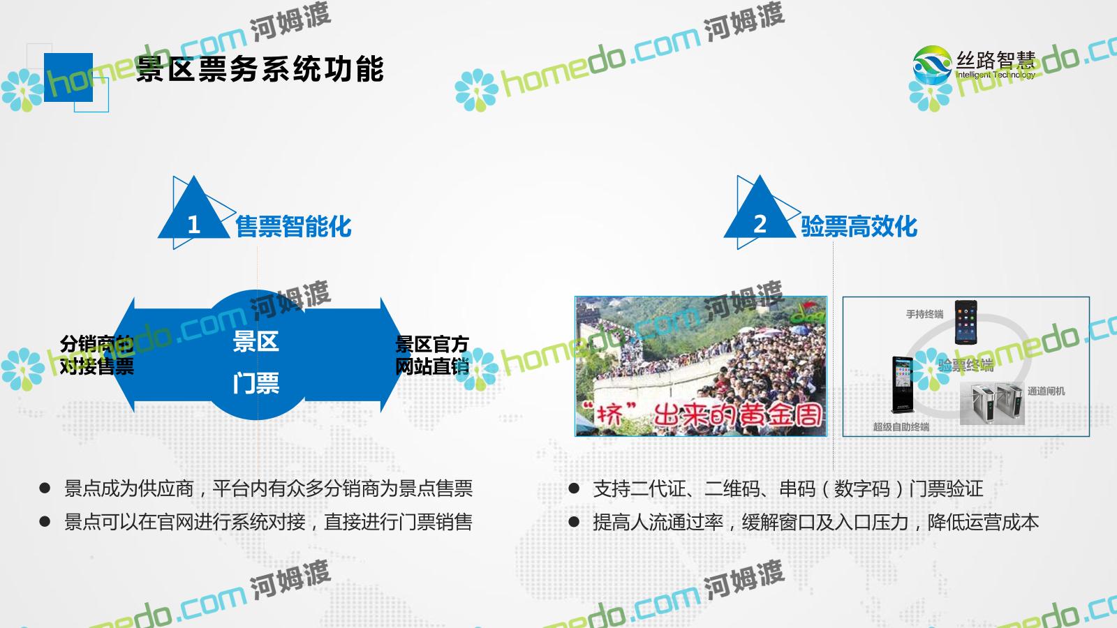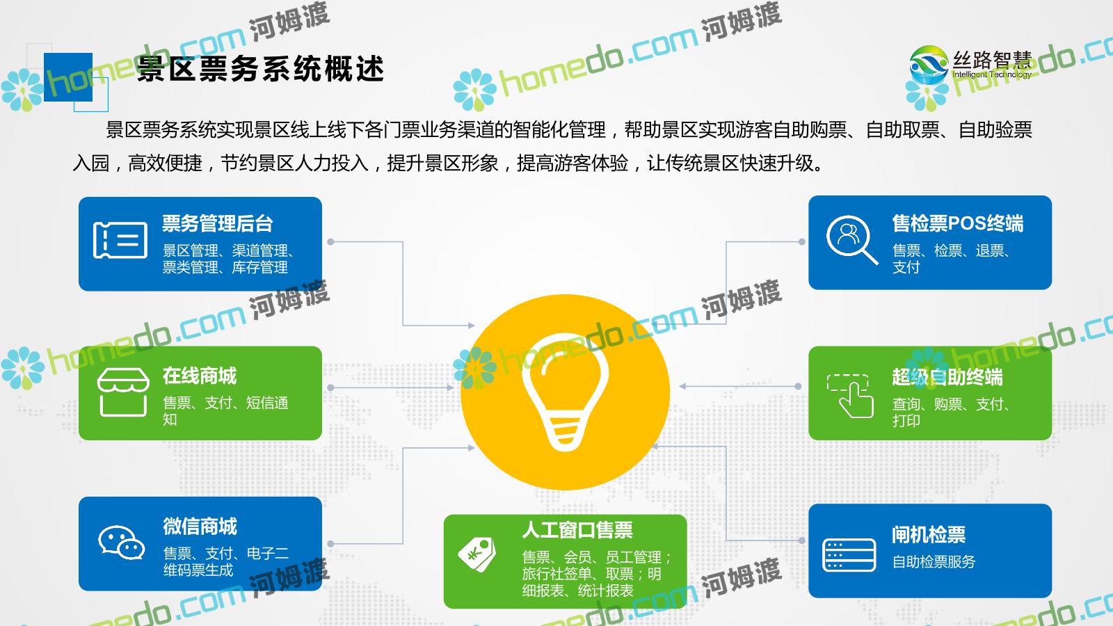 方案简介 景区票务系统实现景区线上线下各门票业务渠道的智能化管理,帮助景区实现游客自助购票、自助取票、自助验票入园,高效便捷,节约景区人力投入,提升景区形象,提高游客体验,让传统景区快速升级。