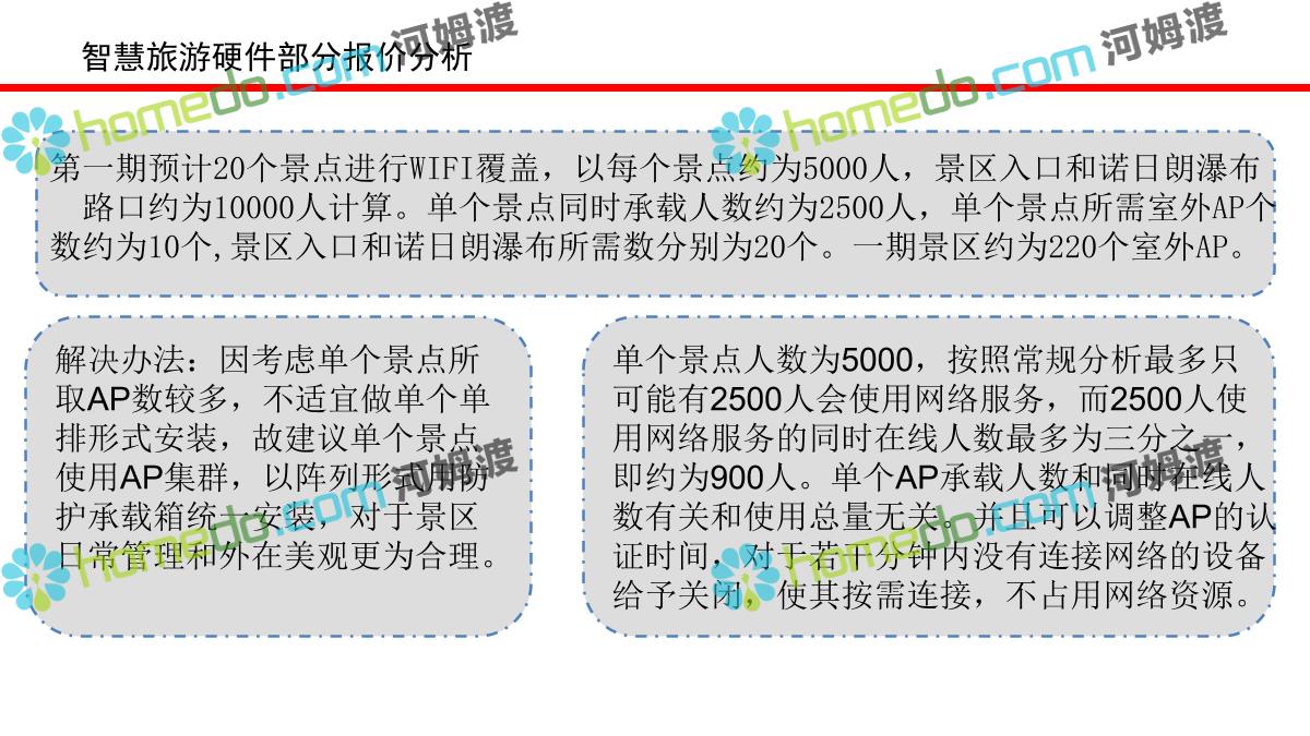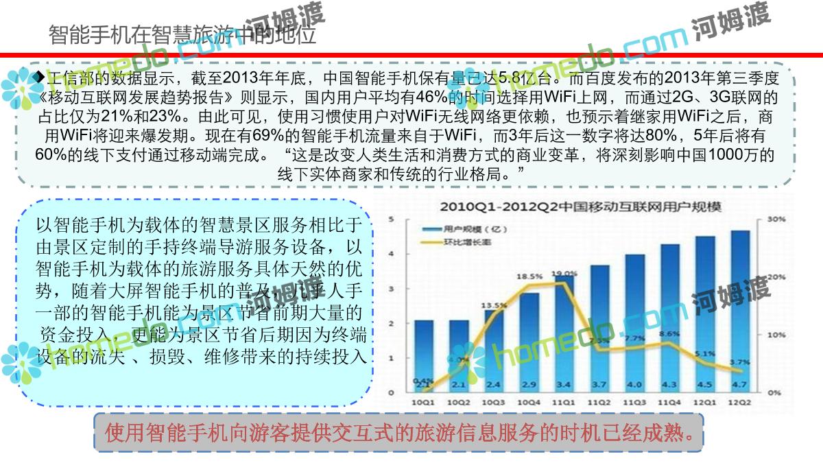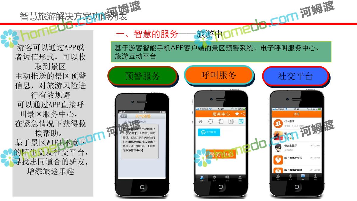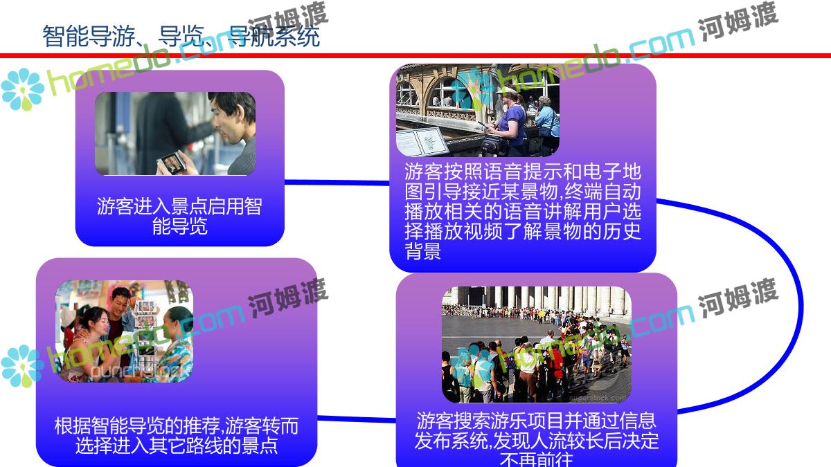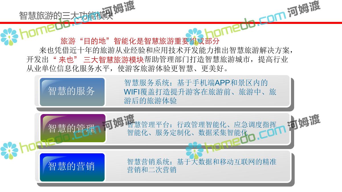 方案简介 智慧旅游也被称为智能旅游,就是利用云计算,物联网等新技术,通过互联网,移动互联网,借助便携的上网终端,主动感知旅游资源,旅游经济,旅游活动等方面的信息,达到及时发布、及时了解、及时安排和调整工作与计划,从而实现对各类旅游信息的智能感知和利用。智慧旅游的推广将提升游客在食、住、行、游、购、娱各个旅游环节中的附加值。