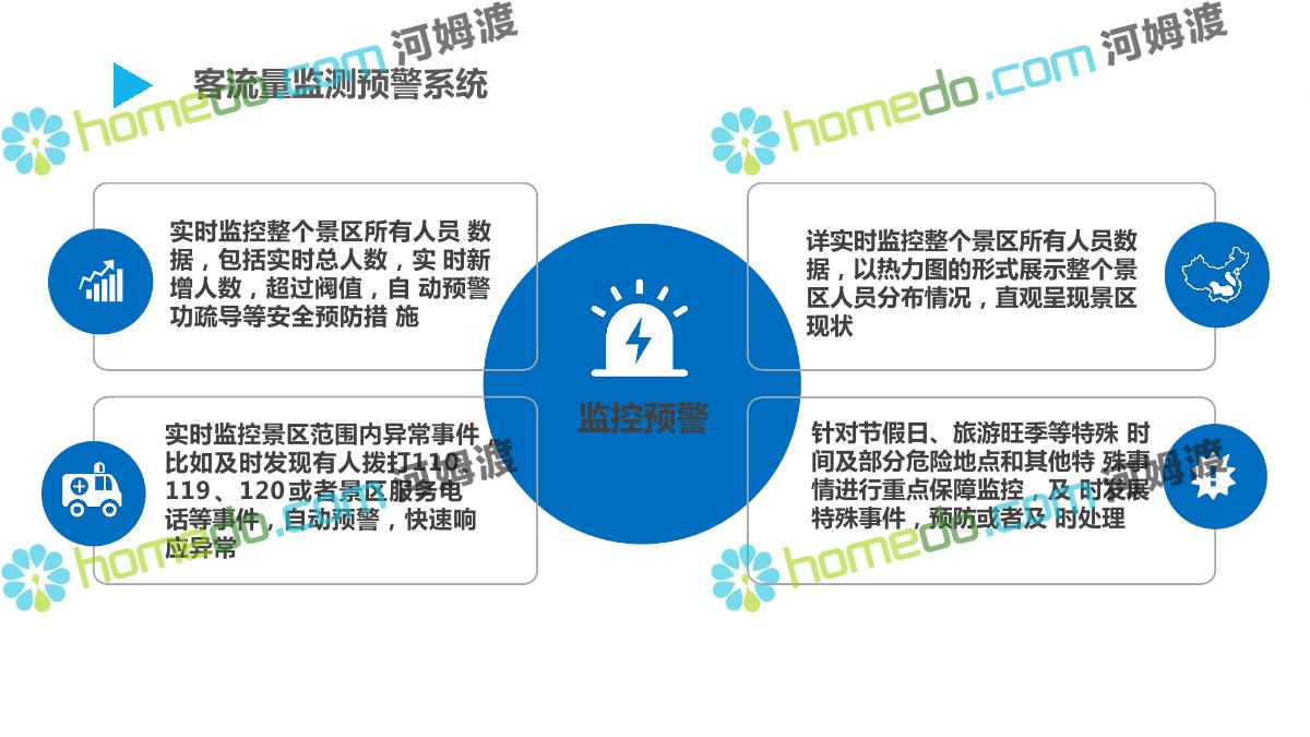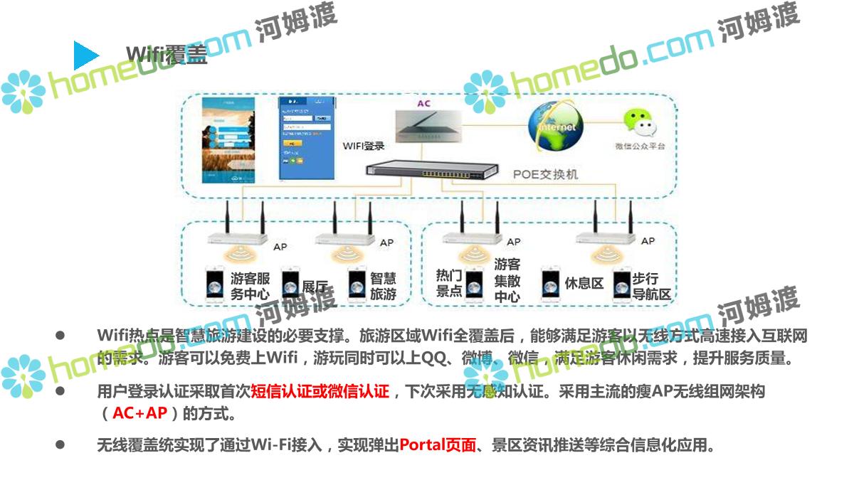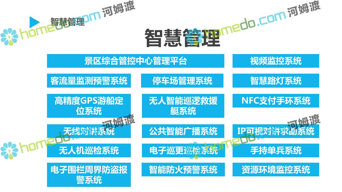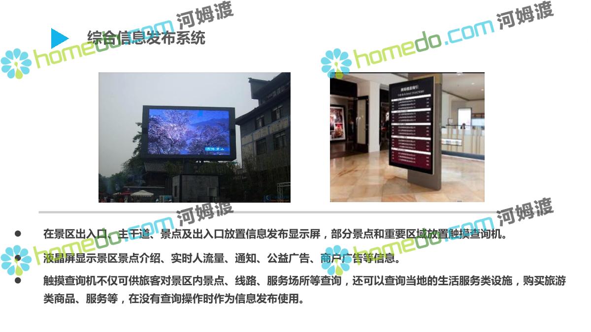 方案简介 以创5A新标准为准则,完成智慧景区建设。将重点进行基础设施、平台建设、管理、服务和营销的建设。 建设内容-5大基础设施建设 + 2套大平台 + 24个应用系统