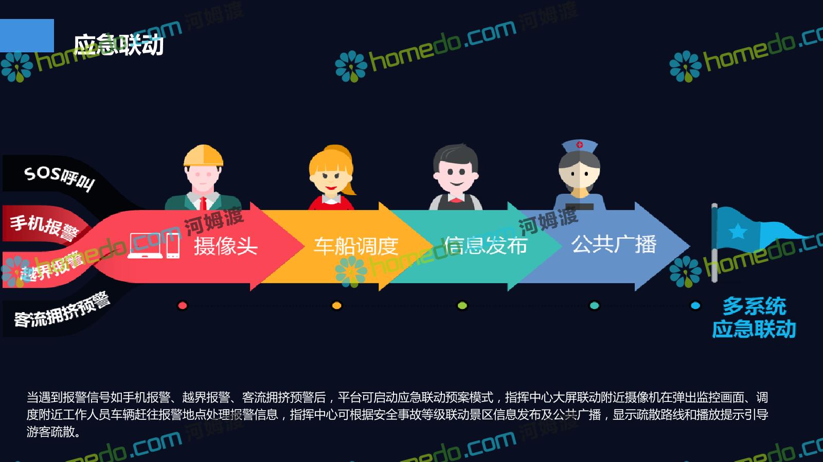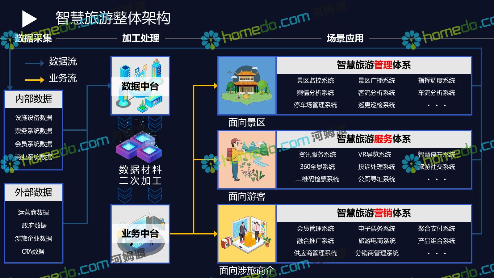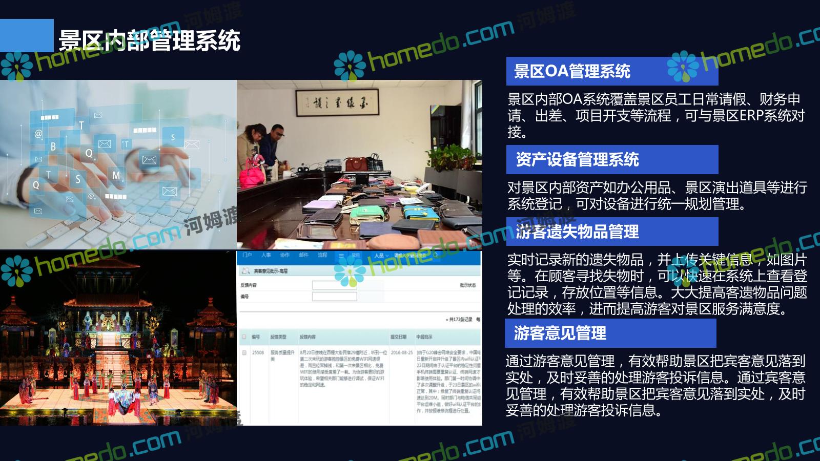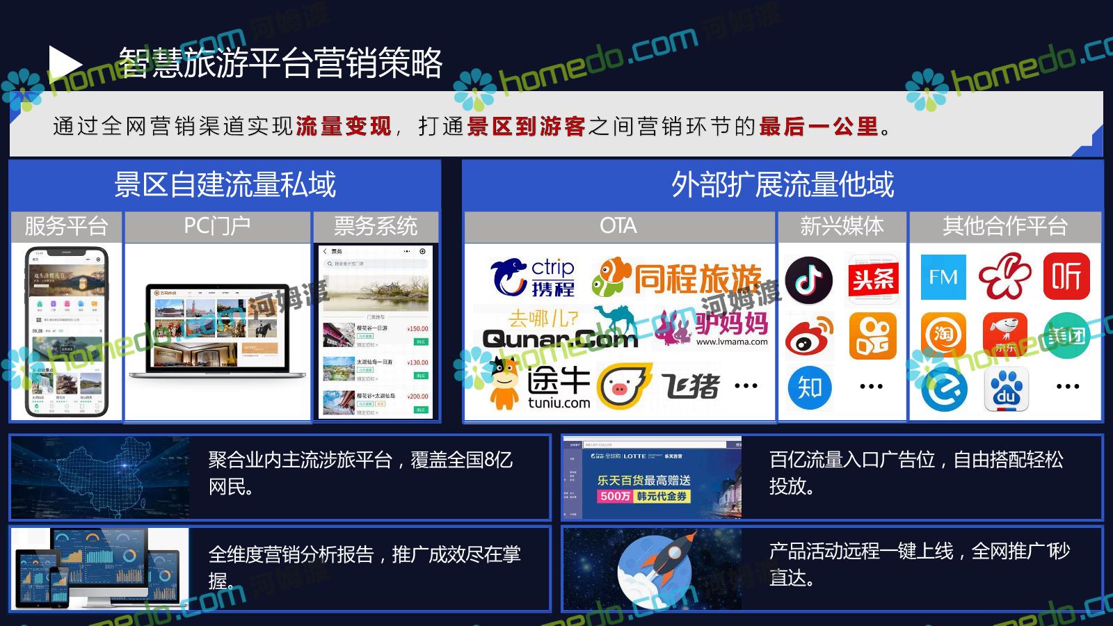 方案简介 基于景区和全区域旅游数据大平台和集成管控平台为基础的,提供景区网络规划、景区智能化建设、商业系统整合、游客服务系统建设、全网营销平台建设的综合解决方案。以国家5A级景区规范标准为基础,加以新型智慧旅游系统拓展,系统具备行业前瞻性、可拓展性,争取建成后成为国内5A景区标杆。