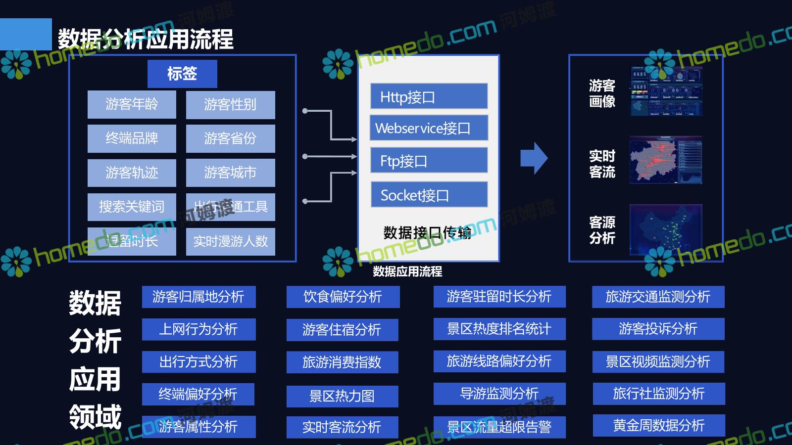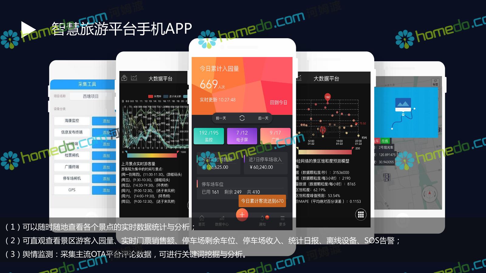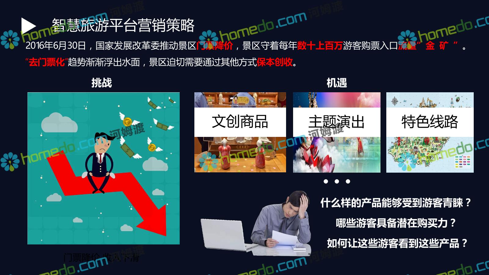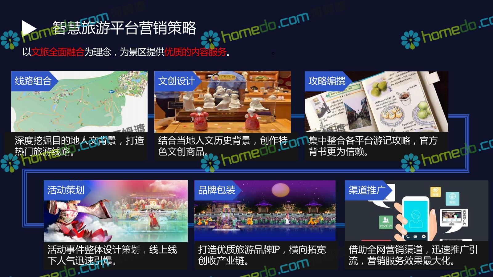方案简介 基于景区和全区域旅游数据大平台和集成管控平台为基础的,提供景区网络规划、景区智能化建设、商业系统整合、游客服务系统建设、全网营销平台建设的综合解决方案。以国家5A级景区规范标准为基础,加以新型智慧旅游系统拓展,系统具备行业前瞻性、可拓展性,争取建成后成为国内5A景区标杆。