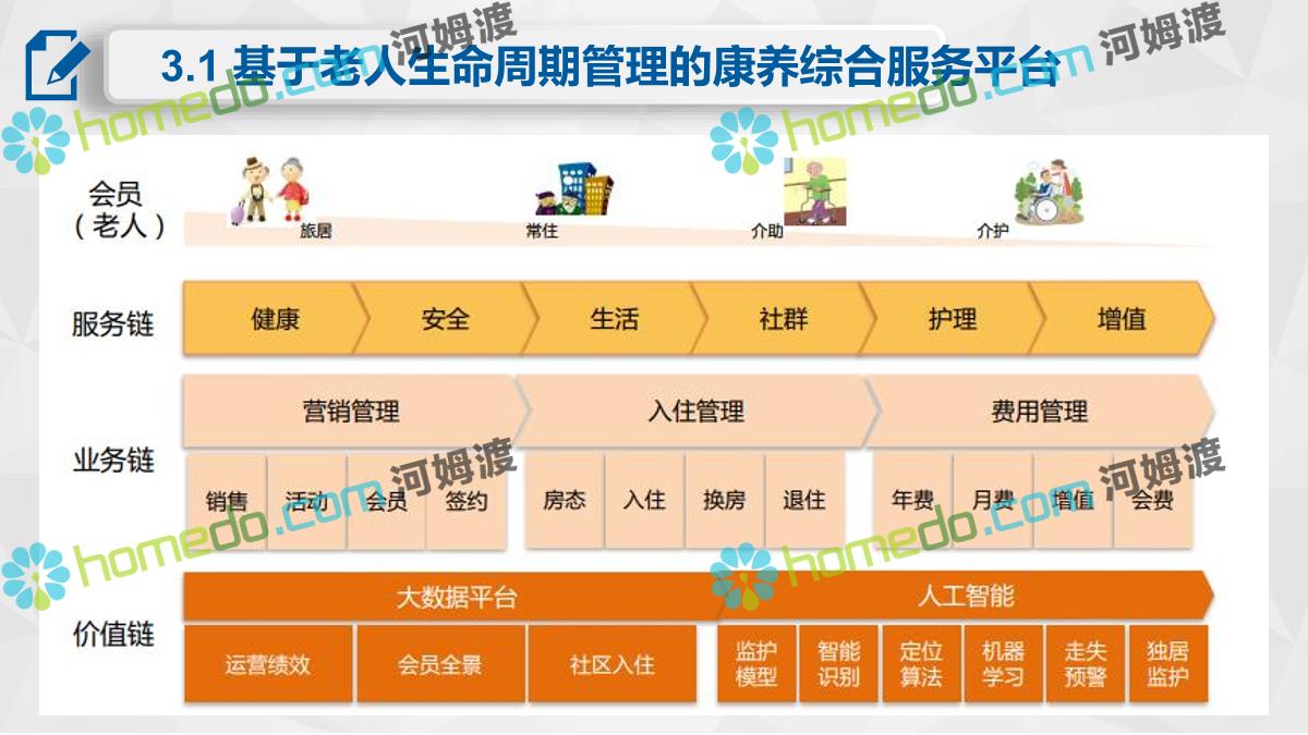 方案简介 与全球顶尖医疗机构美国匹兹堡大学医学中心(UPMC)合作,以信息化平台为支撑,拓展社区养老及多元化养老配套设施,为老年人提供医疗、文娱、健康居住等综合服务。