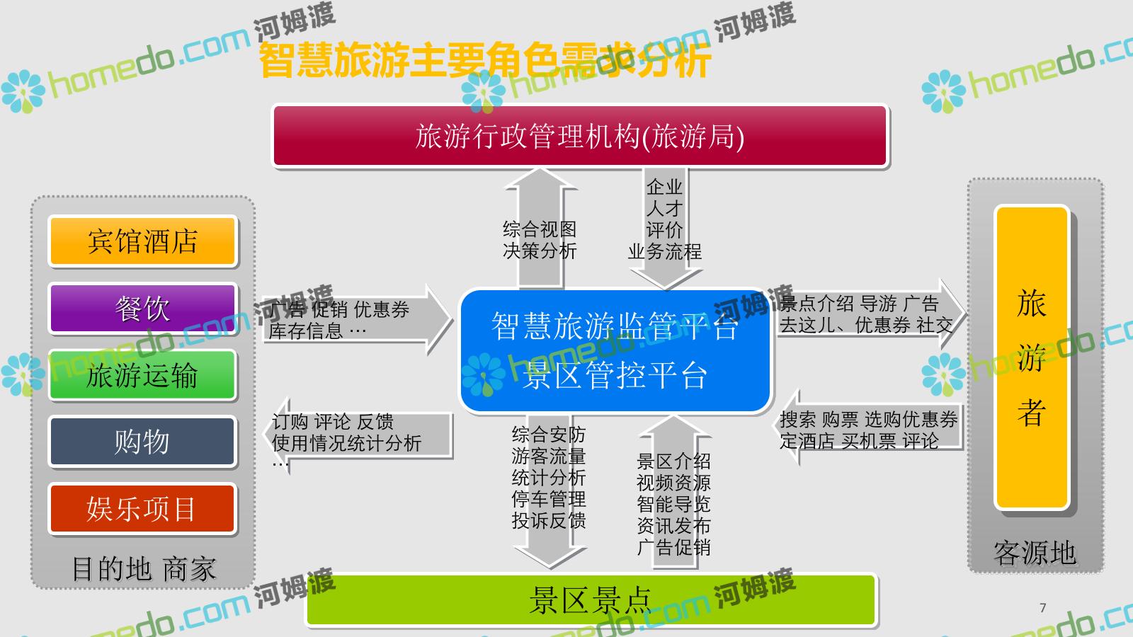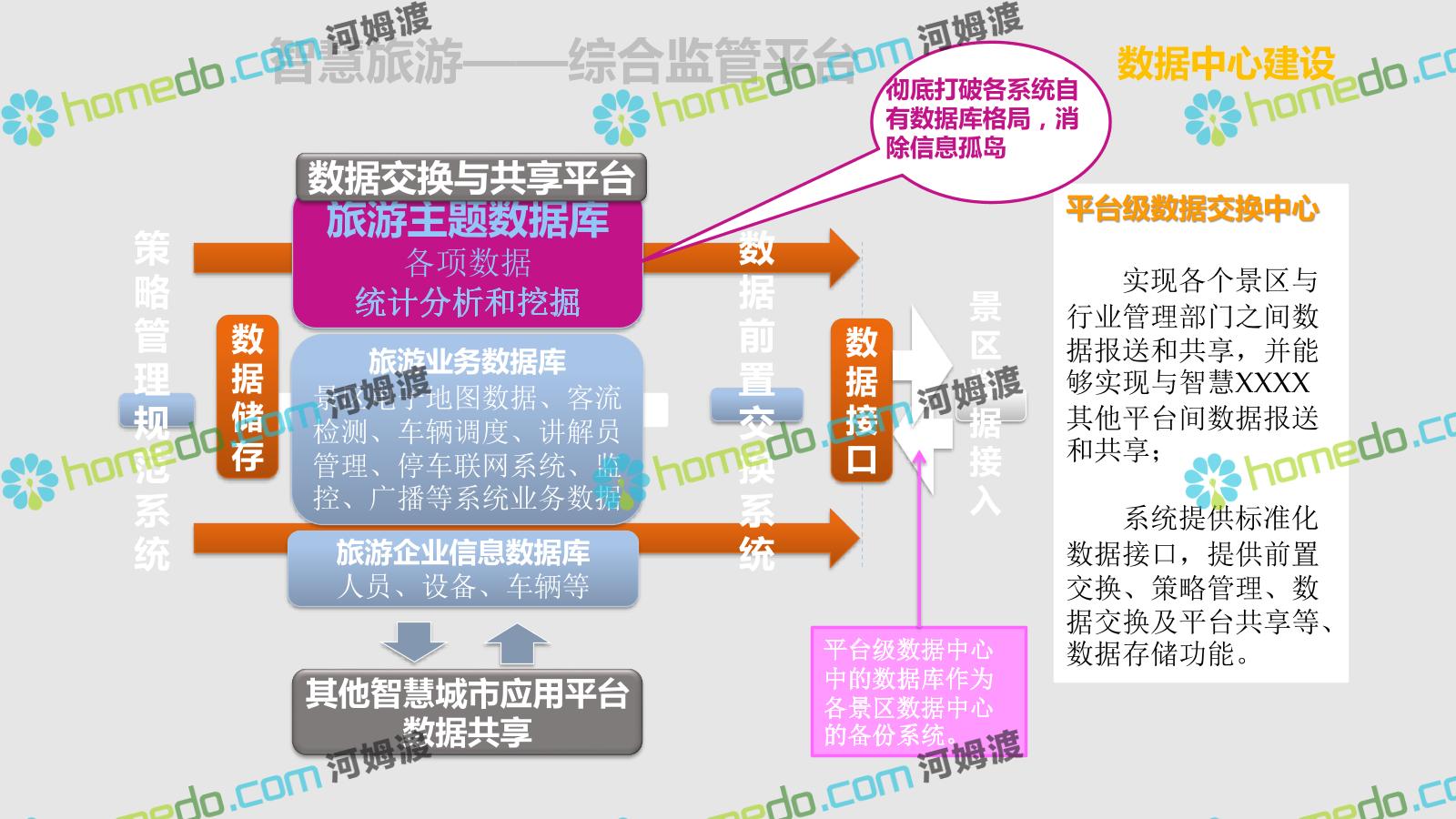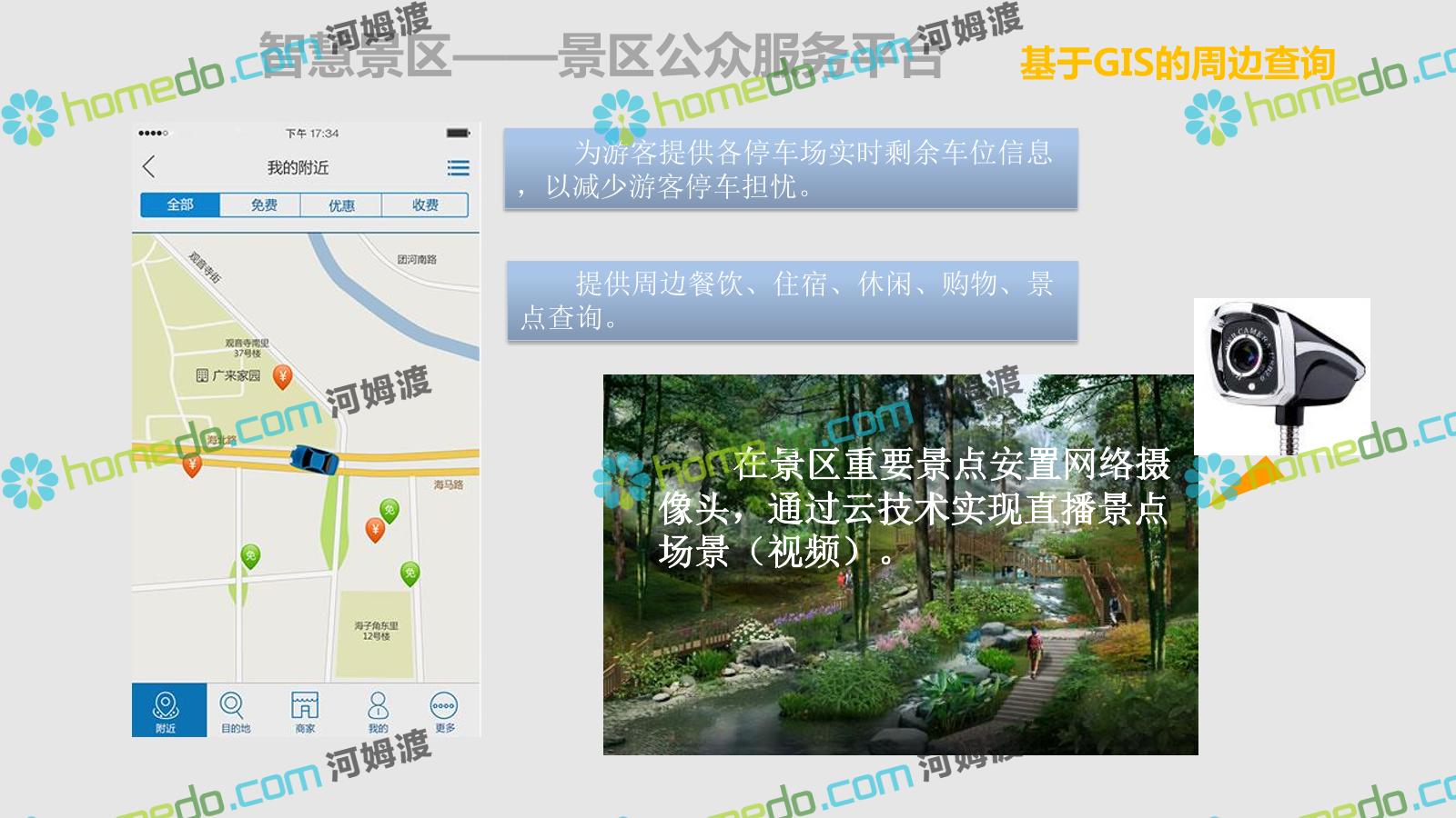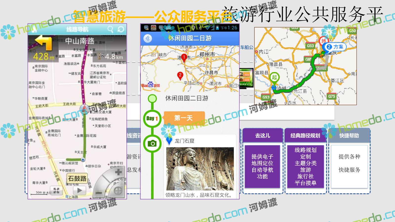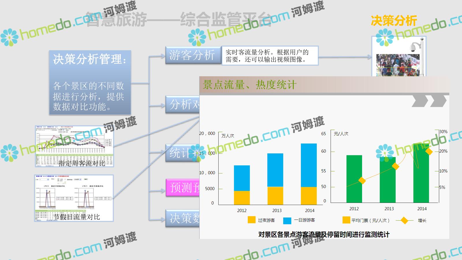 方案简介 智慧旅游是利用云计算、物联网等新技术,通过互联网、移动互联网、借助便携的上网终端,主动感知旅游资源、旅游经济、旅游活动等方面的信息,实现对各类旅游信息的智能感知和利用。智慧旅游的推广将提升旅游者在食、住、行、游、购、娱等各个旅游环节中的感知及体验。