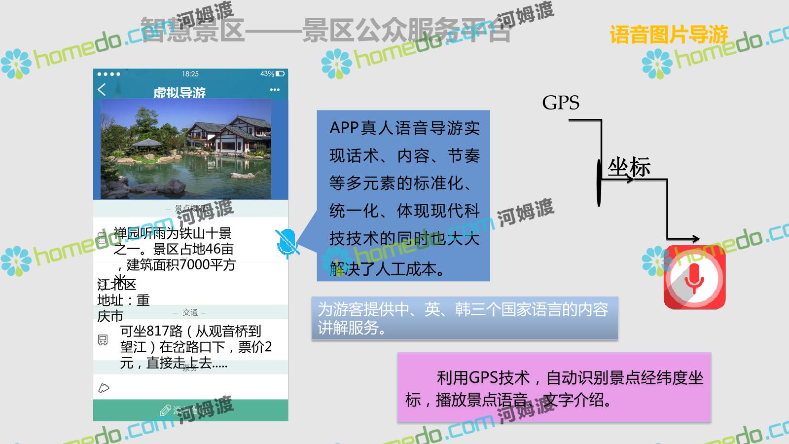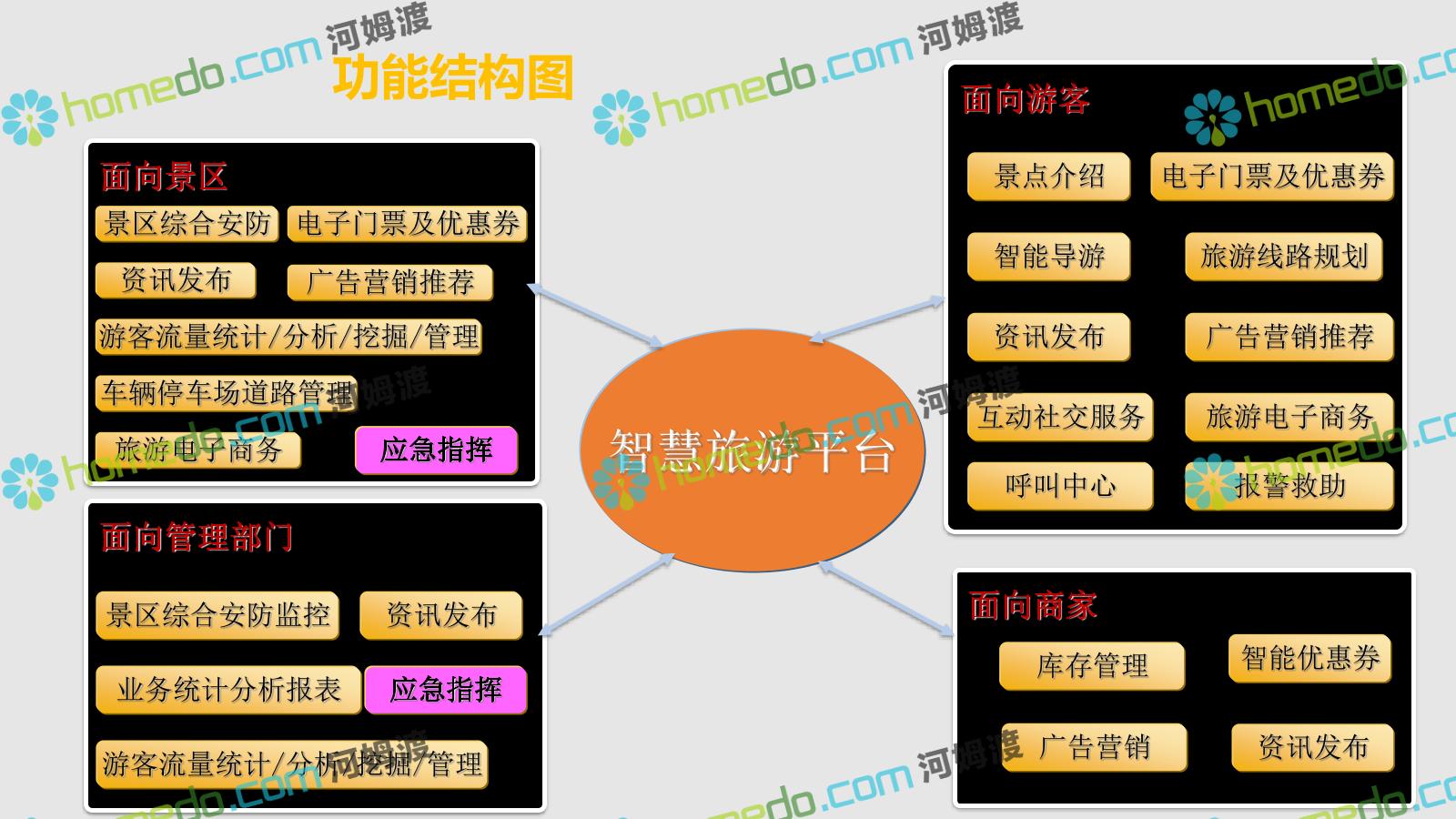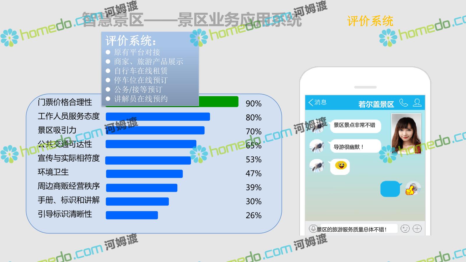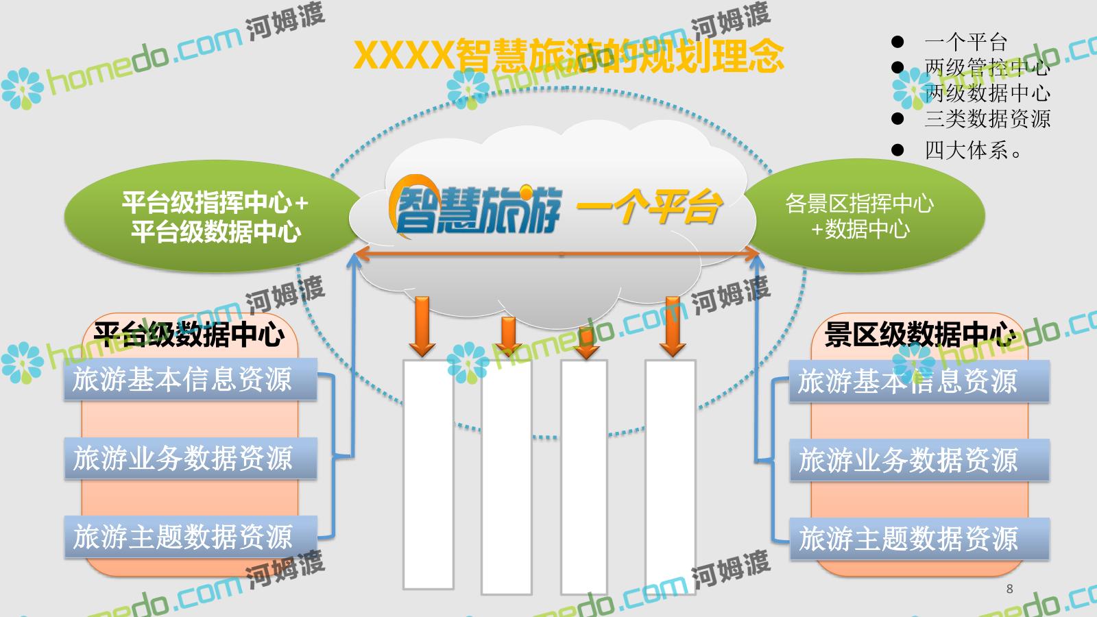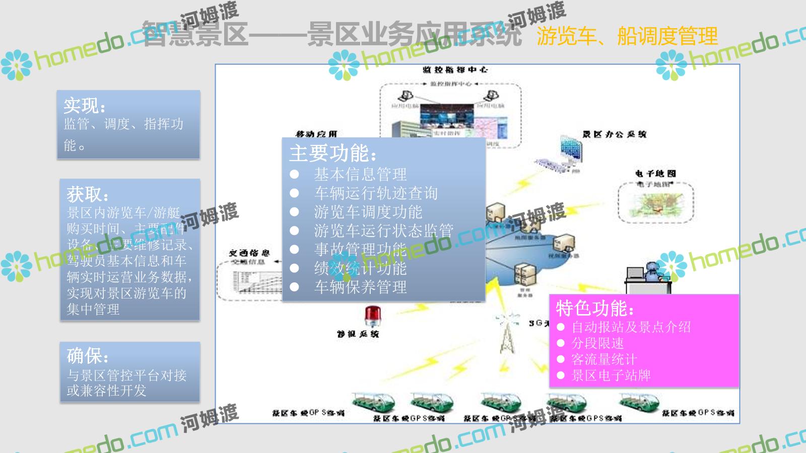 方案简介 智慧旅游是利用云计算、物联网等新技术,通过互联网、移动互联网、借助便携的上网终端,主动感知旅游资源、旅游经济、旅游活动等方面的信息,实现对各类旅游信息的智能感知和利用。智慧旅游的推广将提升旅游者在食、住、行、游、购、娱等各个旅游环节中的感知及体验。