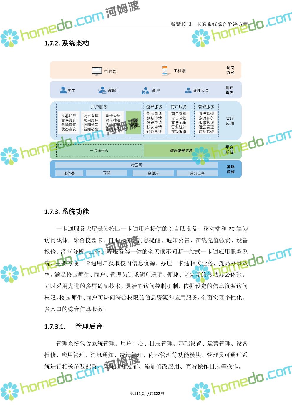方案简介 某高校校园一卡通解决方案,涵盖一卡通各类应用,适配当前高校校园,621页完整版