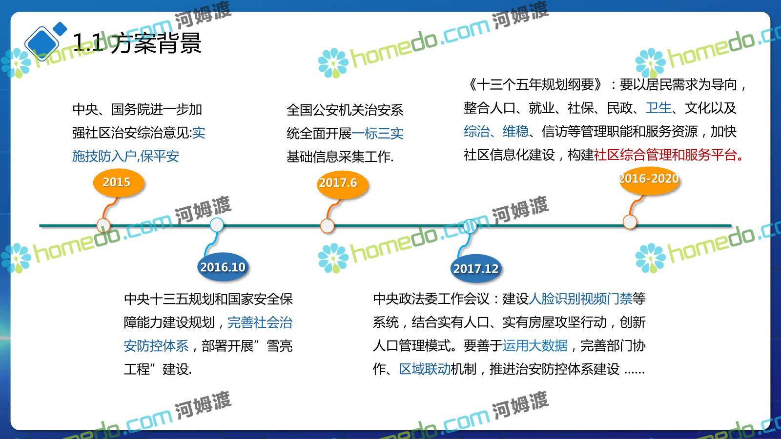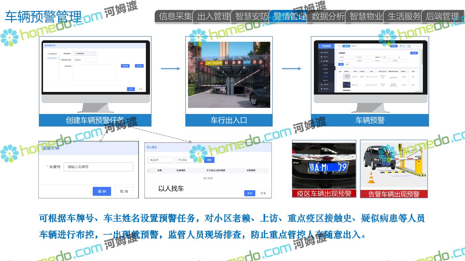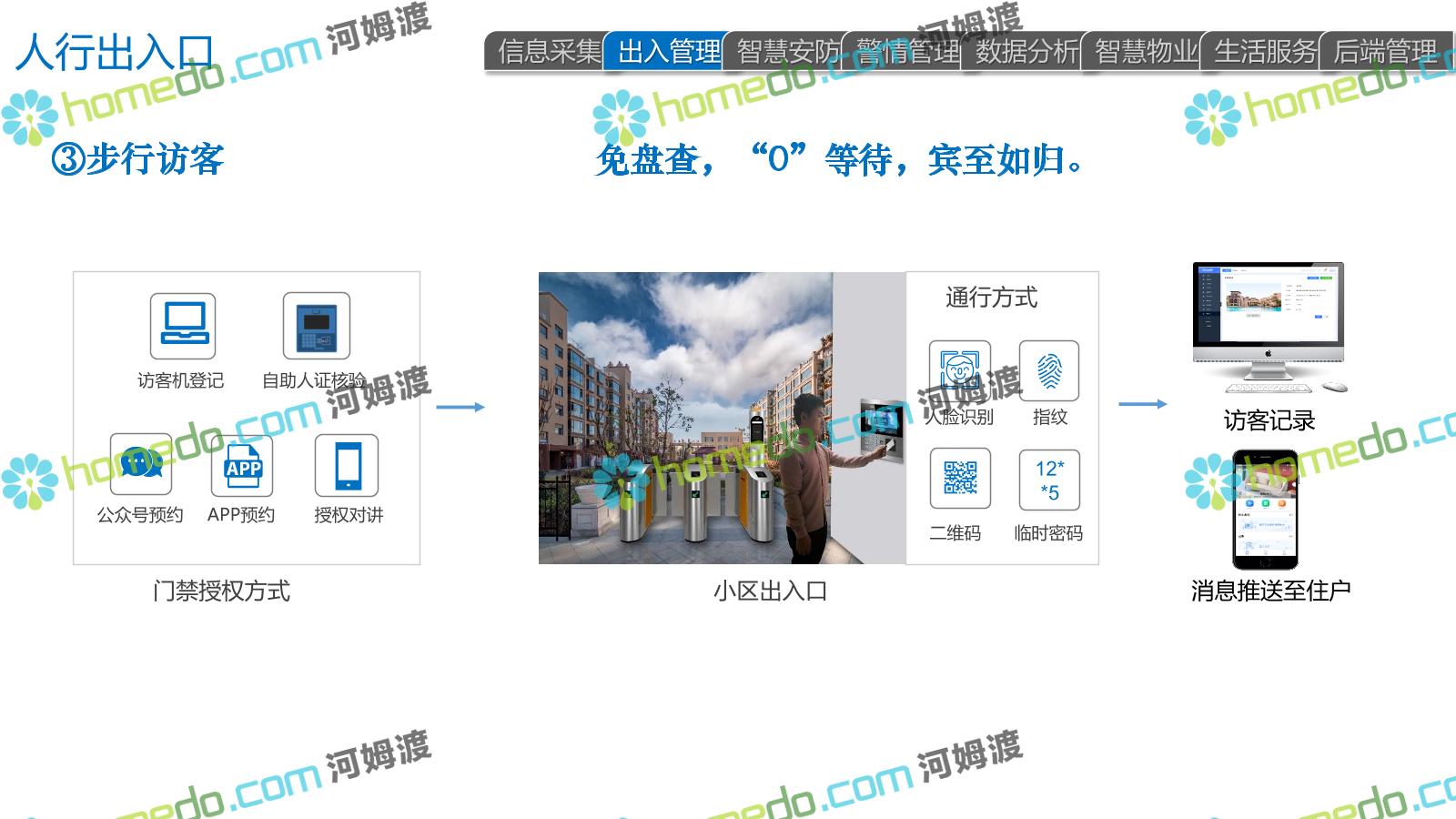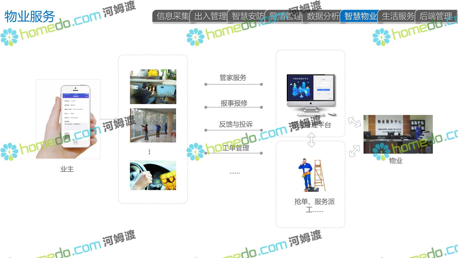 方案简介 方案采用“云-边-端”架构,从治安防控、社区管理、服务民生三个维度出发,以一标三实信息采集为基础,人房车管理和居民安全为导向,公共卫生与安全应急管理为常态 运用云计算、物联网、移动互联网、AI人工智能等技术 融合智能测温门禁、人车卡口、视频监控、物业管理等系统,实现人房车的精细化管理,流口与重点人员管控 街道办、社区民警与小区物业联动共治,全面提高社区技防水平 系统可对接政府平台,为政府决策提供大数据支撑