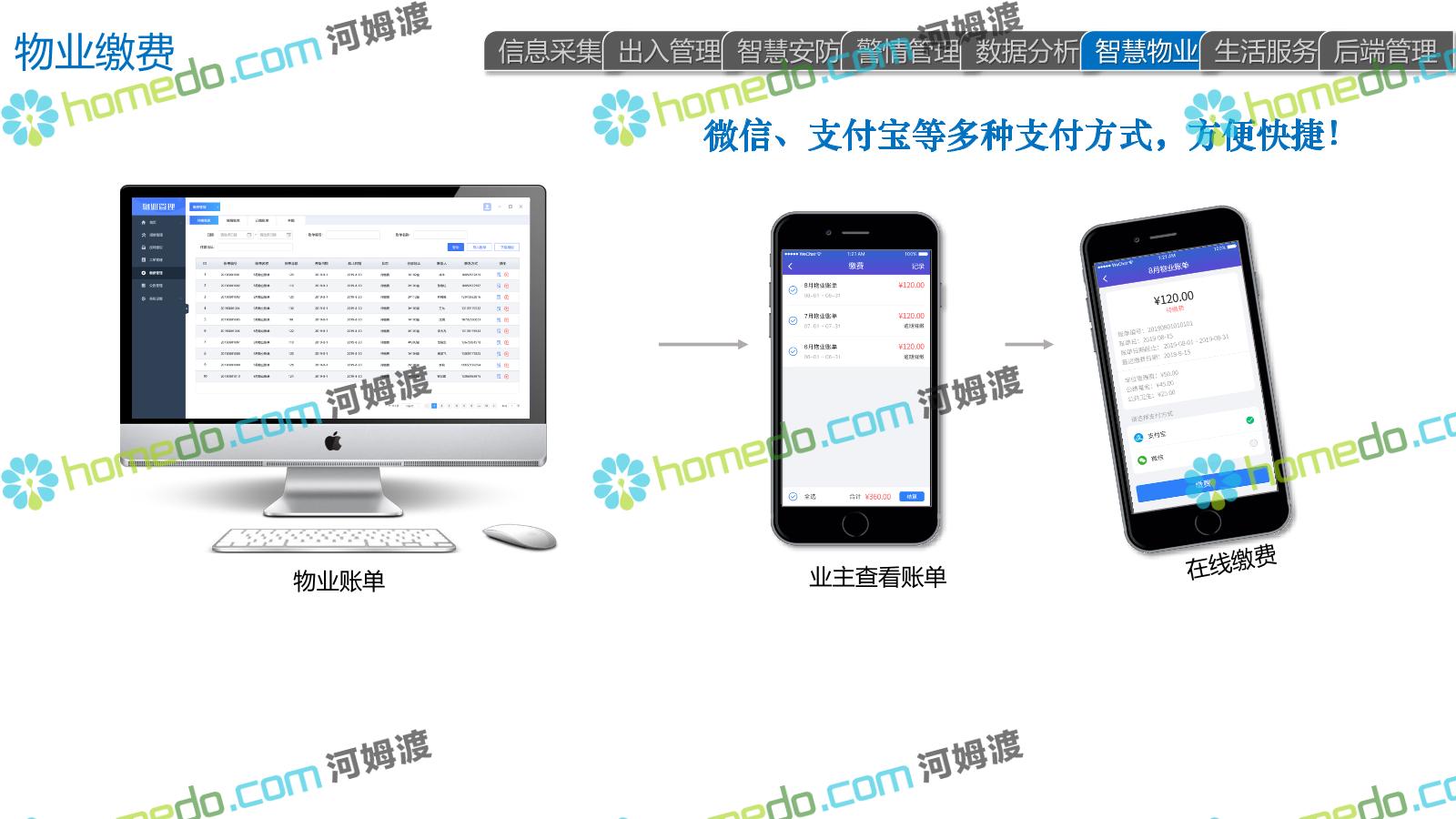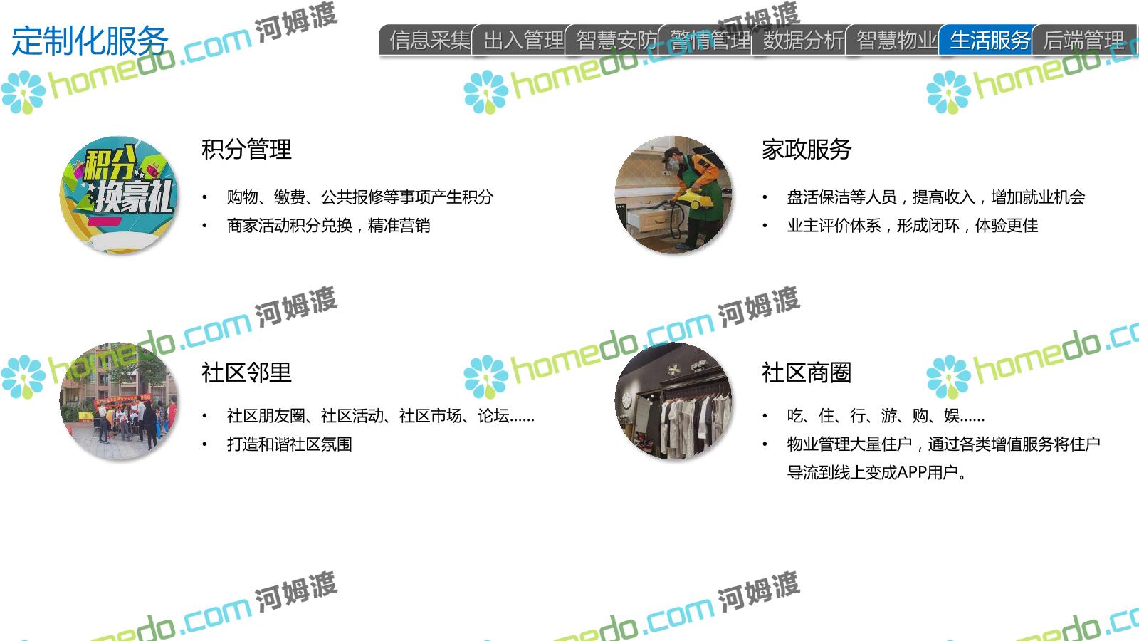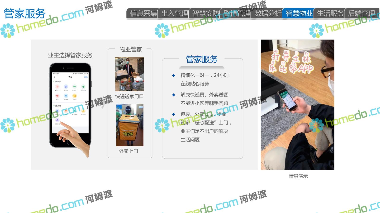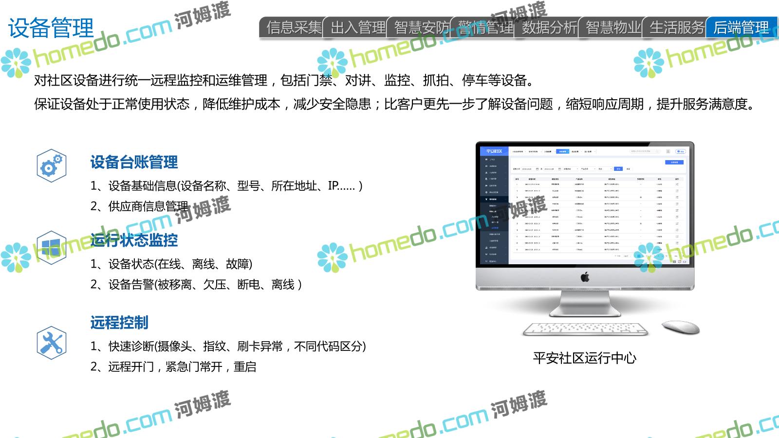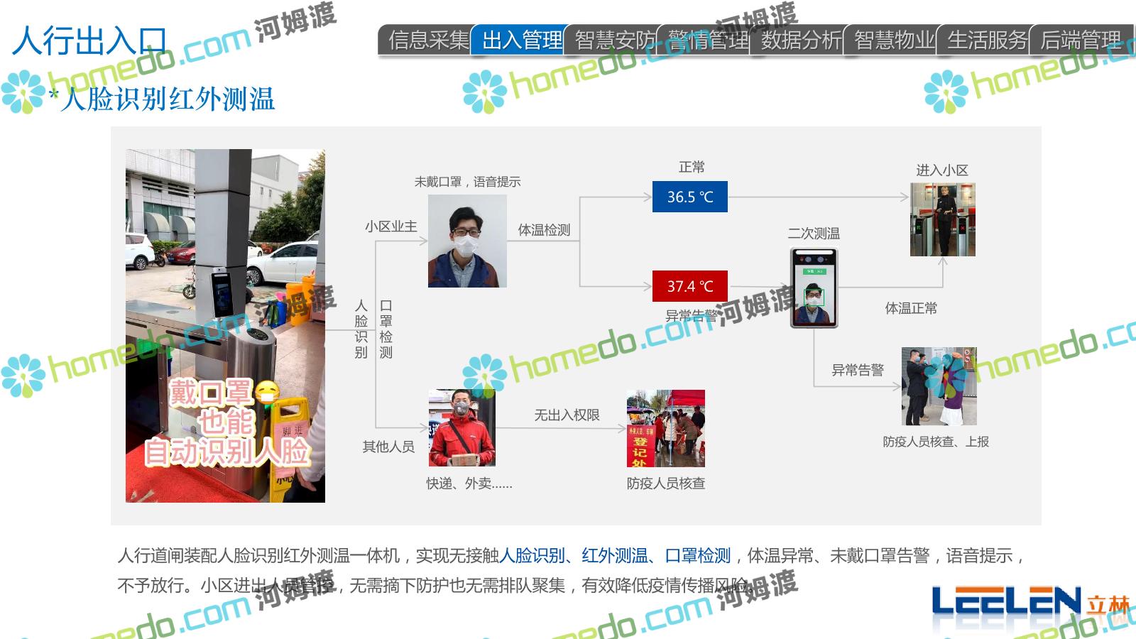 方案简介 方案采用“云-边-端”架构,从治安防控、社区管理、服务民生三个维度出发,以一标三实信息采集为基础,人房车管理和居民安全为导向,公共卫生与安全应急管理为常态 运用云计算、物联网、移动互联网、AI人工智能等技术 融合智能测温门禁、人车卡口、视频监控、物业管理等系统,实现人房车的精细化管理,流口与重点人员管控 街道办、社区民警与小区物业联动共治,全面提高社区技防水平 系统可对接政府平台,为政府决策提供大数据支撑