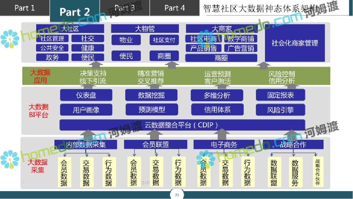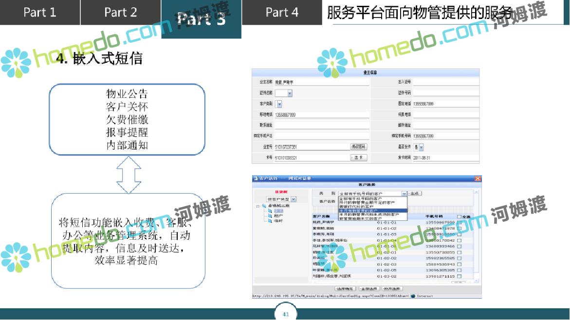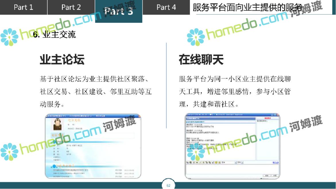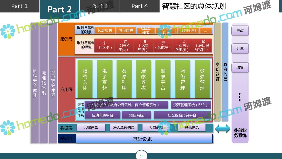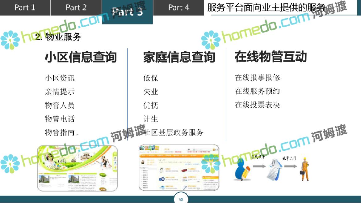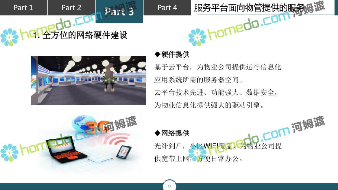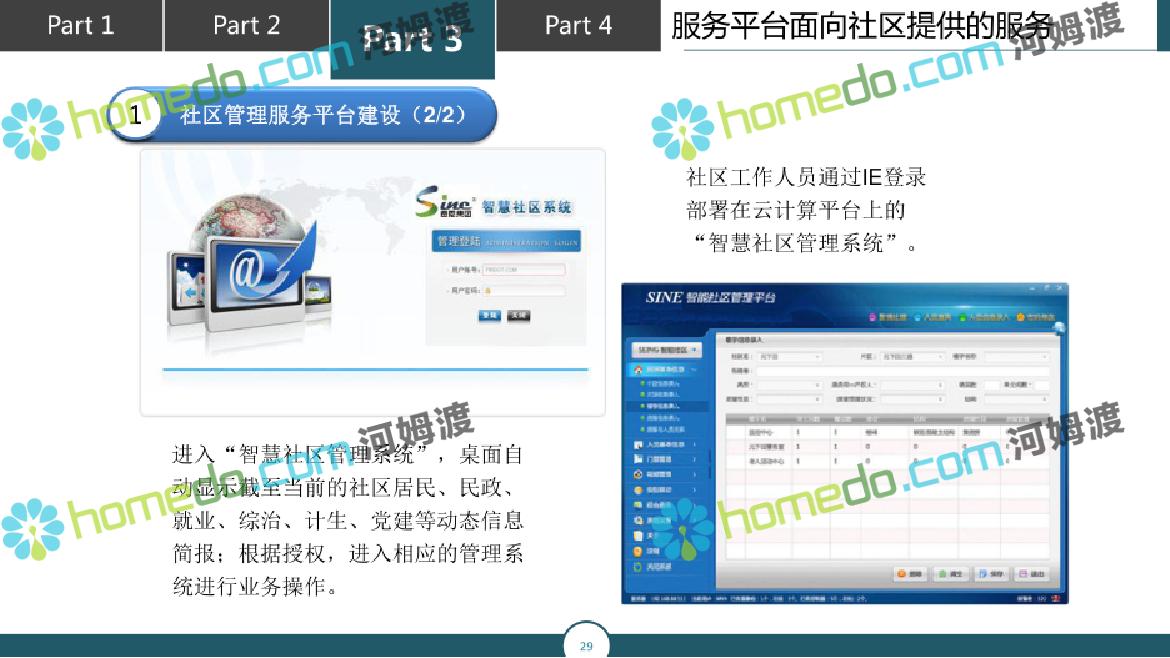 方案简介 利用物联网、云计算、移动互联网、移动终端、OTO等新一代信息技术,集 成了智能楼宇、智能家居、智慧物业、智能安防、数字生活等诸多领域的功 能,将物业服务、信息通知、物业缴费、周边商铺、社区活动、社区圈子等 诸多生活帮助信息及服务整合为同一平台,为社区居民提供一个安全、舒 适、便利、低碳的现代化社区生活环境。