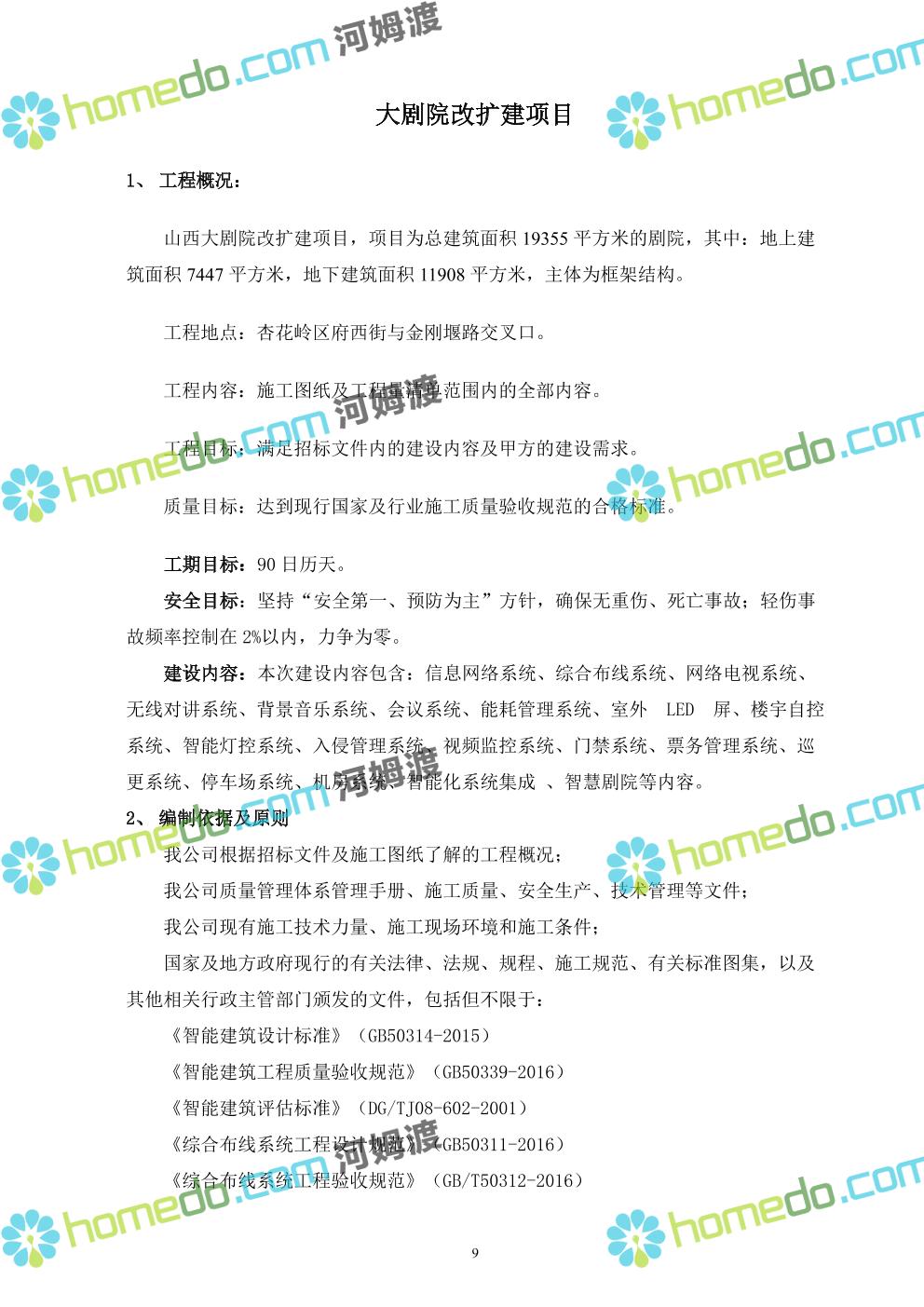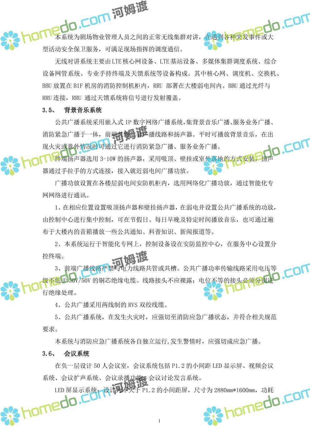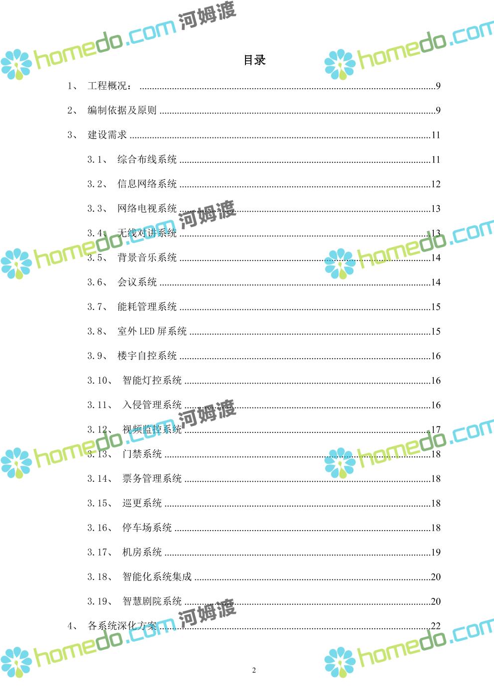 方案简介 监控系统、广播系统、程控电话、网路系统、无线对讲、无线覆盖、停车系统、门禁系统、出入口闸机,机房系统、巡更系统、票务系统、智能化系统集成、能耗系统、智能灯控系统等等19系统。带施工组织方案。