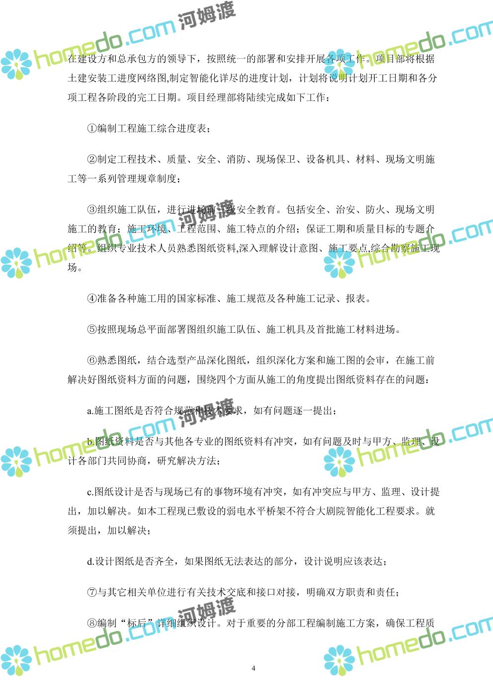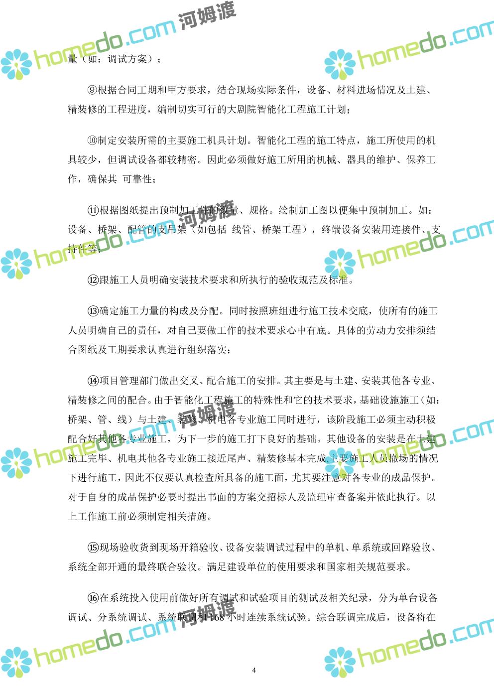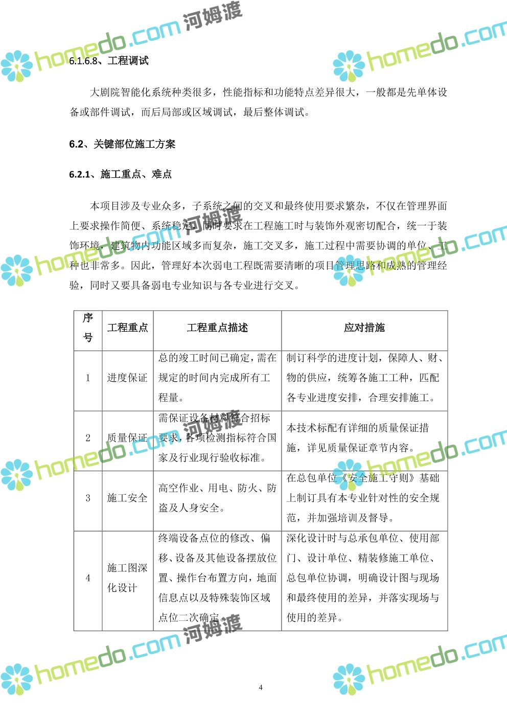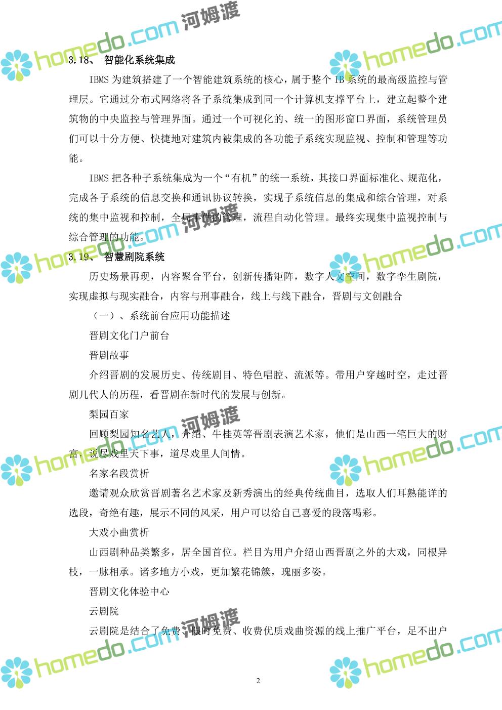 方案简介 监控系统、广播系统、程控电话、网路系统、无线对讲、无线覆盖、停车系统、门禁系统、出入口闸机,机房系统、巡更系统、票务系统、智能化系统集成、能耗系统、智能灯控系统等等19系统。带施工组织方案。
